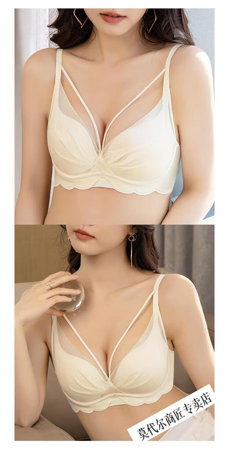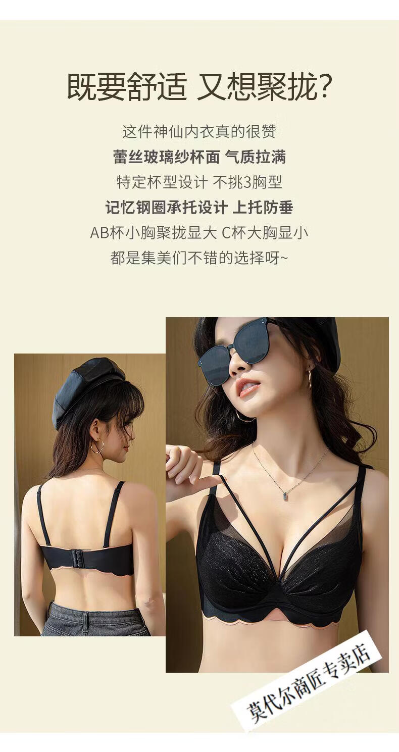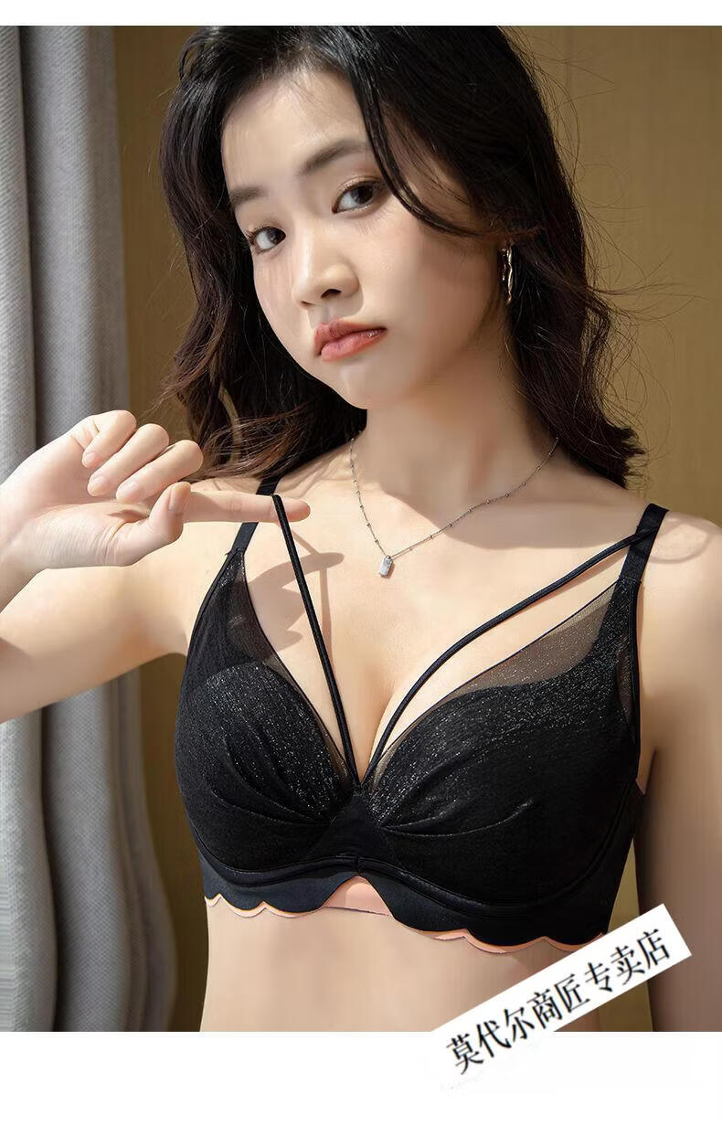 Modal Anti-Shoulder Bra Women's Small Breast Gathering Anti-sagging Top-Up Soft Wire Bra All-in-one Side-Collecting Women's Bra Temperament Black 80B 36B (Cup Thickness 1.5cm)
