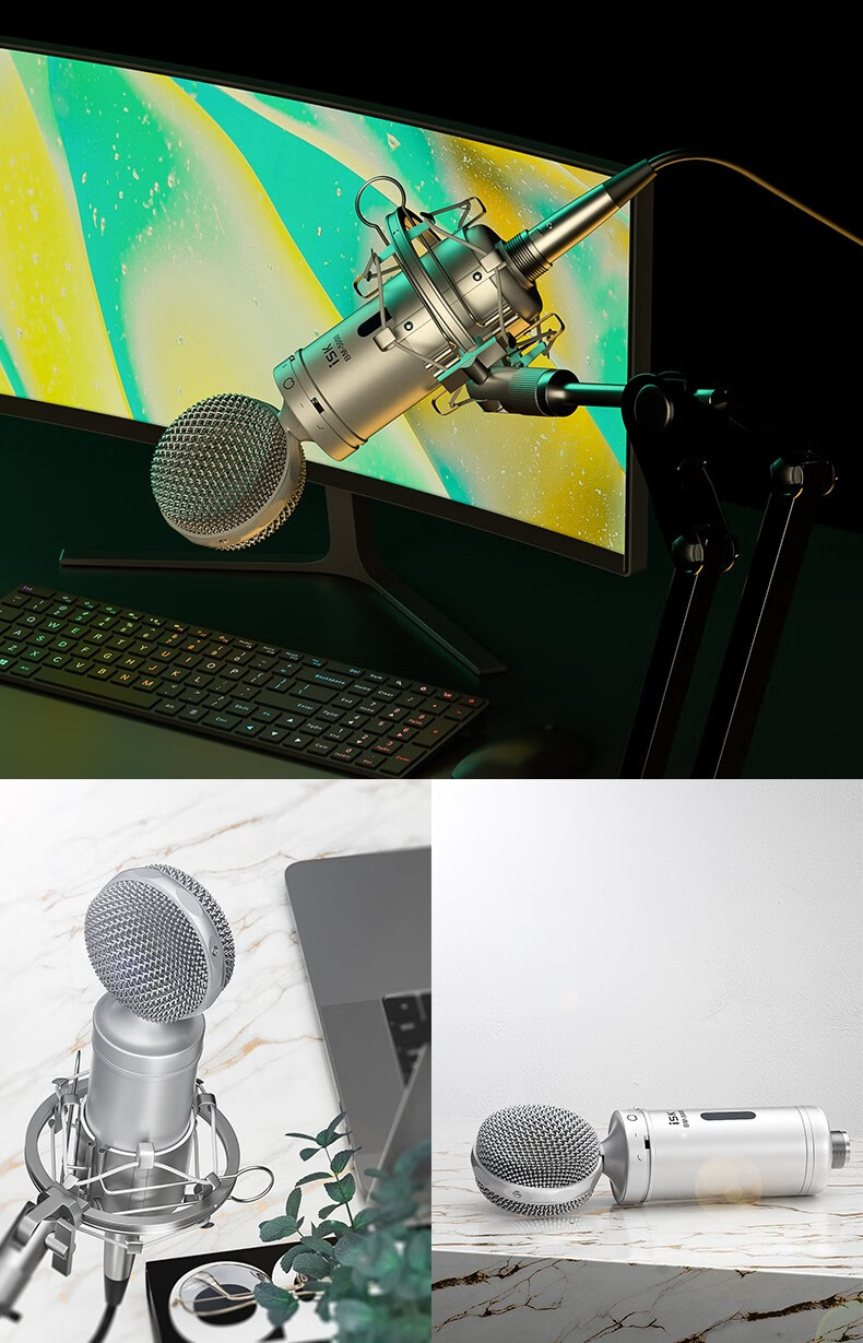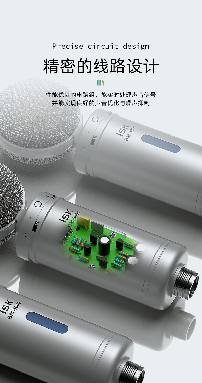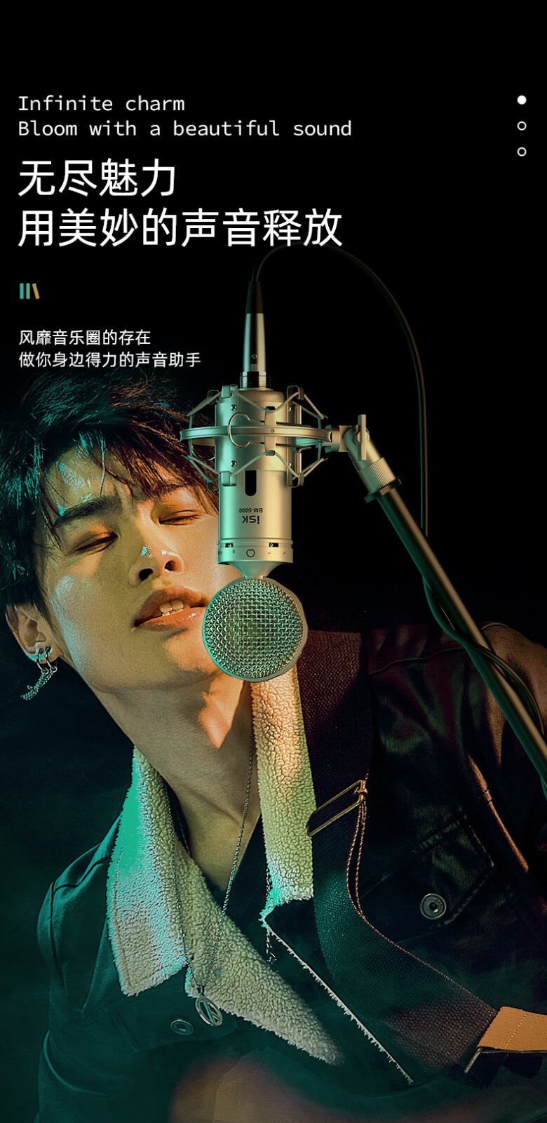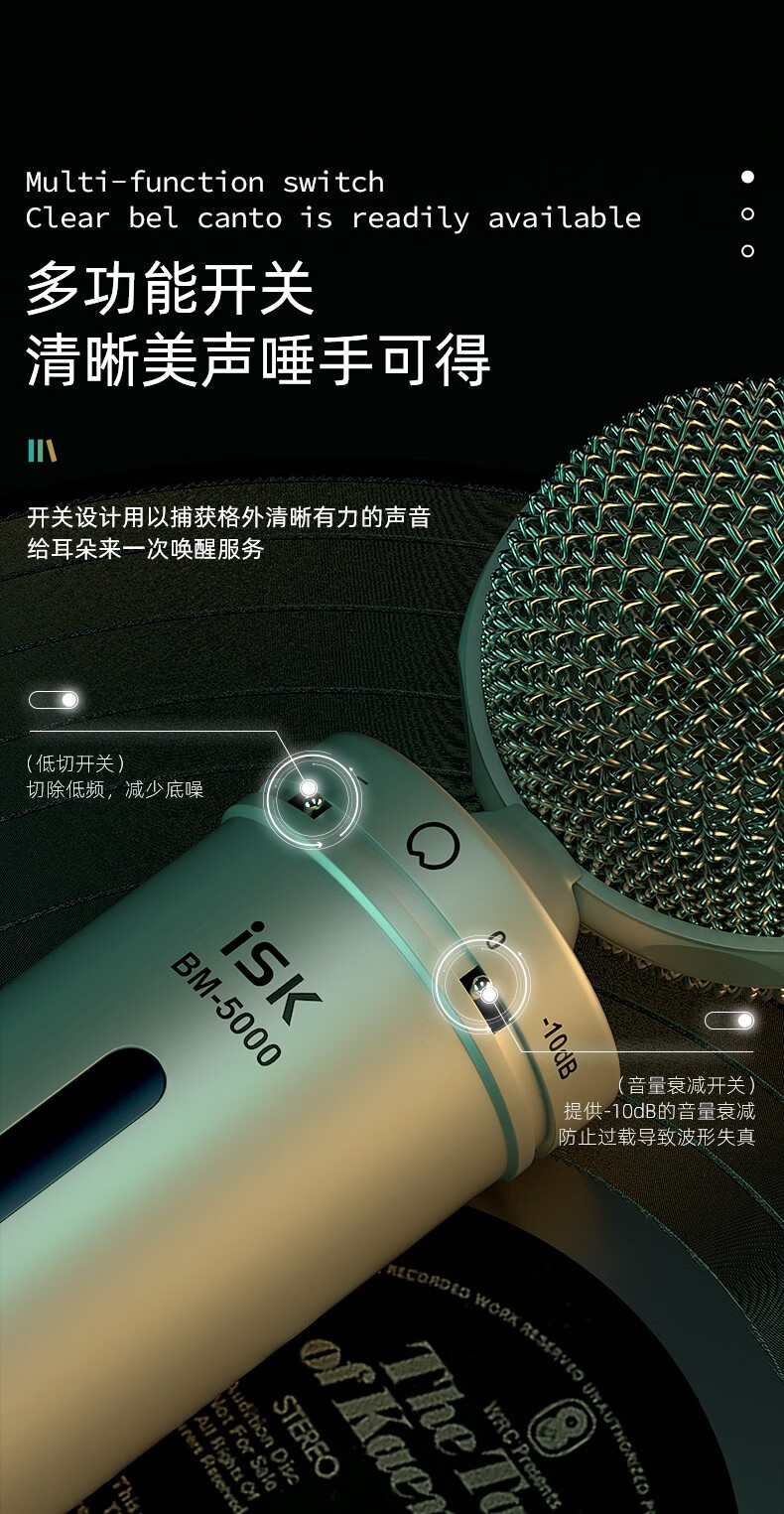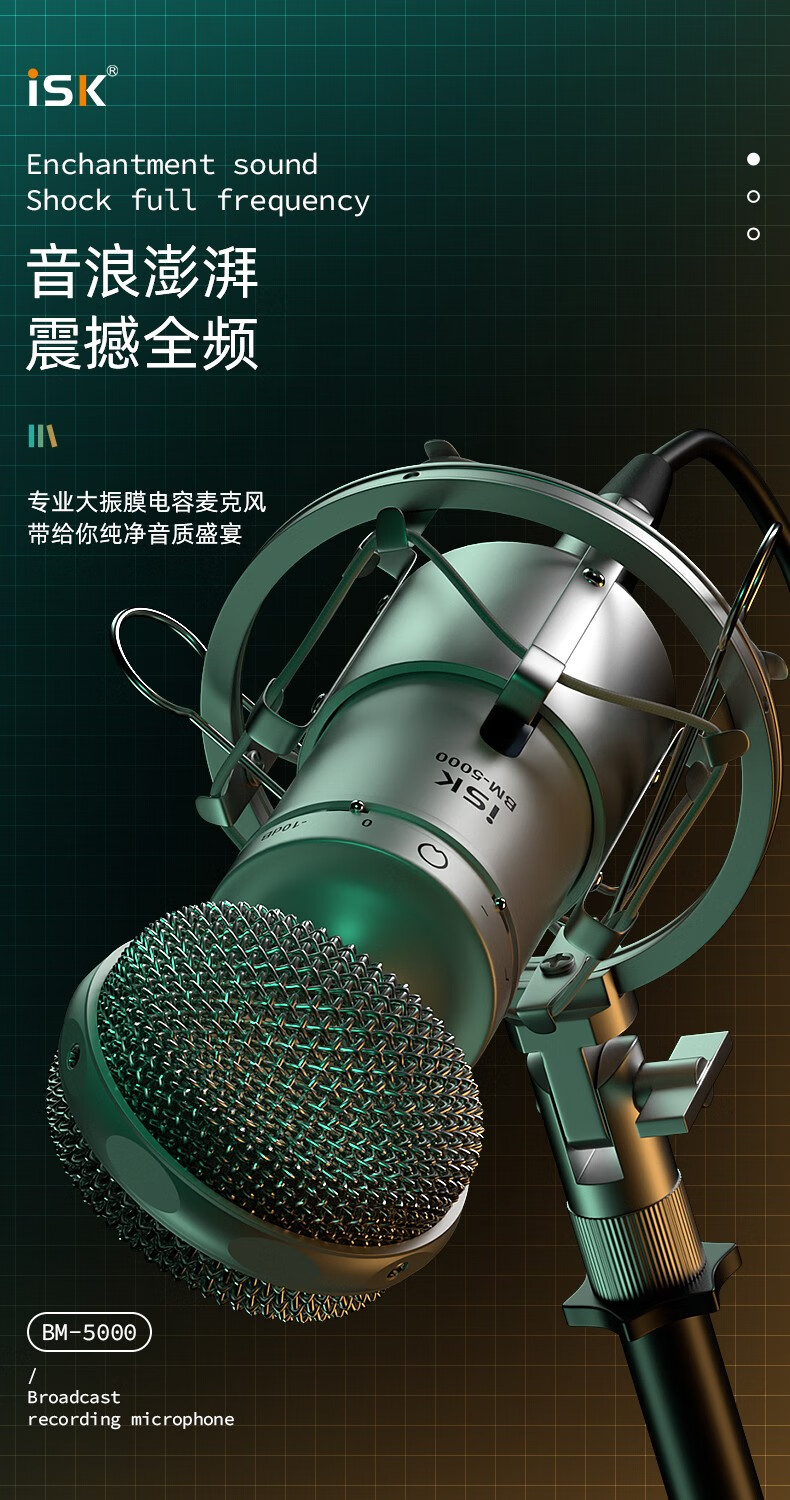 ISKBM5000 large diaphragm 48V condenser microphone microphone Douyin K song professional live broadcast equipment computer mobile phone recording and shouting sound card set optional bm5000 single product (set optional)