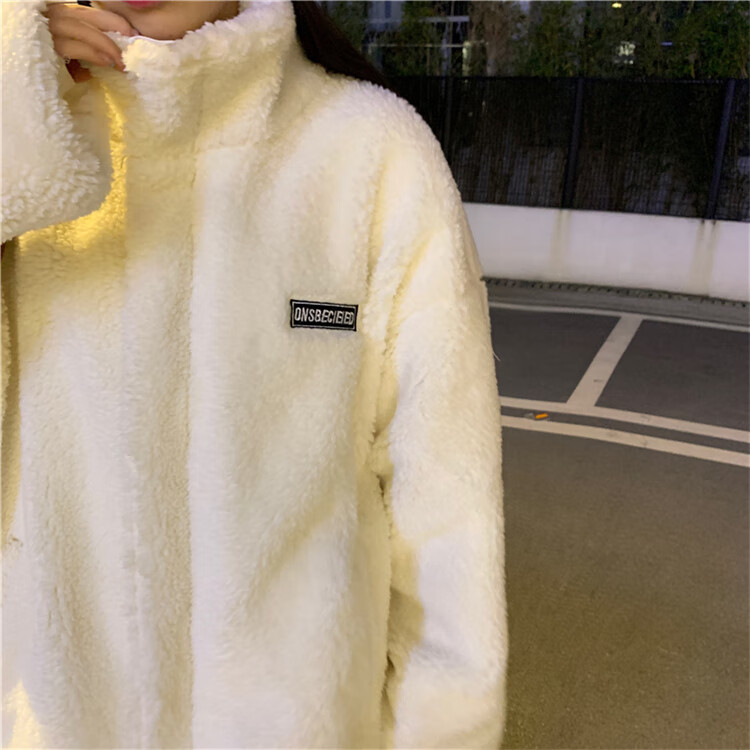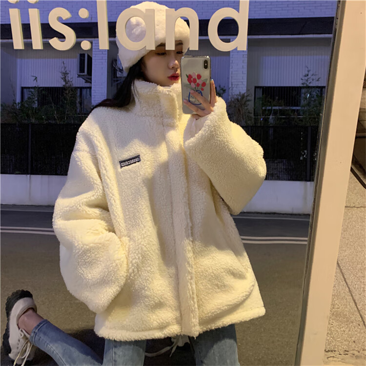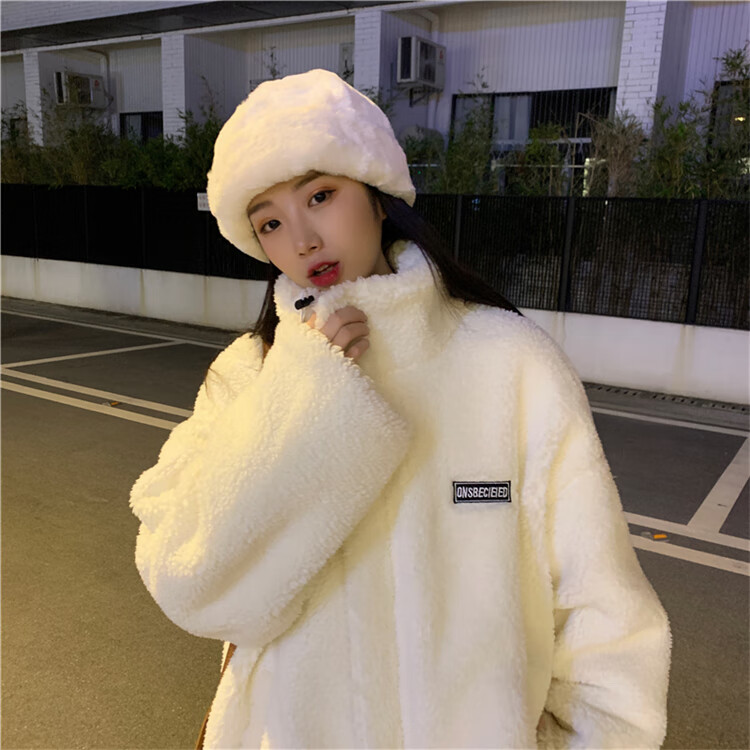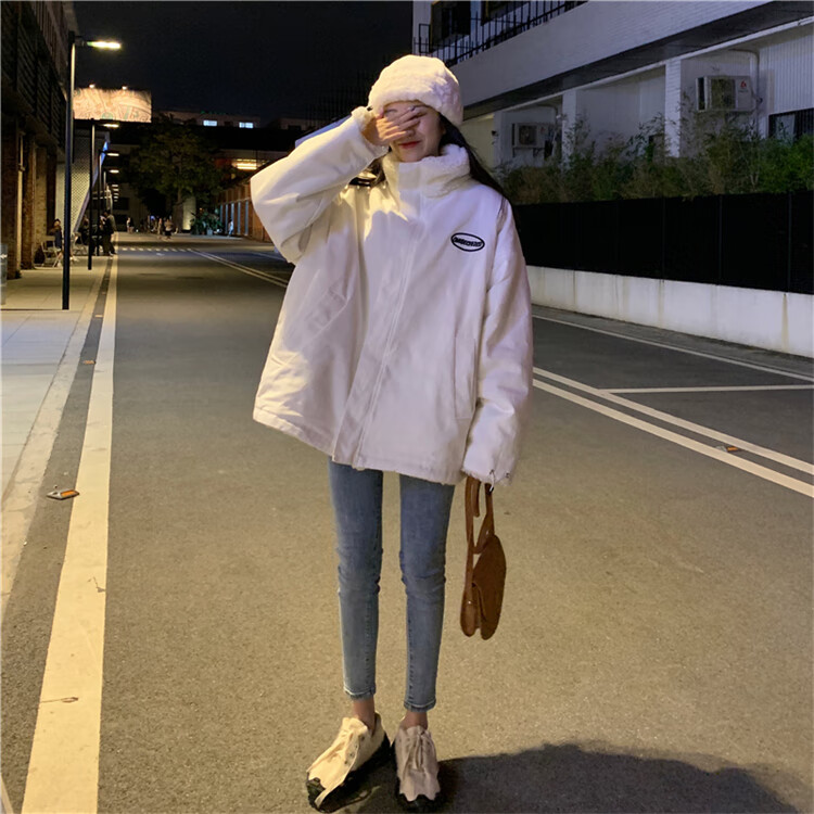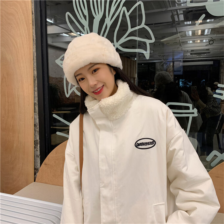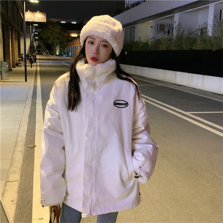 Ai Zhuer reversible lamb wool coat for women autumn and winter new Korean style loose thickened lamb wool cotton clothes for women white one size fits all (recommended 80-140 Jin Jin equals 0.5 kg)