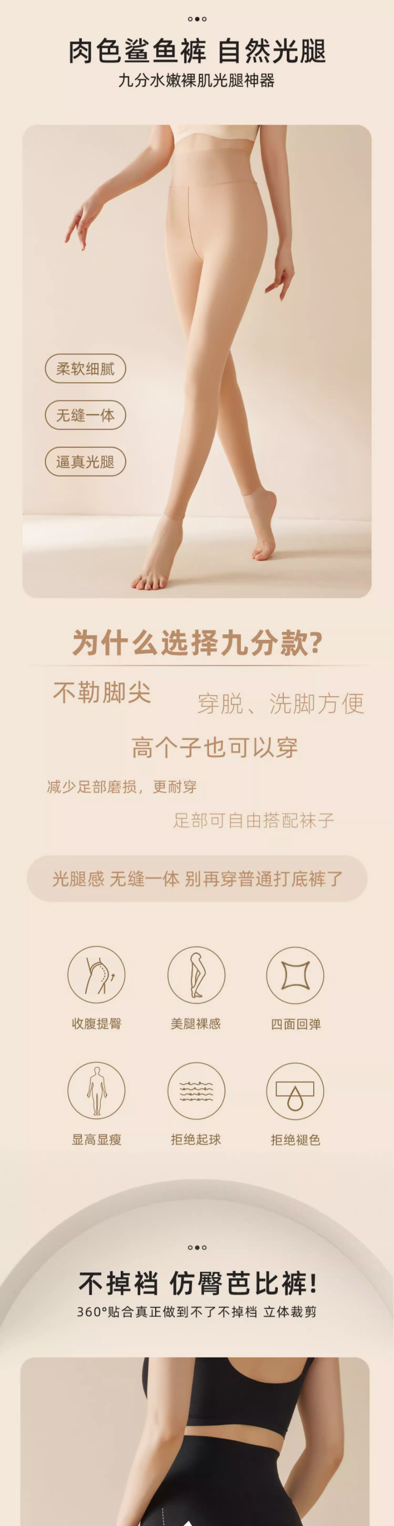 MOXTOC Bare Leg Artifact Flesh-colored Shark Pants Autumn and Winter Women's Nude Outer Wear Skin-Colored Pants Nine-Point Velvet Pressure Leggings Nine-Point Style 300g Skin Color Autumn and Winter Velvet One-size-fits-all M Suitable for Height (155-175cm)