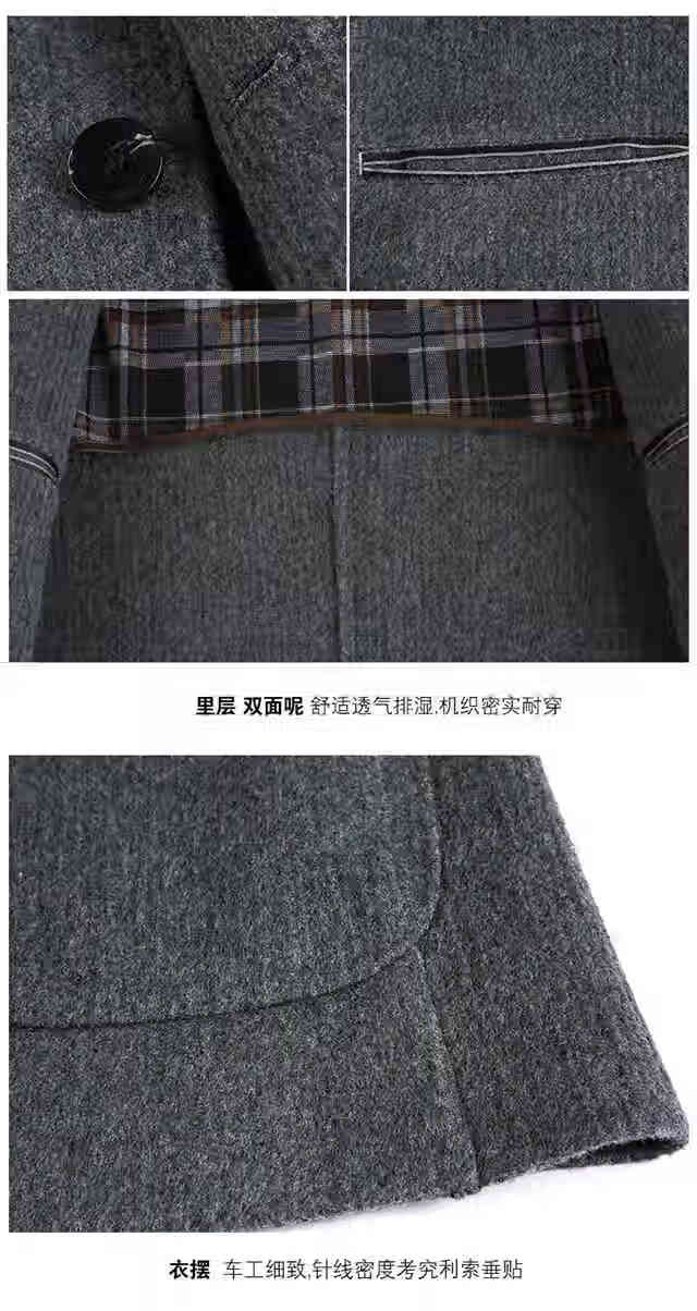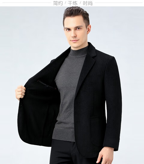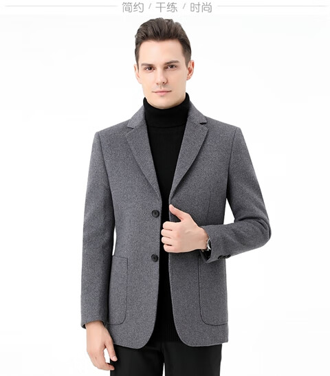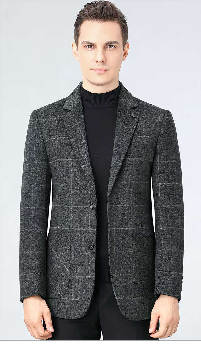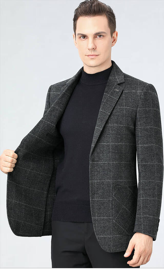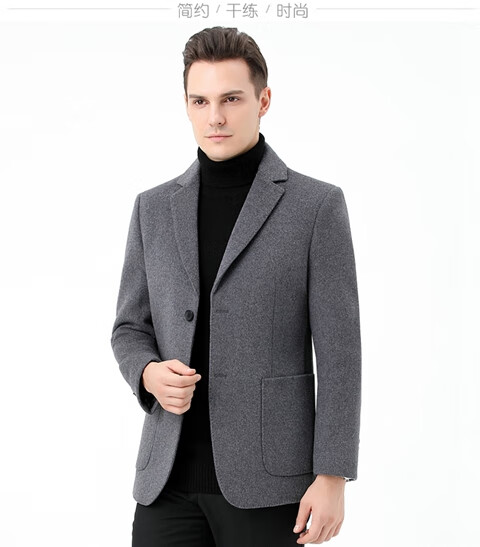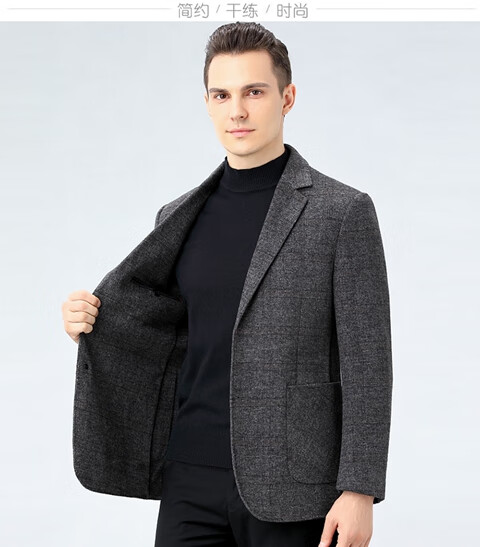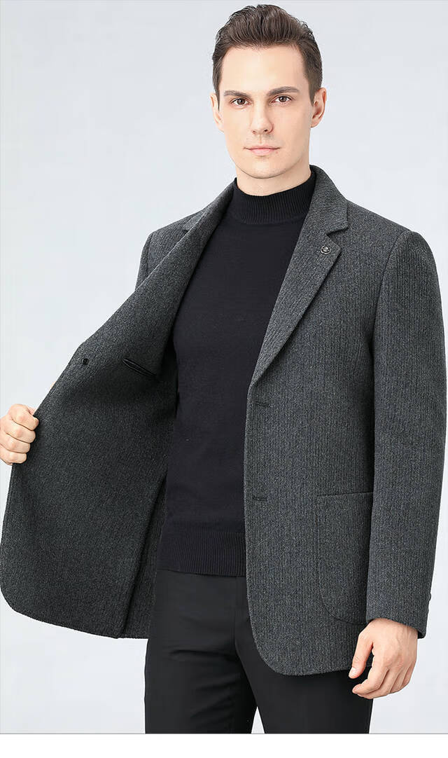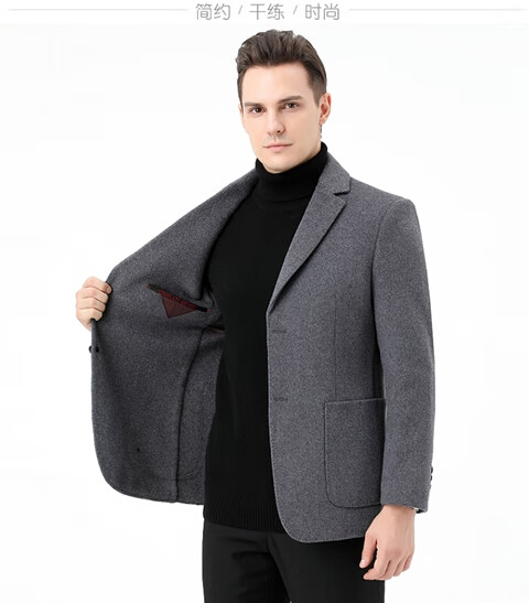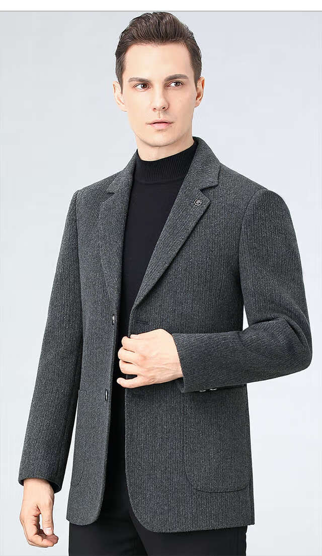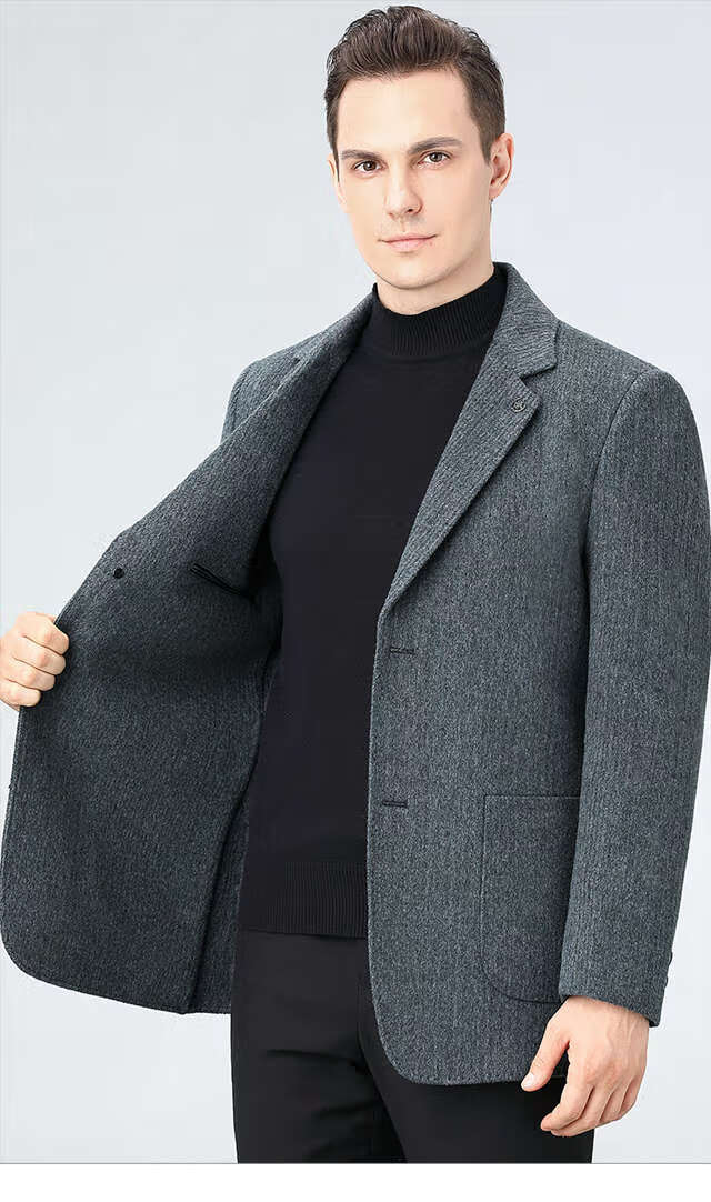 ROMON double-sided sheep and wool thickened men's suit autumn and winter men's sheep and woolen suit jacket simple suit dark gray thick XL 175 suitable for weight 140-156