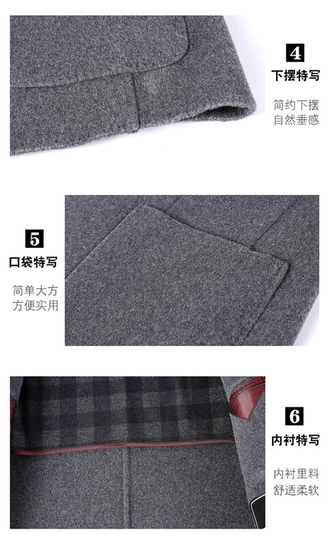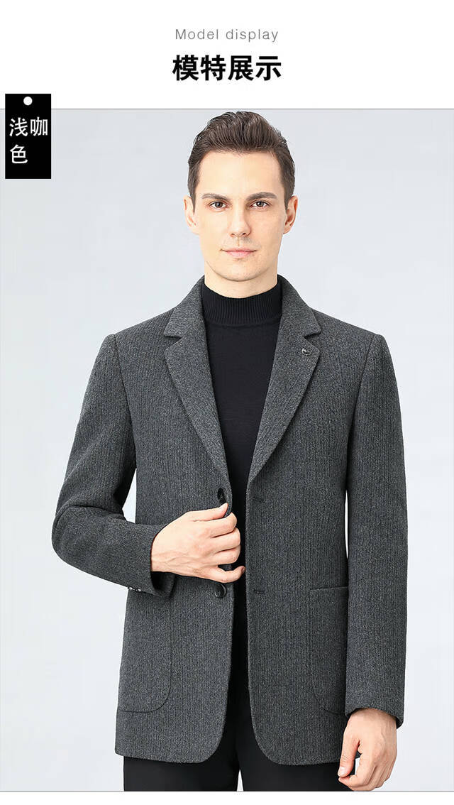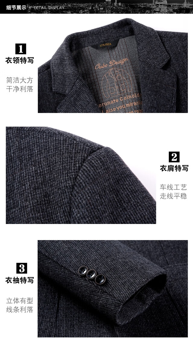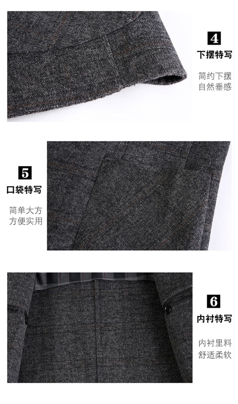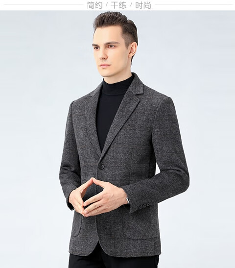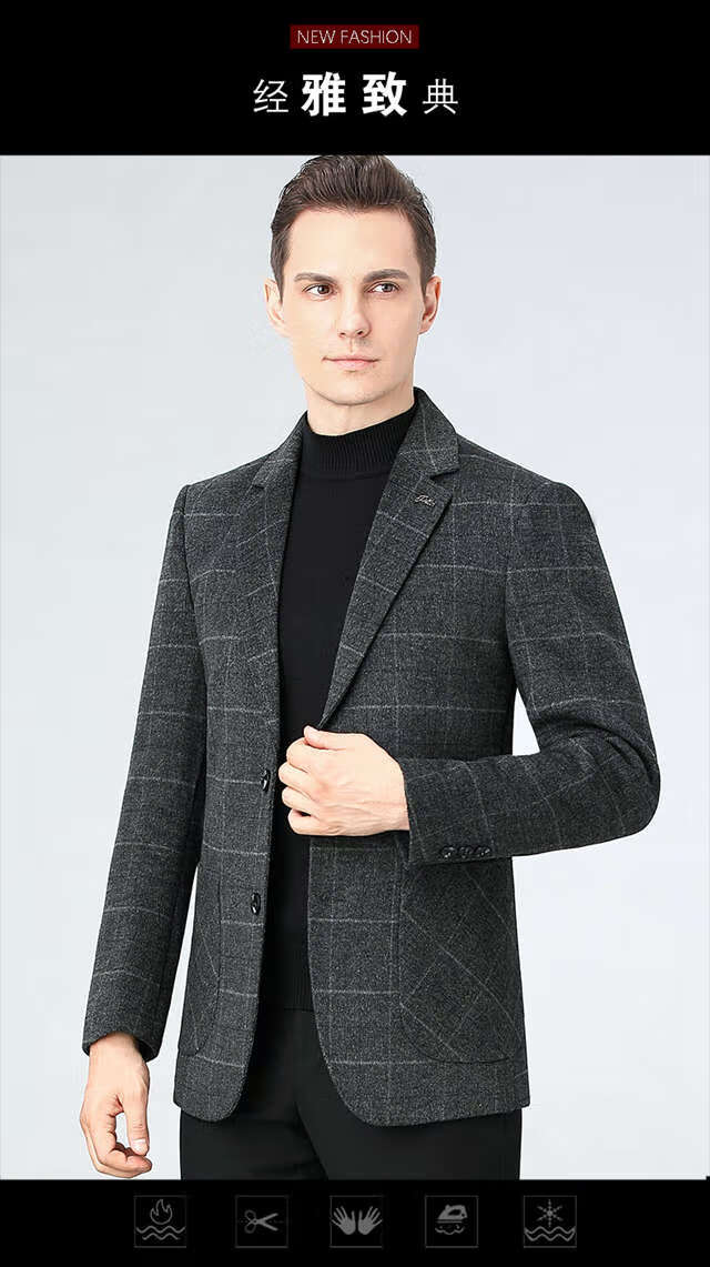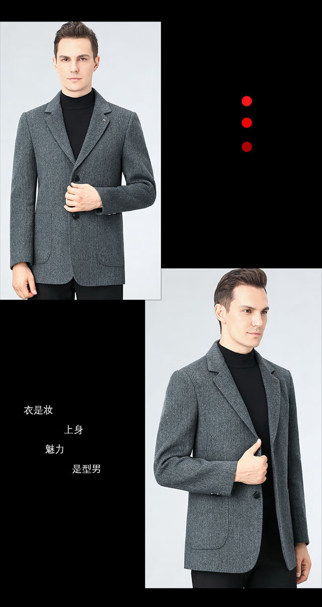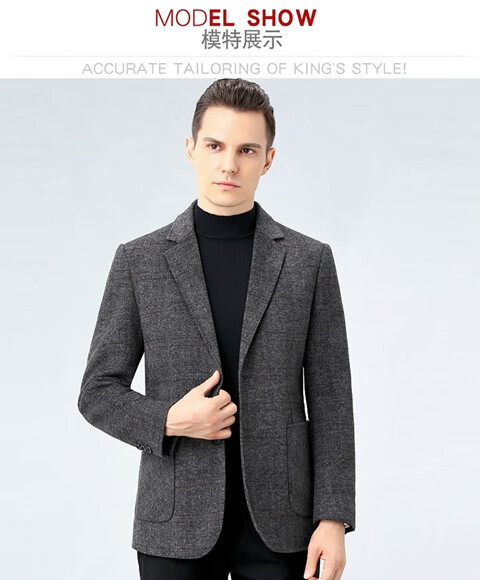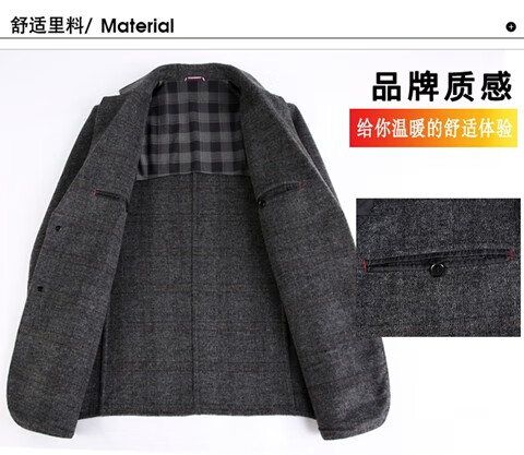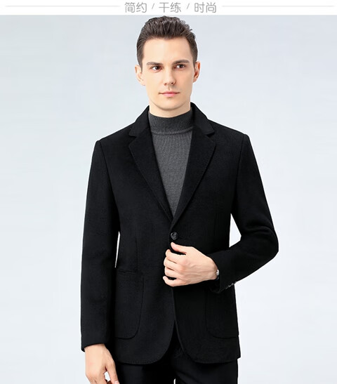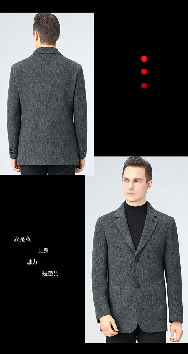 ROMON double-sided sheep and wool thickened men's suit autumn and winter men's sheep and woolen suit jacket simple suit dark gray thick XL 175 suitable for weight 140-156