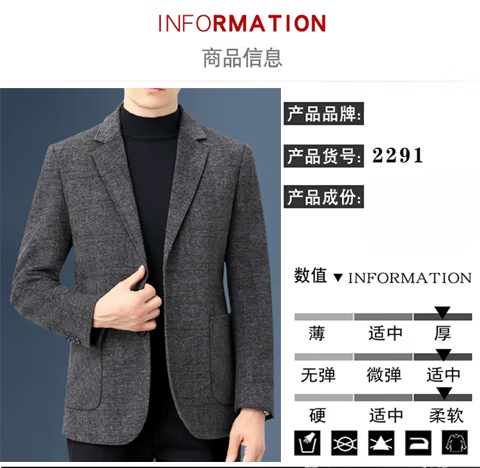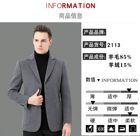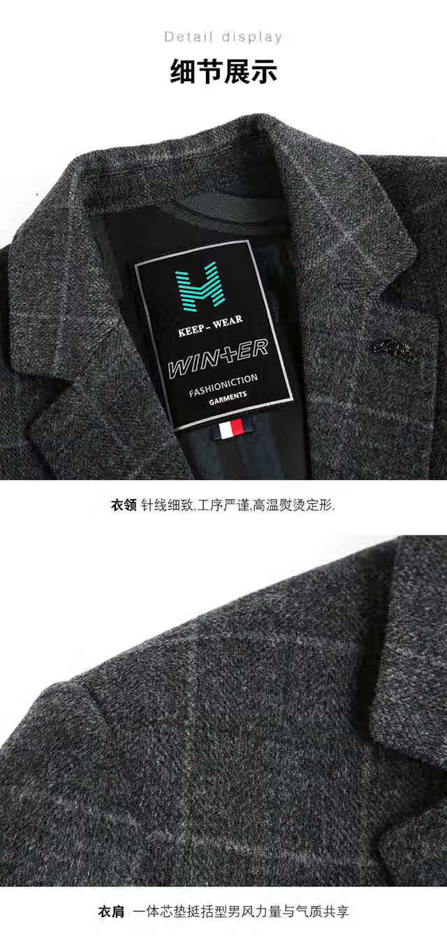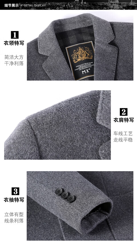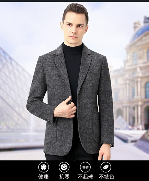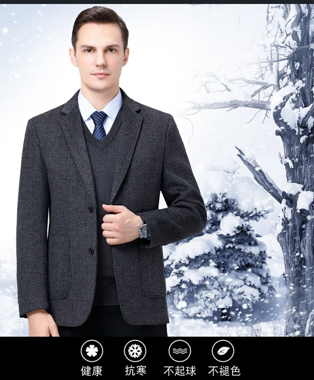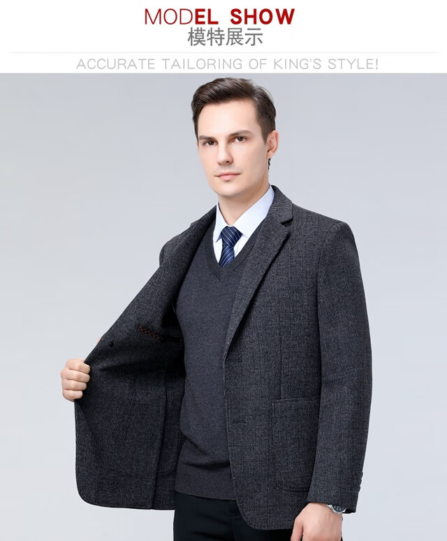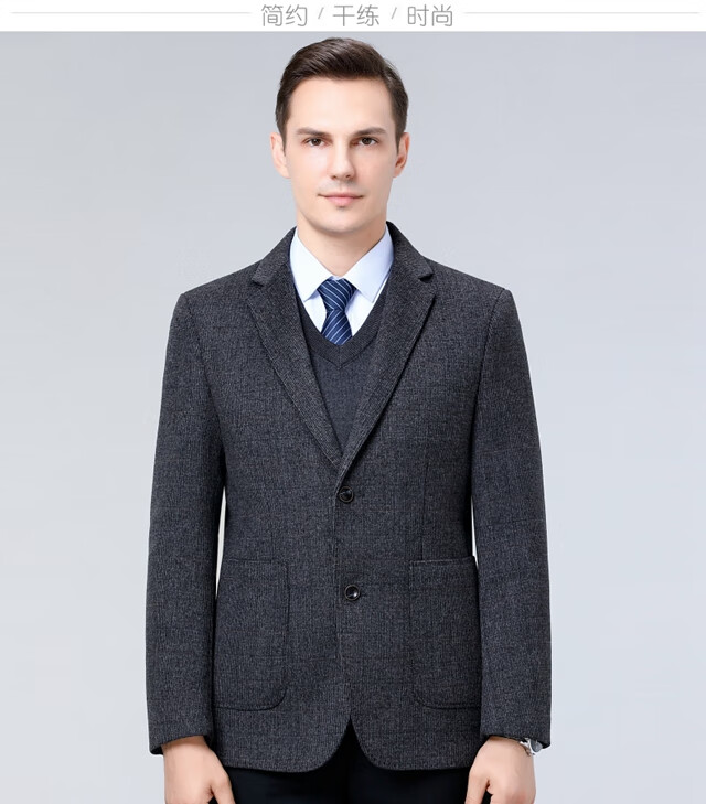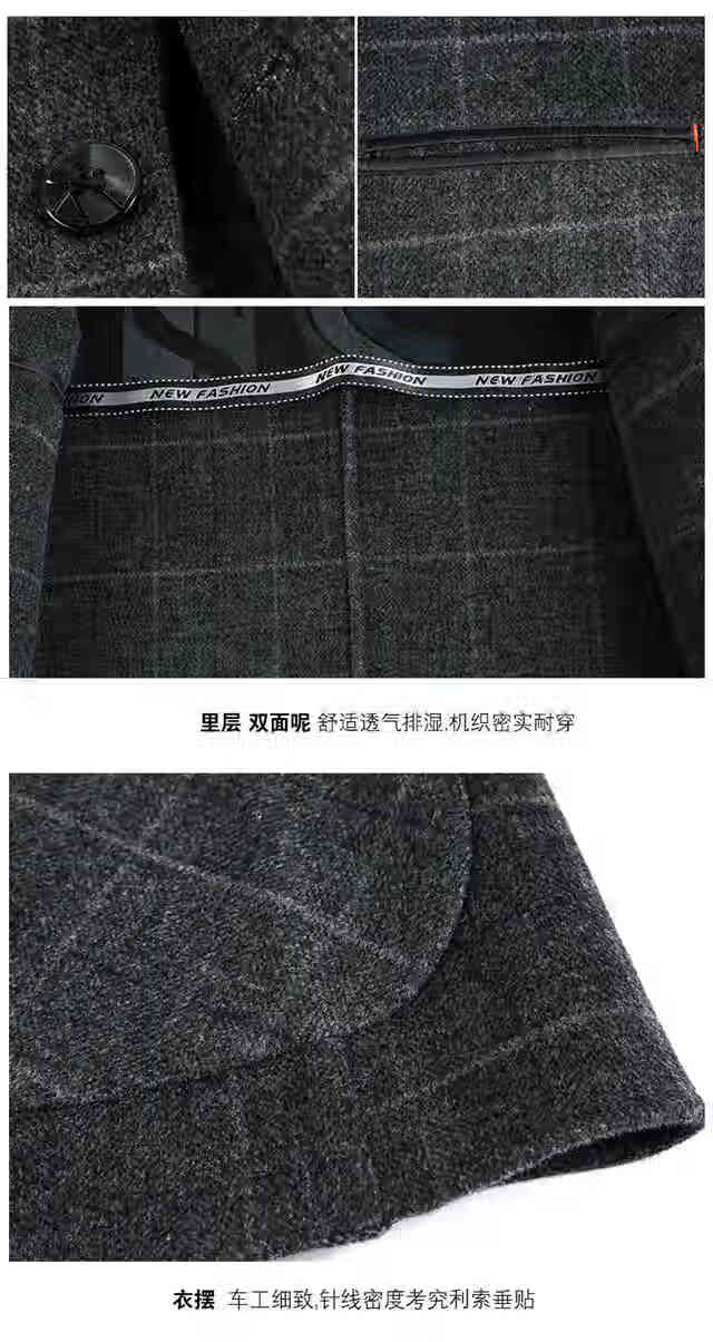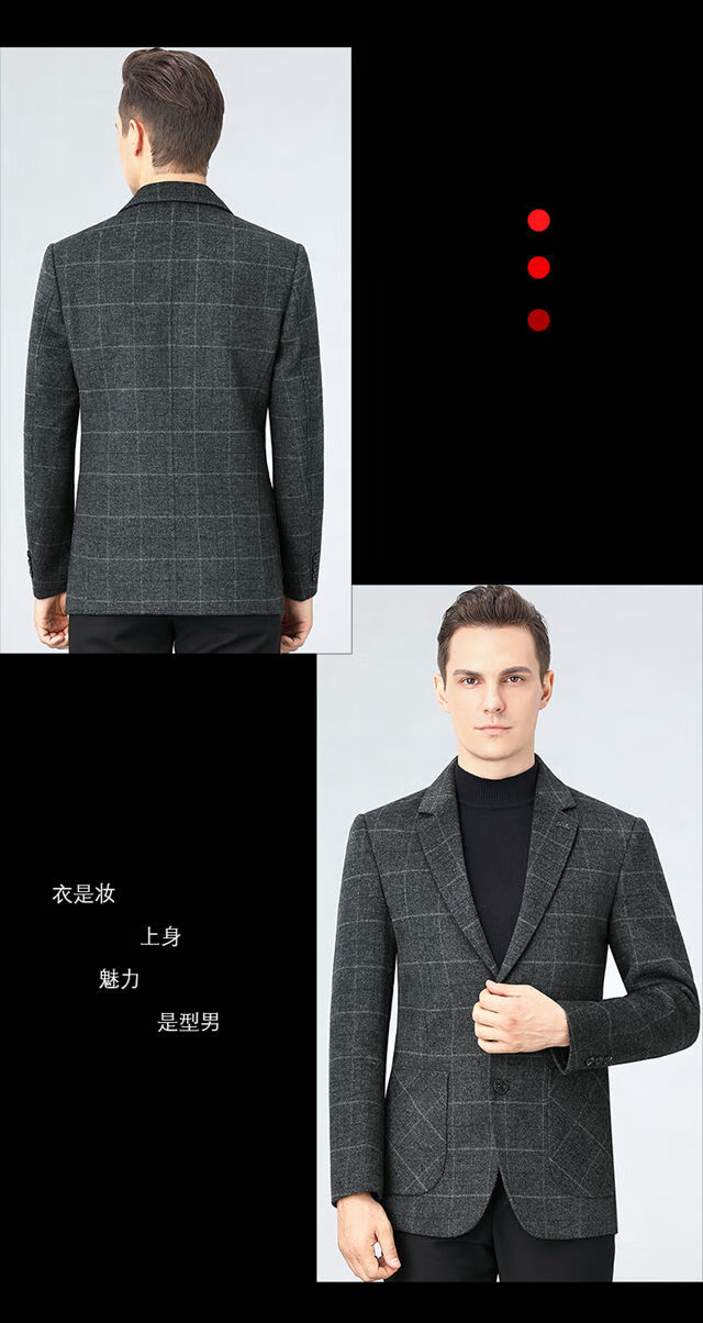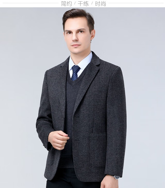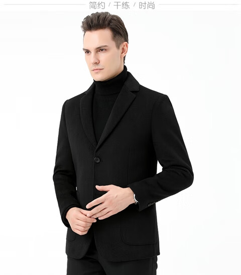 ROMON double-sided sheep and wool thickened men's suit autumn and winter men's sheep and woolen suit jacket simple suit dark gray thick XL 175 suitable for weight 140-156