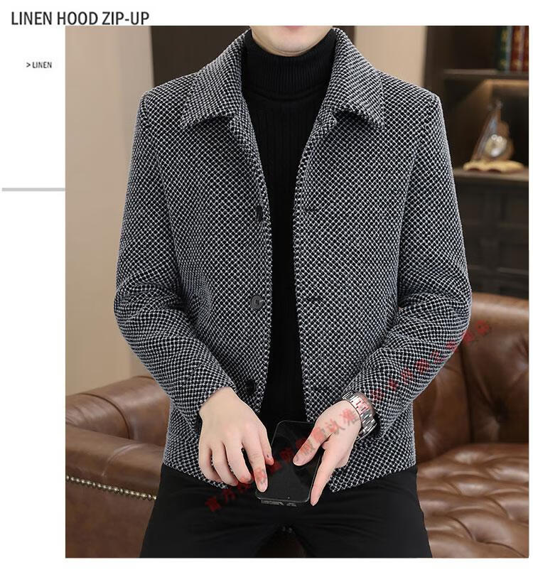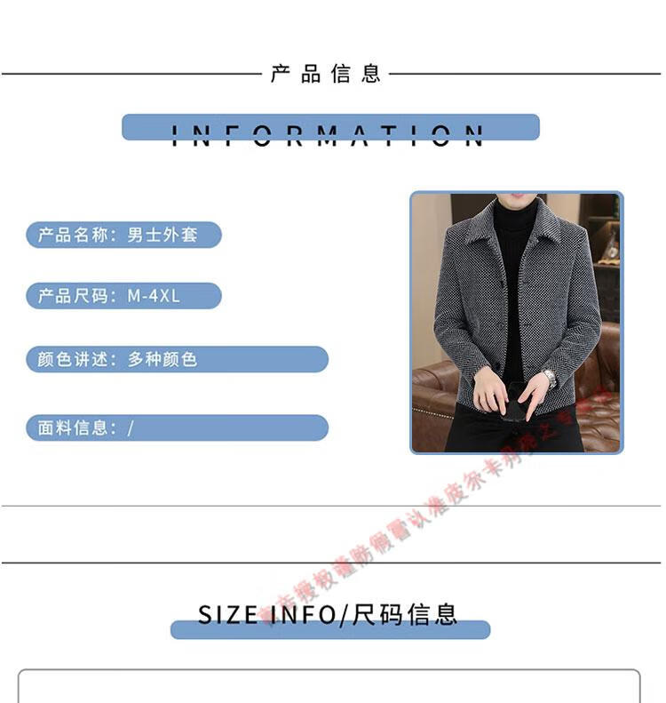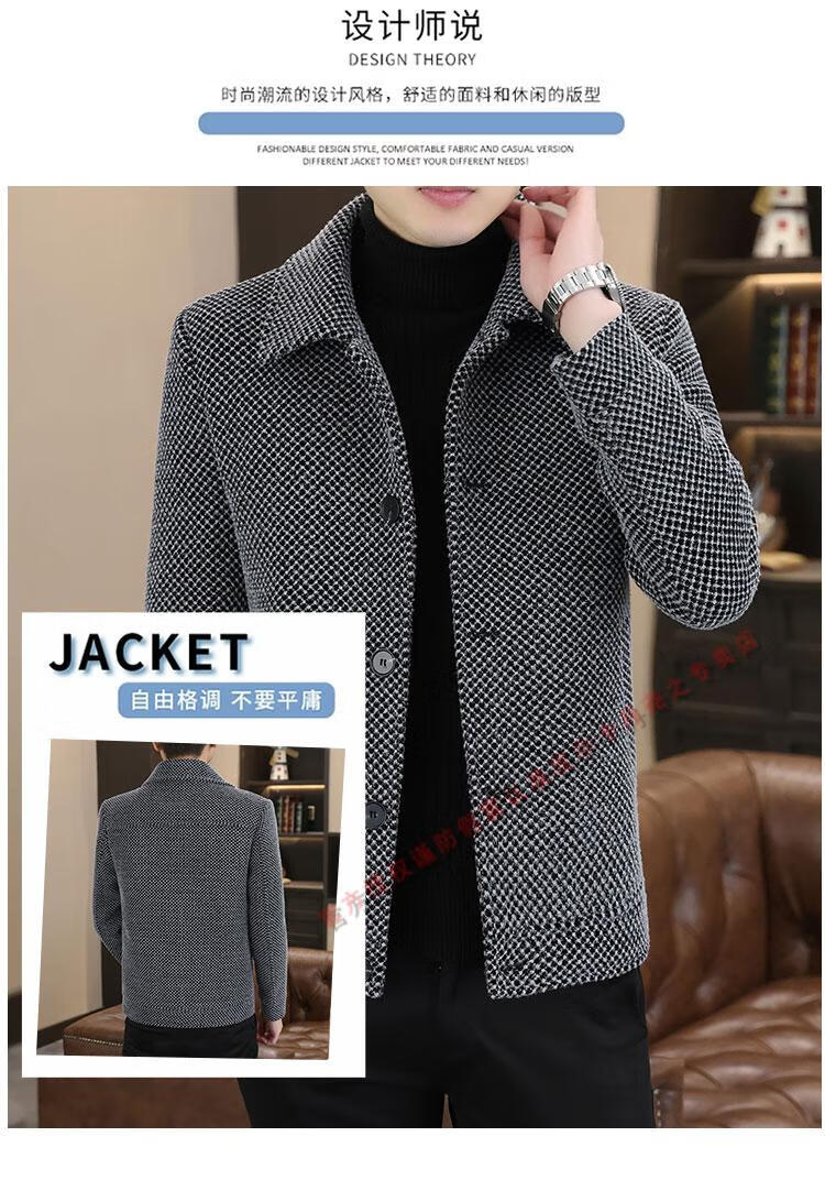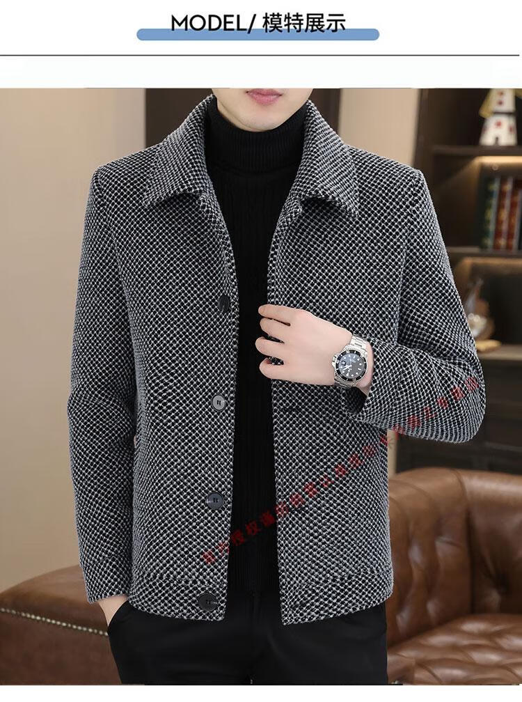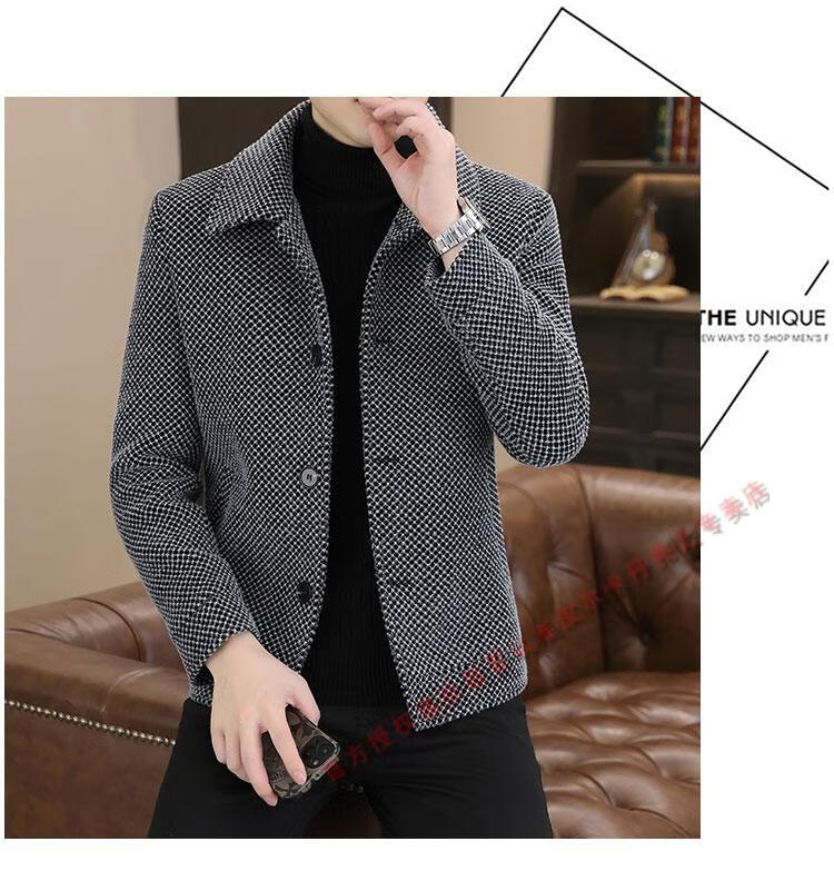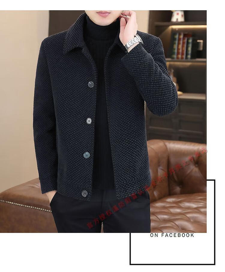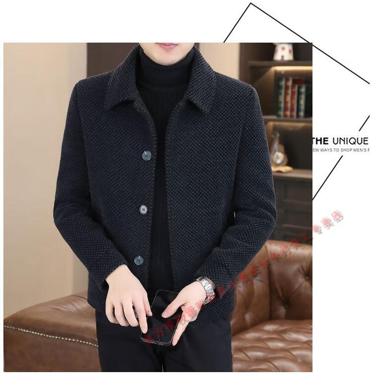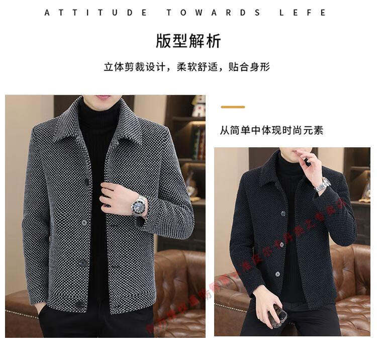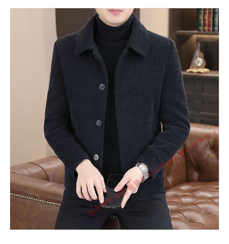 Pierre Cardin winter casual jacket men's velvet lapel woolen coat short trendy men's mink velvet woolen jacket winter dark gray velvet XL recommended 135Jin Jin equal to less than 0.5kg