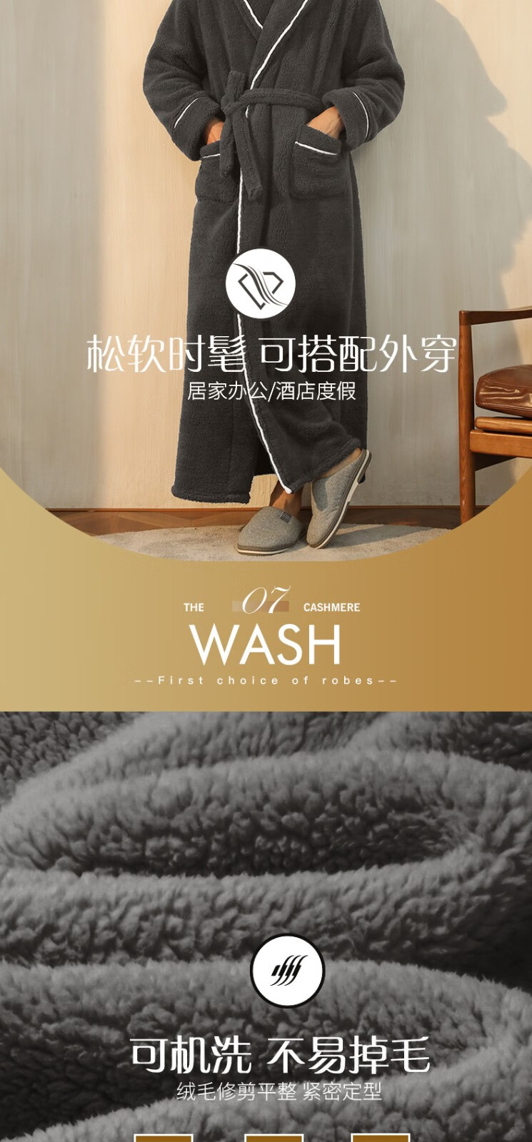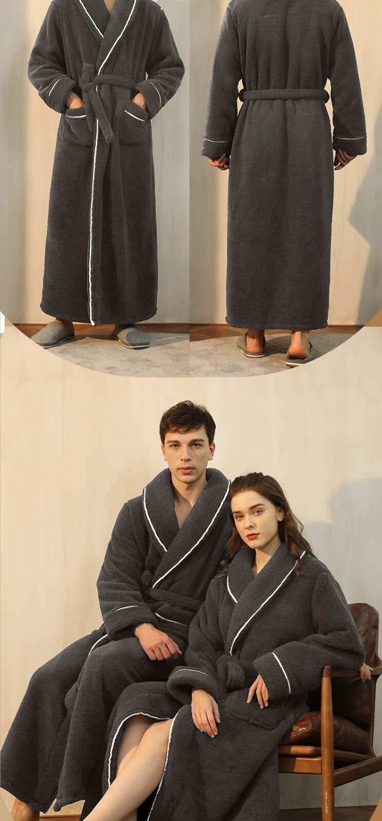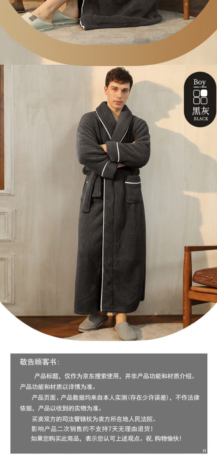 Bo Naling Nightgown Men's Bathrobe Men's Winter Plus Velvet Thickened Long Pajamas Coral Velvet Style Bathrobe Plus Size Large Size Light Luxury Warmth Men's Bathrobe Black Gray XL