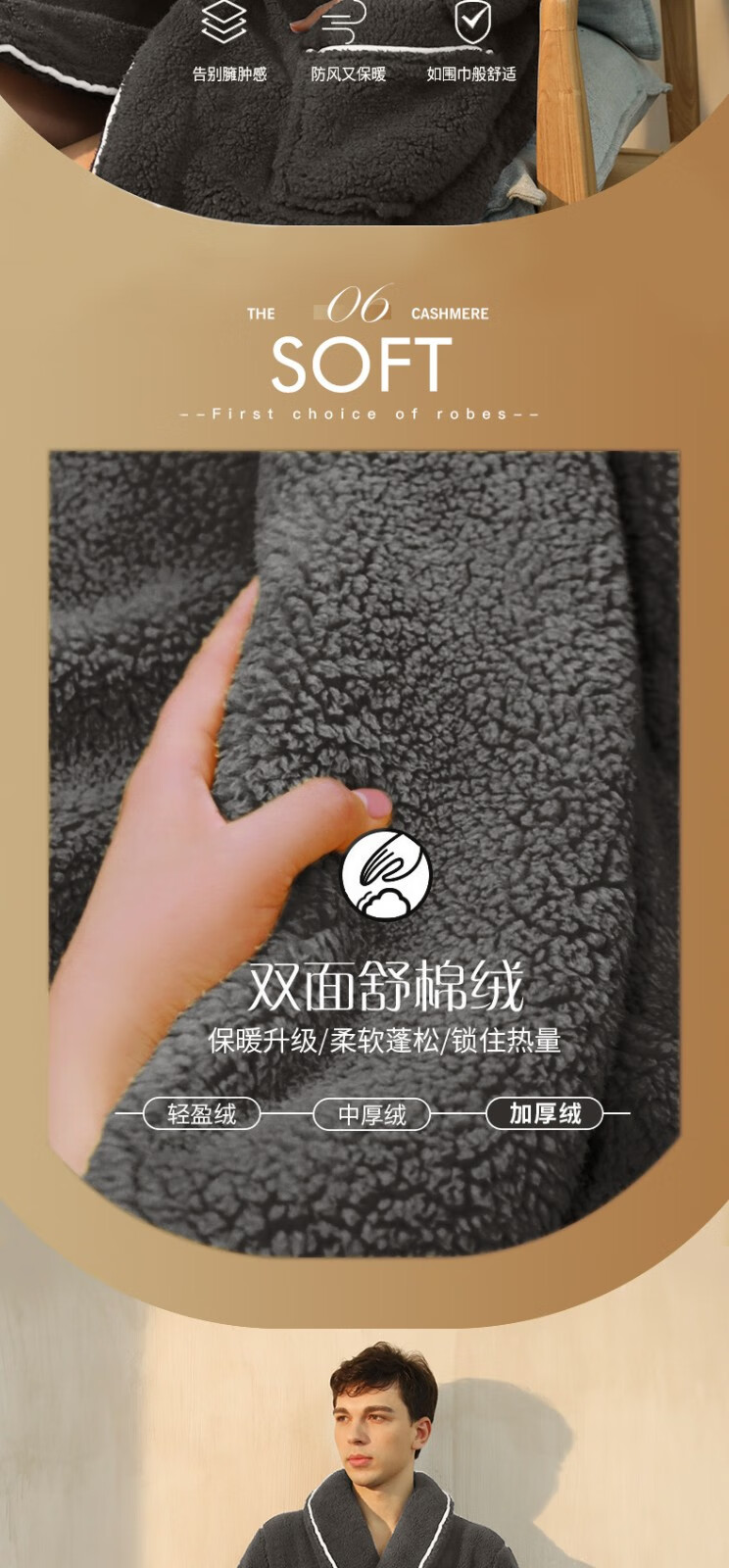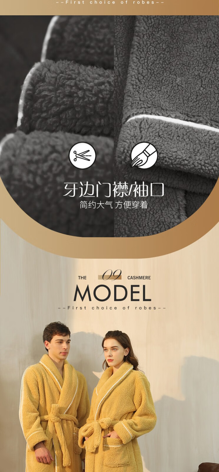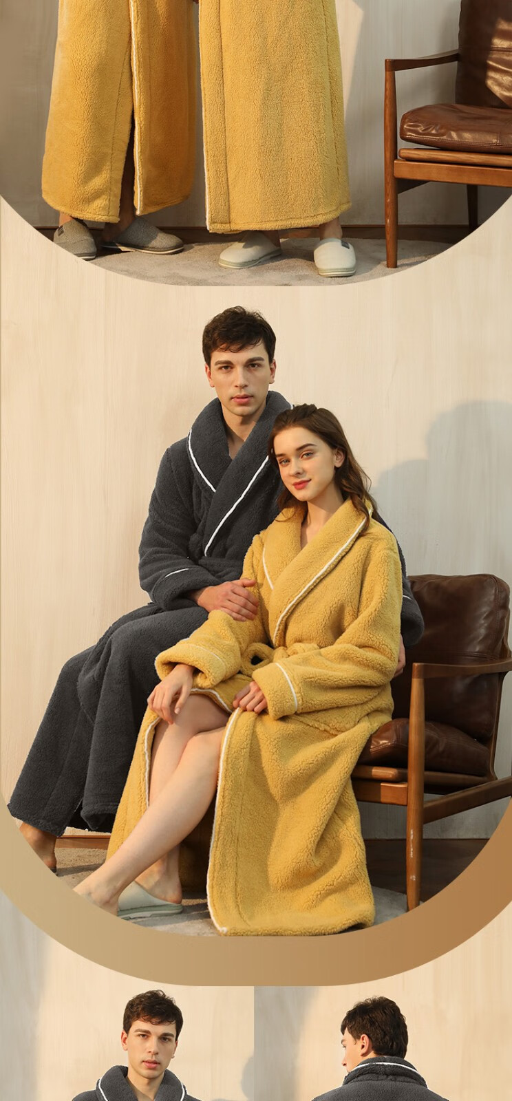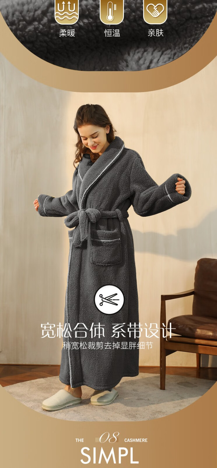 Bo Naling Nightgown Men's Bathrobe Men's Winter Plus Velvet Thickened Long Pajamas Coral Velvet Style Bathrobe Plus Size Large Size Light Luxury Warmth Men's Bathrobe Black Gray XL