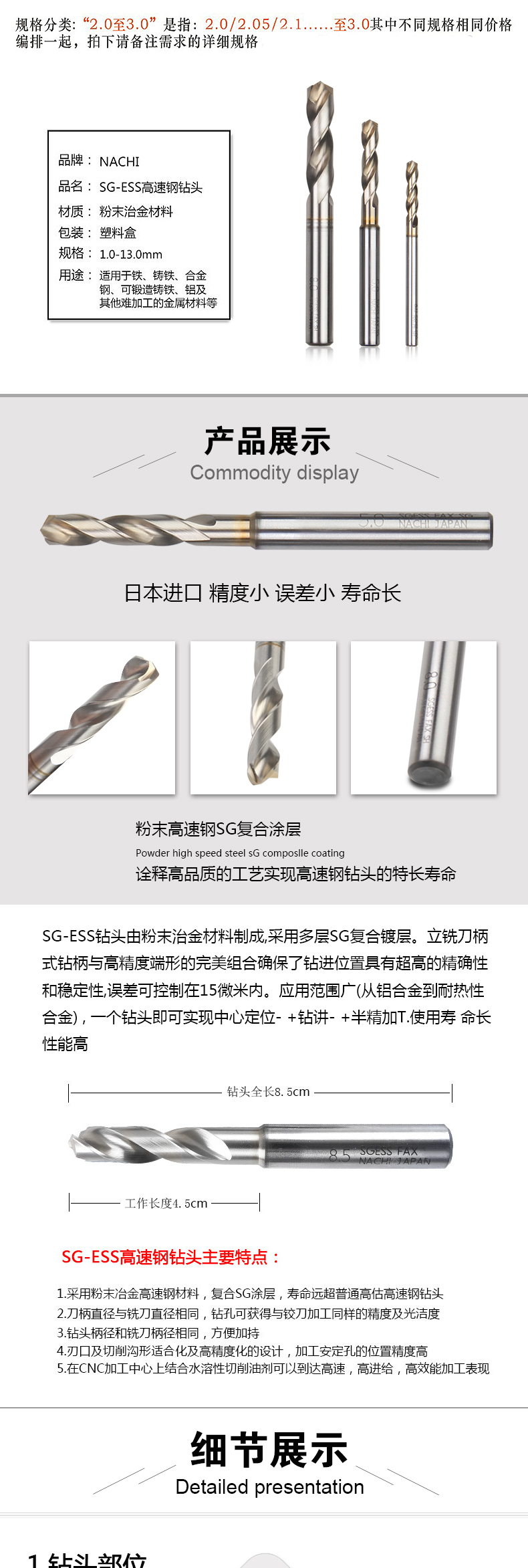 Haolishun imported from Japan NACHI Fujitsu 7572P powder metallurgy drill bit SG-ESS high-speed steel drill bit short blade 17.0XD20