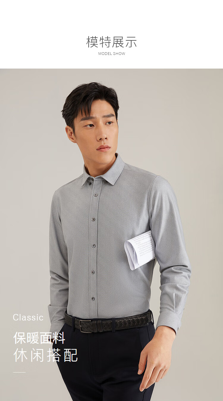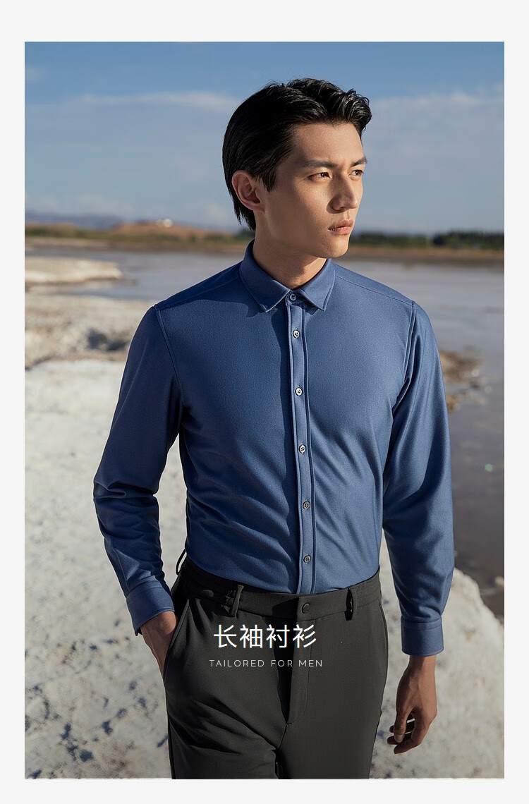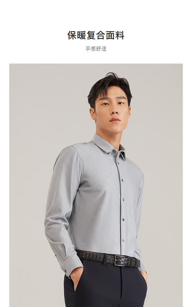 Youngor 3D composite down Youngor autumn and winter laminated down warm antibacterial infrared plus fleece long-sleeved shirt blue 41