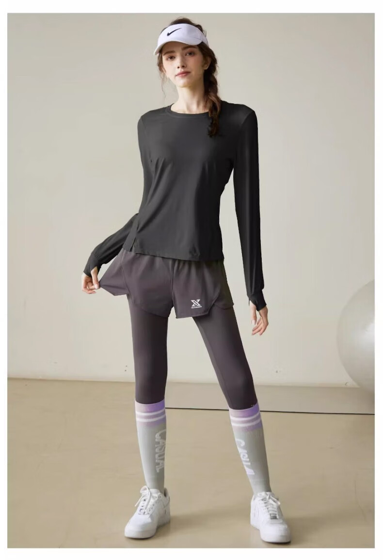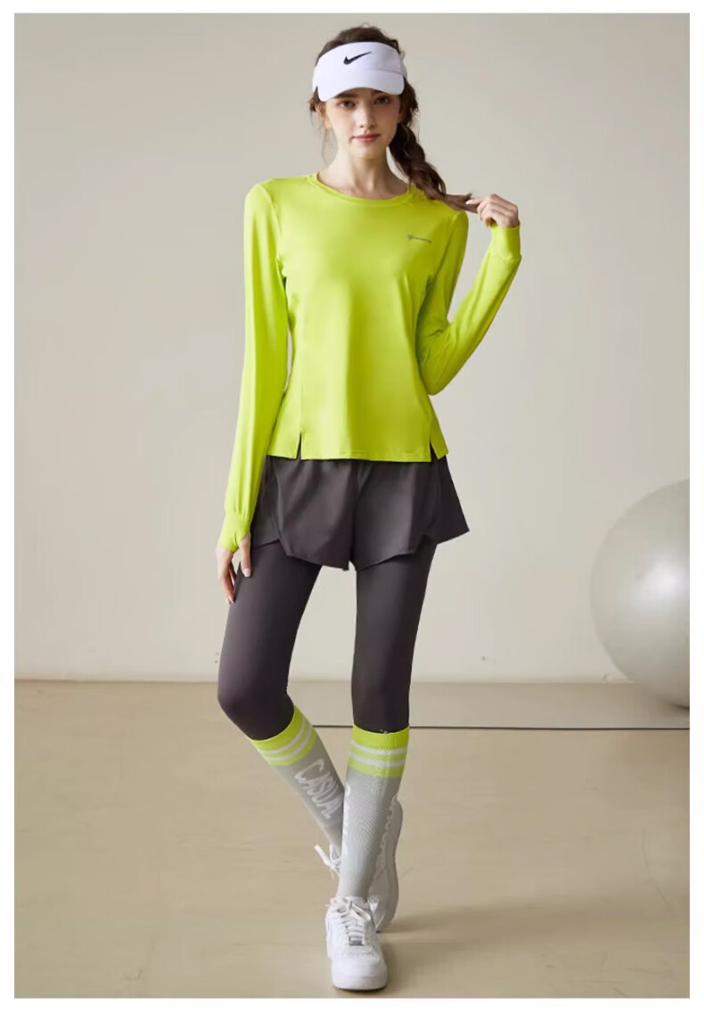 Yuebu Running Sports Suit Women's Yoga Clothes Morning Running Exercise Badminton Pilates Fitness Running Cycling Clothing Quick-drying Clothing Lemon Yellow Long Sleeve S Recommendation 85-98Jin Jin equals 0.5kg