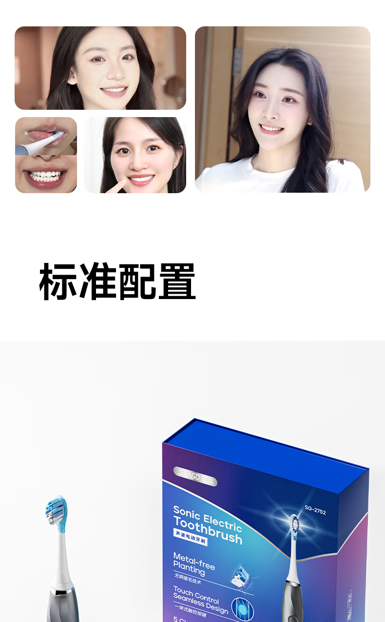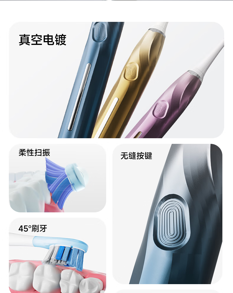 Saijia Intelligent Electric Toothbrush Adult Flagship Travel Portable Gum Protection Brush for Boys Birthday Gift March 8th Goddess Day Gift Sense Plus Titanium Powder (With 8 Brush Heads + Portable Box)