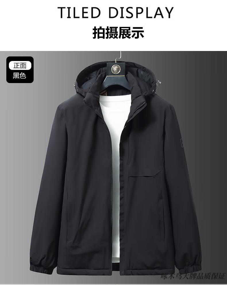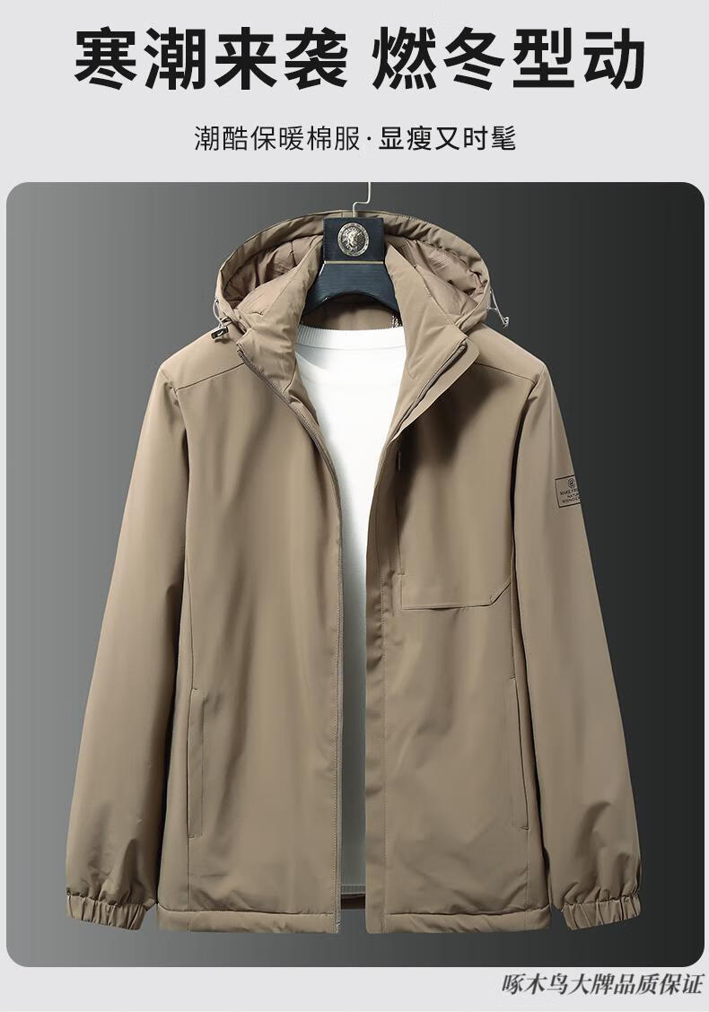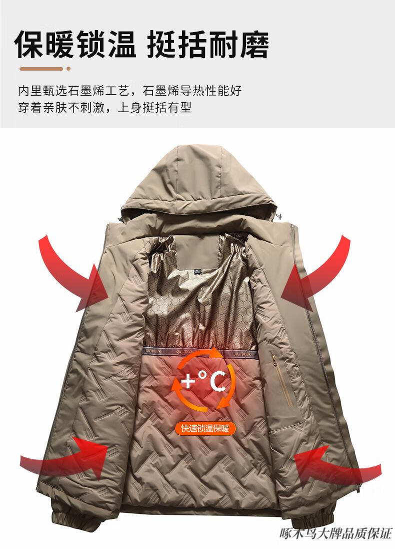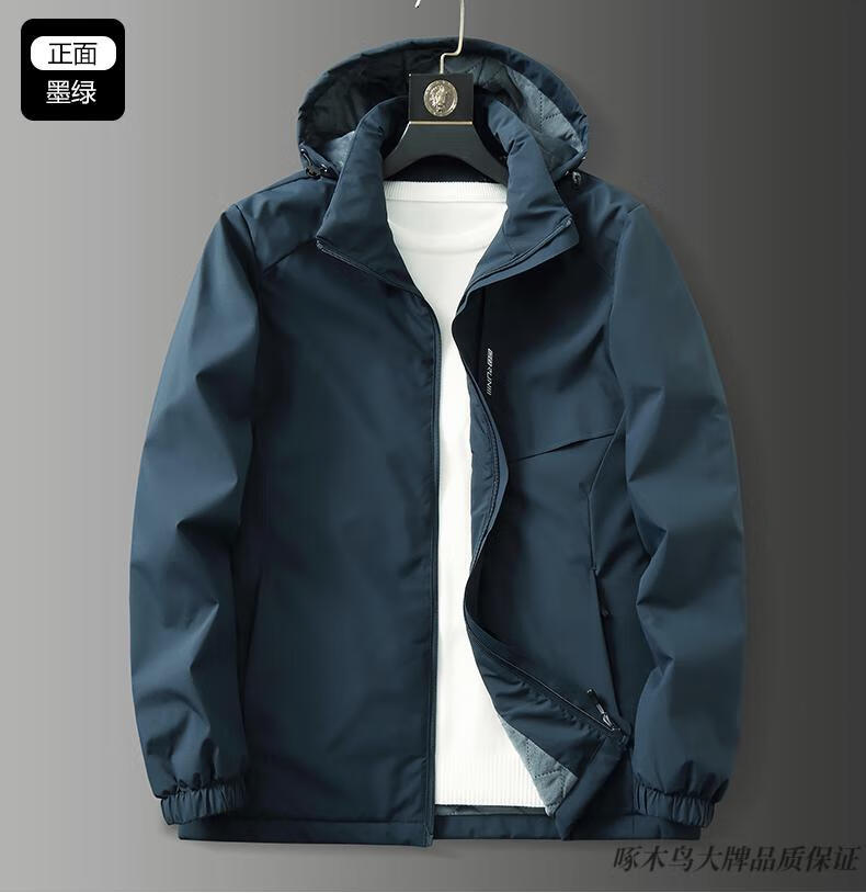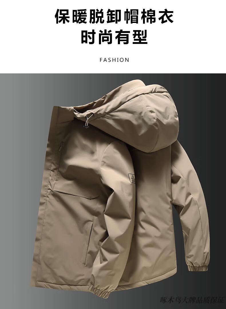 Woodpecker (TUCANO) cotton coat men's autumn and winter large size men's thin cotton coat removable hood casual graphene two-cotton plus velvet jacket fat man's cotton-padded jacket dark blue 2398wn 8XL