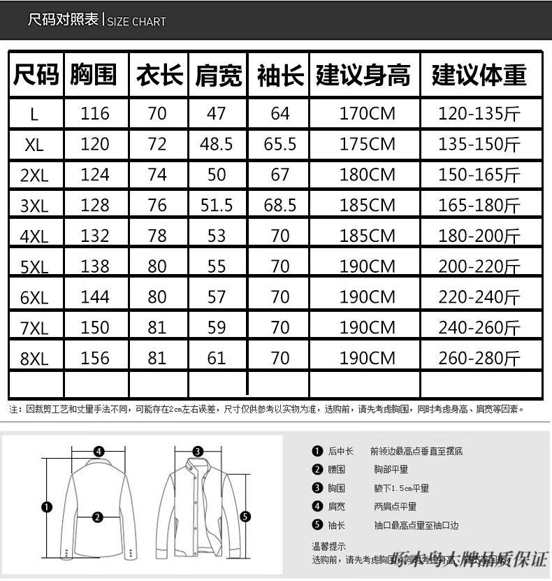 China (cm) 165 / 88-90 170 / 96-98 175 / 108-110 180 / 118-122 185 / 126-130