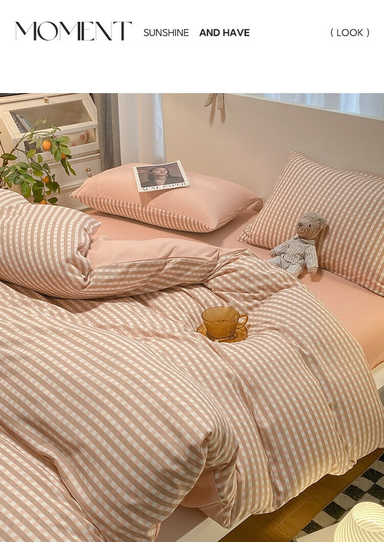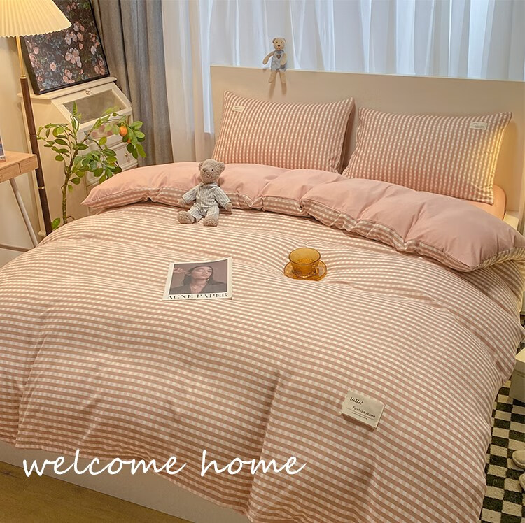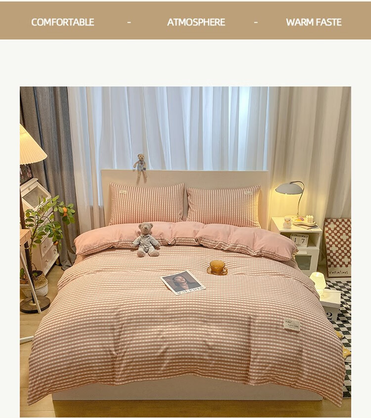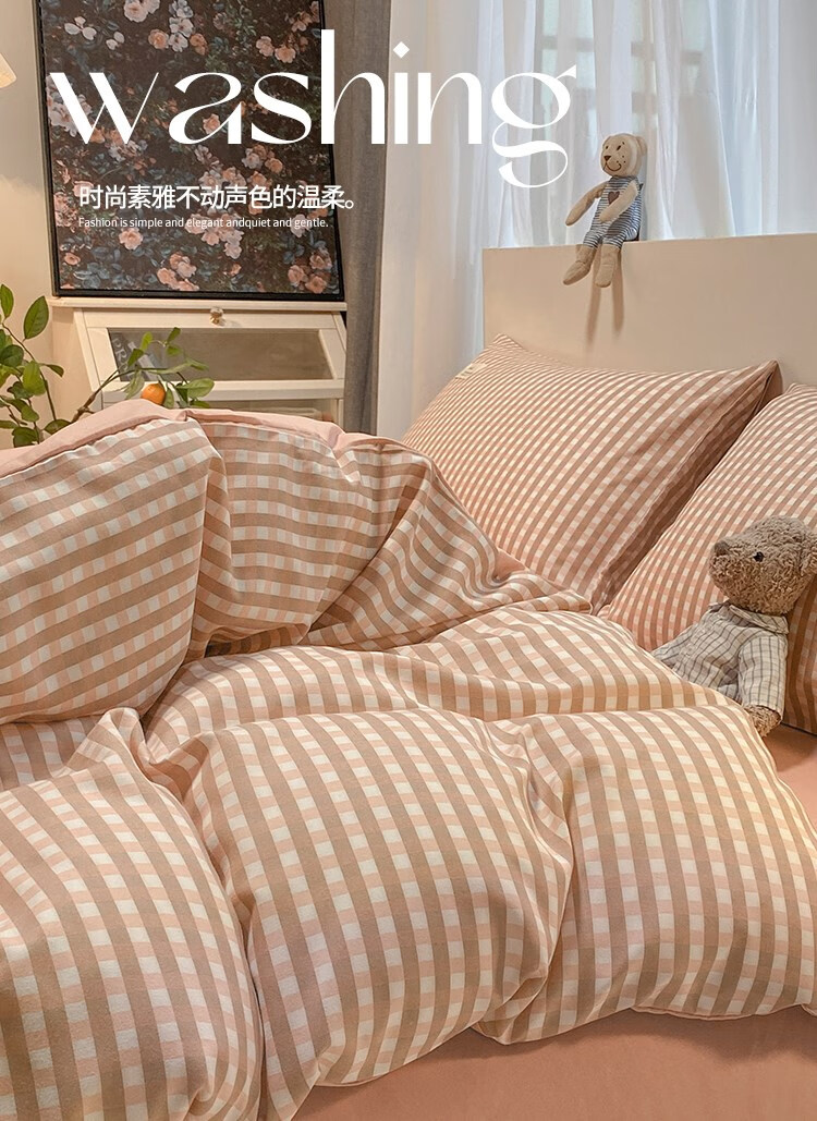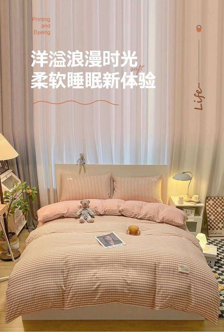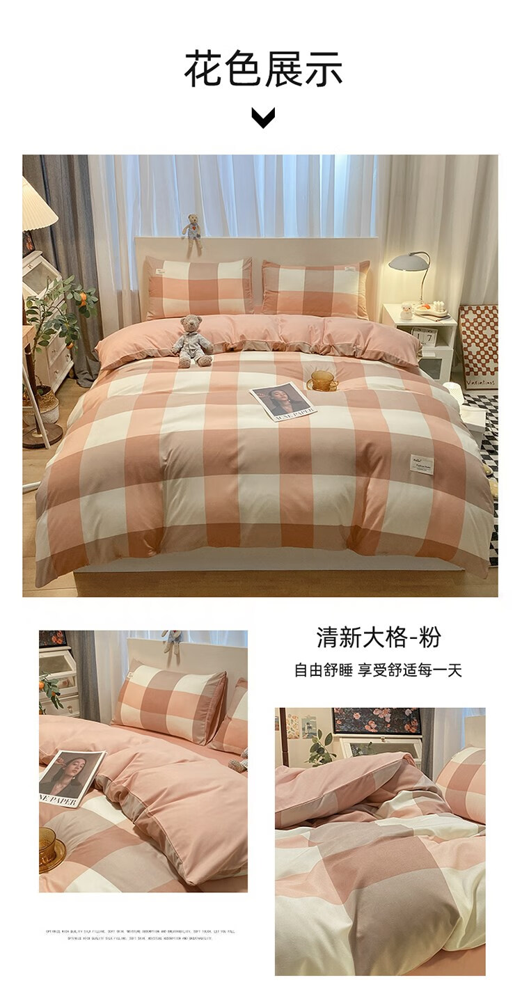 Boutique bed sheet four-piece set 2023 new pure cotton quilt cover student dormitory bedding three-piece set emerald green grass green small grid 1.2m bed sheet style quilt cover 150x200cm 4-piece set