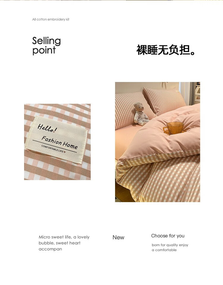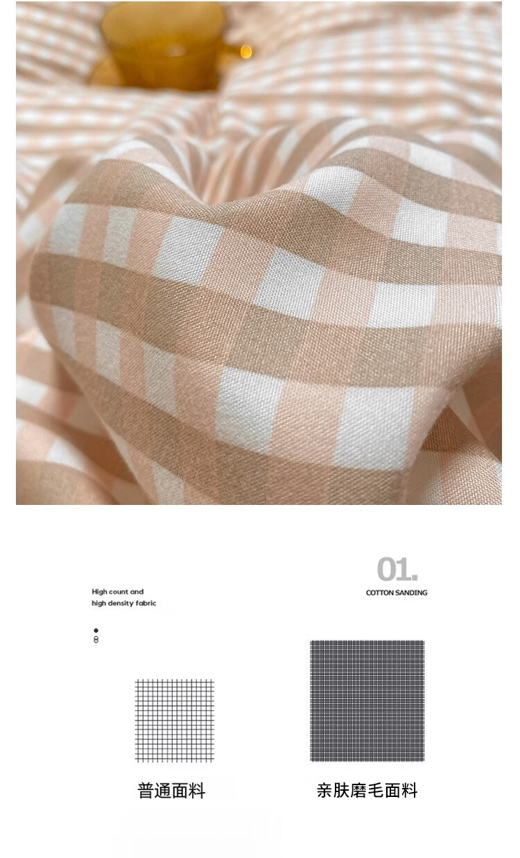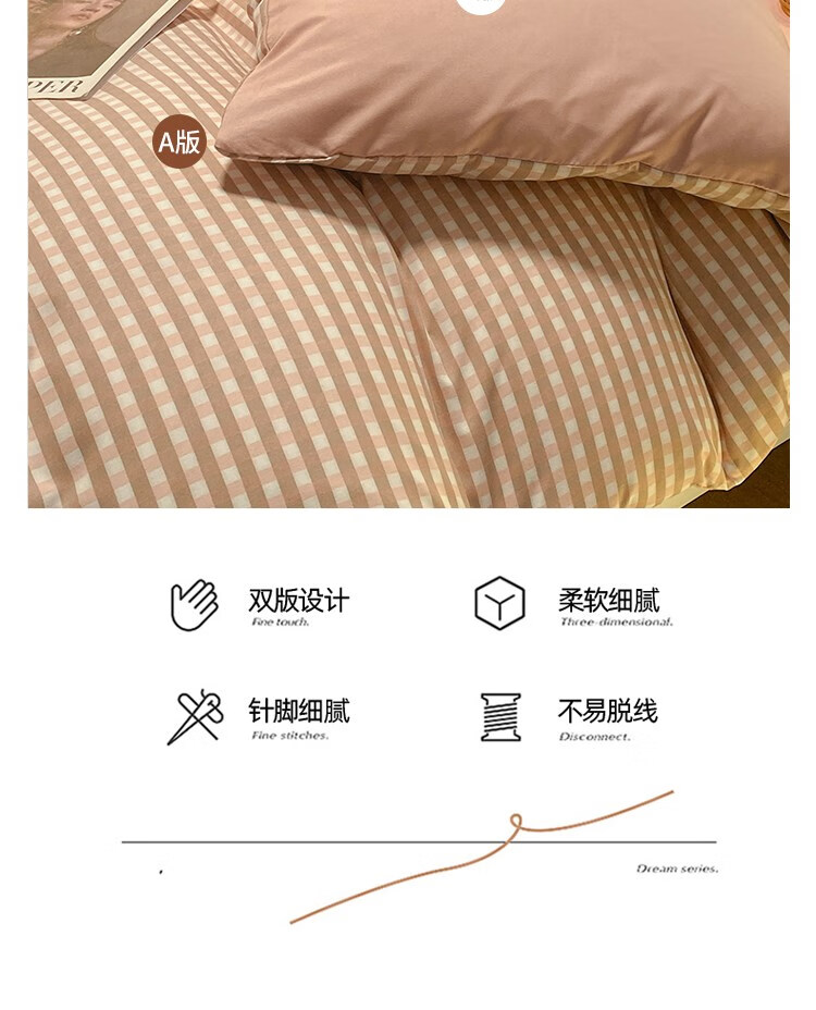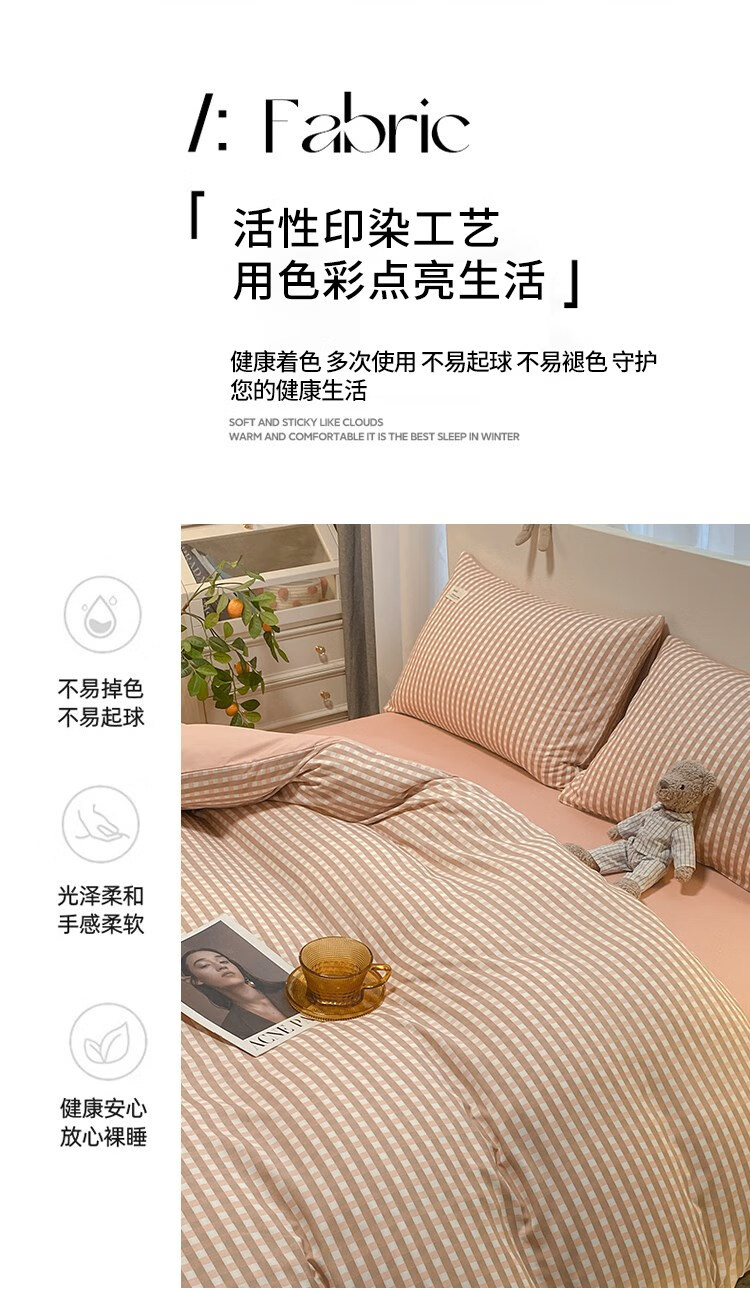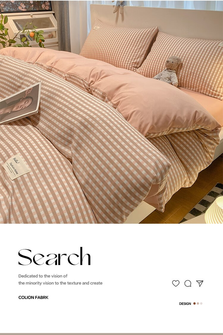 Boutique bed sheet four-piece set 2023 new pure cotton quilt cover student dormitory bedding three-piece set emerald green grass green small grid 1.2m bed sheet style quilt cover 150x200cm 4-piece set