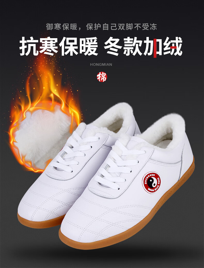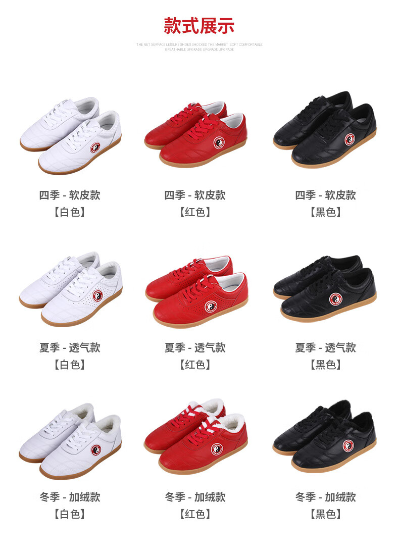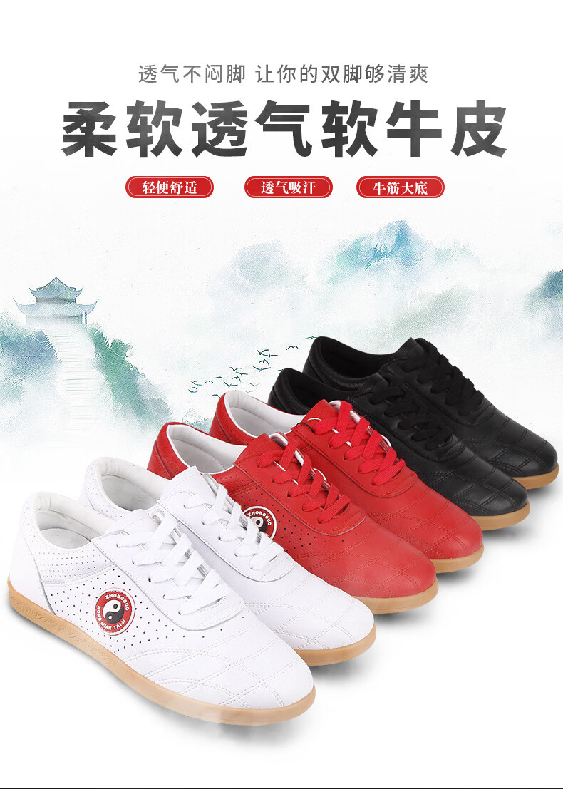 Red cotton Chenjiagou Tai Chi shoes for women tendon sole cowhide autumn and winter martial arts shoes Tai Chi practice shoes for men sports running shoes LP005 spring and autumn white 35