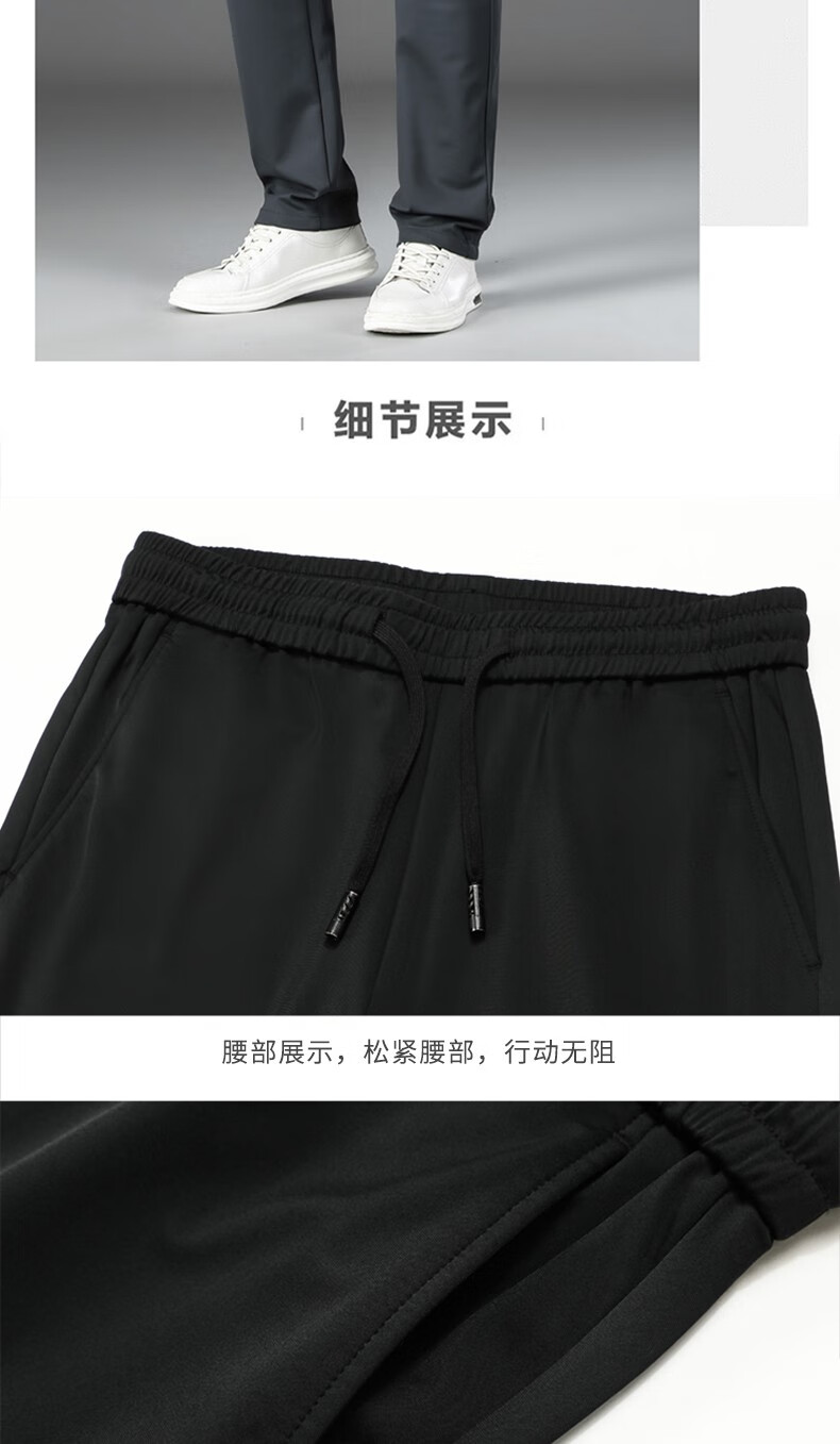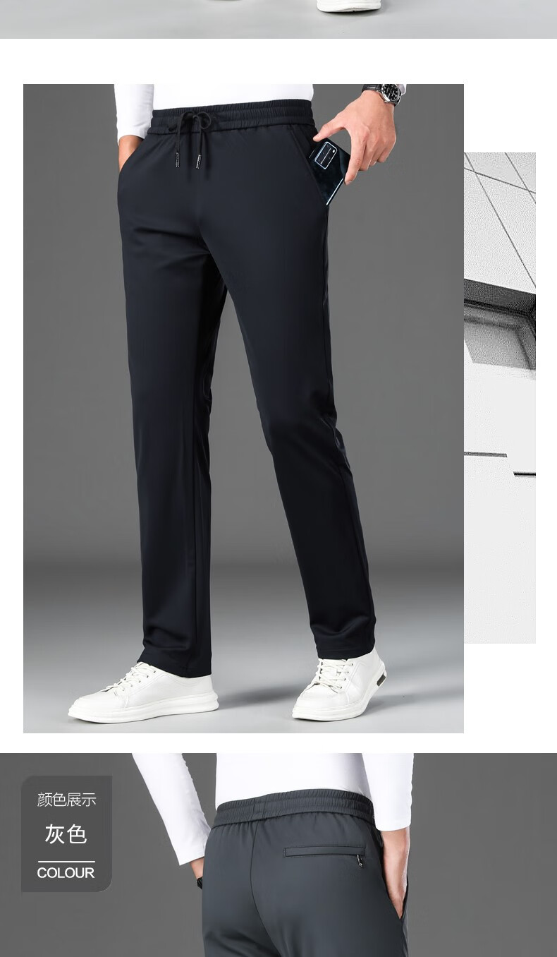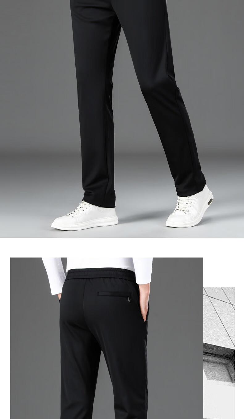 Woodpecker Sports Casual Pants Men's Autumn and Winter Loose Straight High Elastic Men's Trousers Elastic Waist Anti-Wrinkle Plus Velvet Pants Men's Black Spring and Autumn Style XL