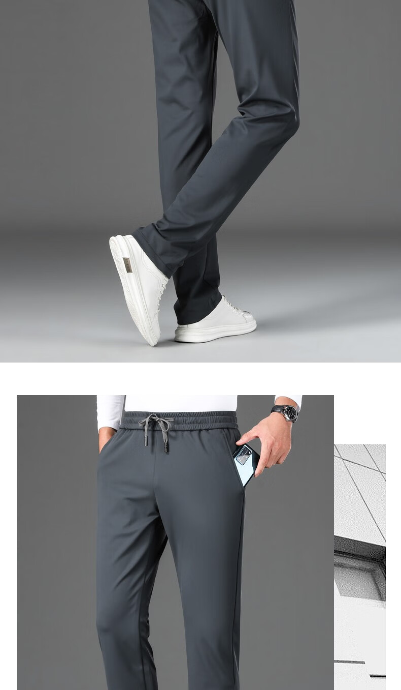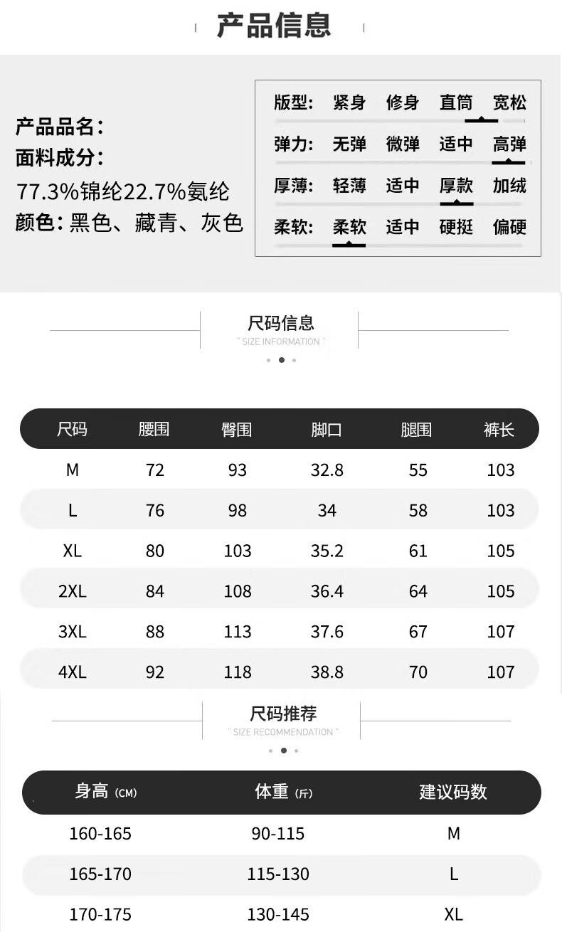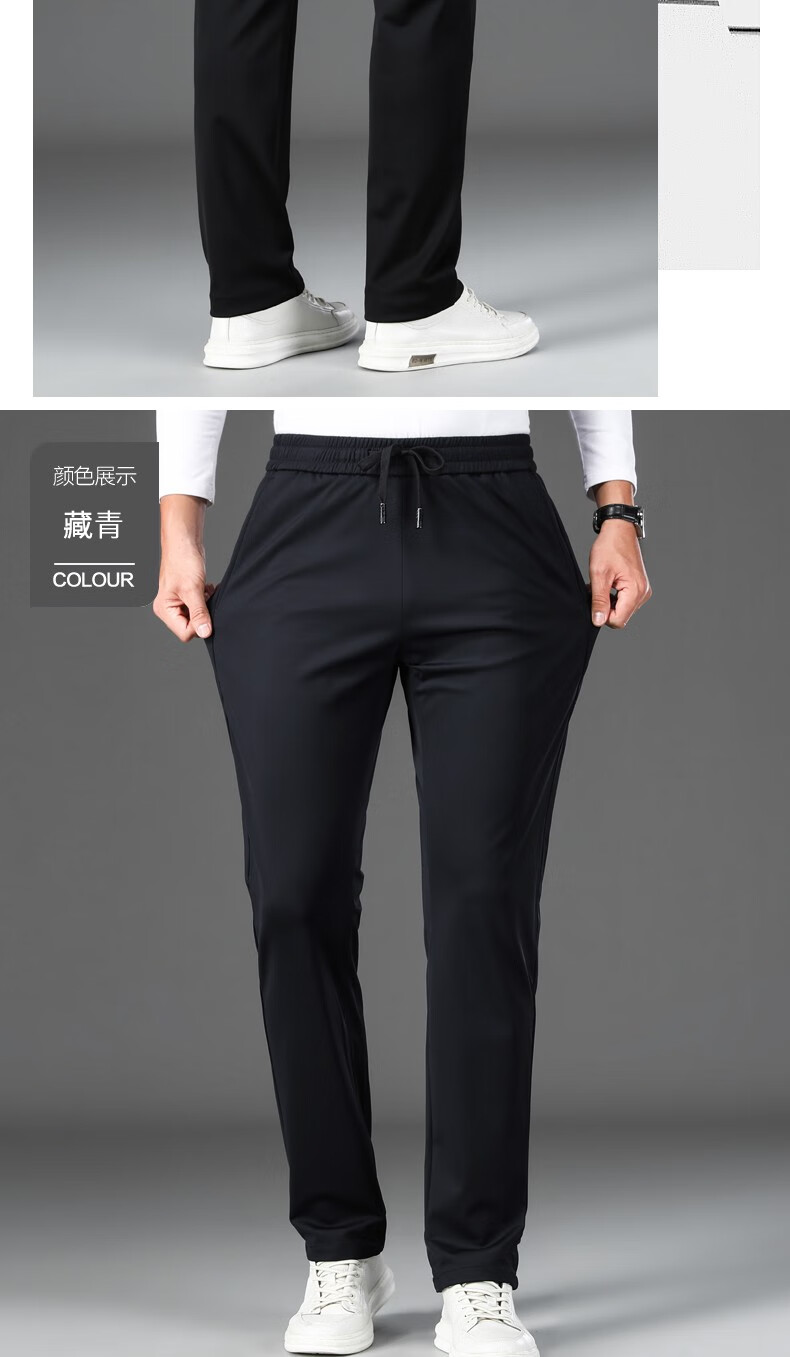 Woodpecker Sports Casual Pants Men's Autumn and Winter Loose Straight High Elastic Men's Trousers Elastic Waist Anti-Wrinkle Plus Velvet Pants Men's Black Spring and Autumn Style XL