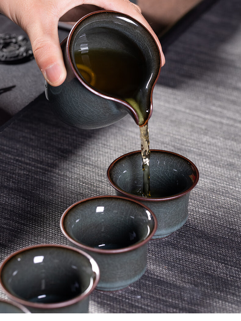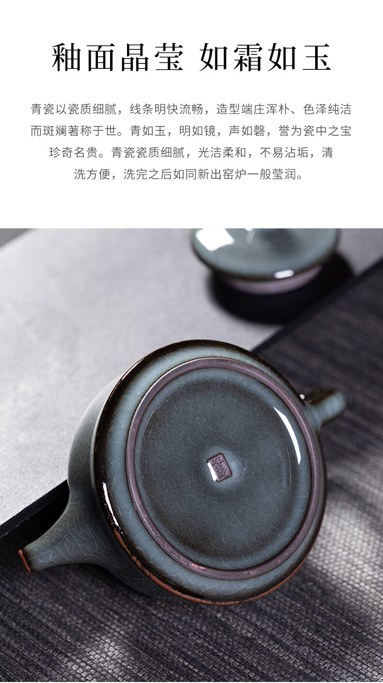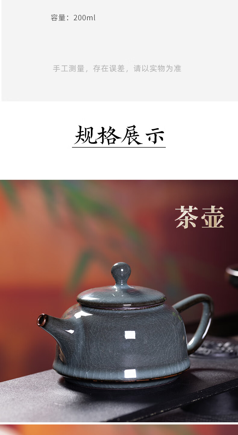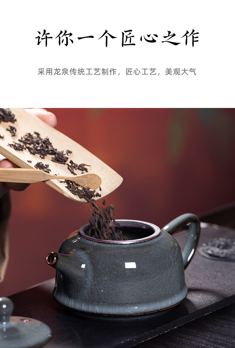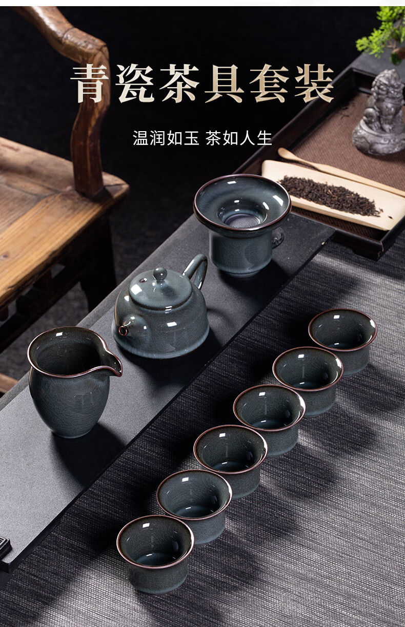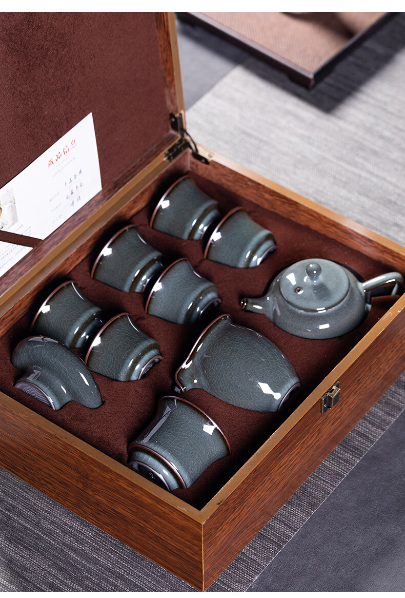 Longquan celadon high-end tea set Ge kiln iron tire ice crack open piece home reception tea pot tea cup set gift box iron tire fixed pot tea set 10 pieces gift box