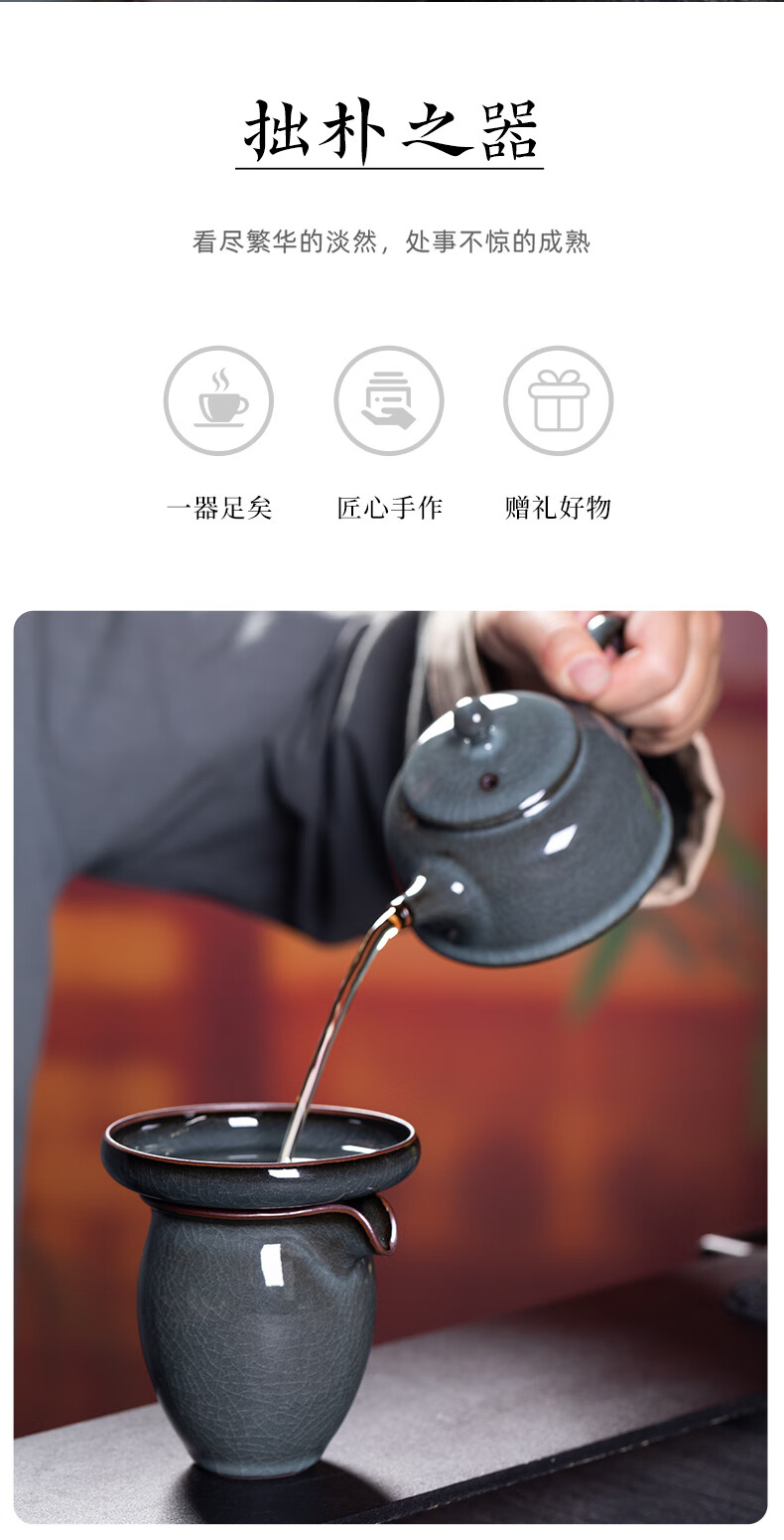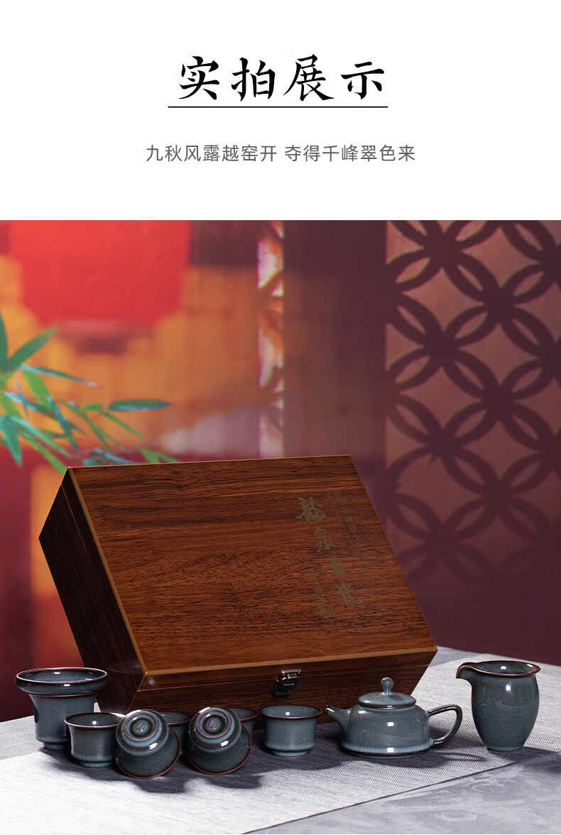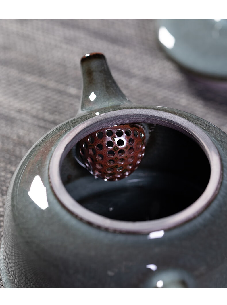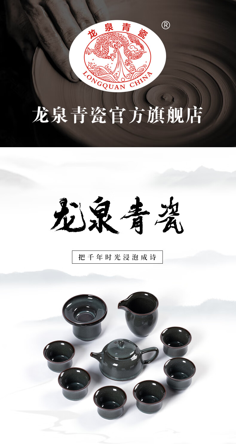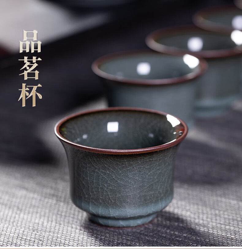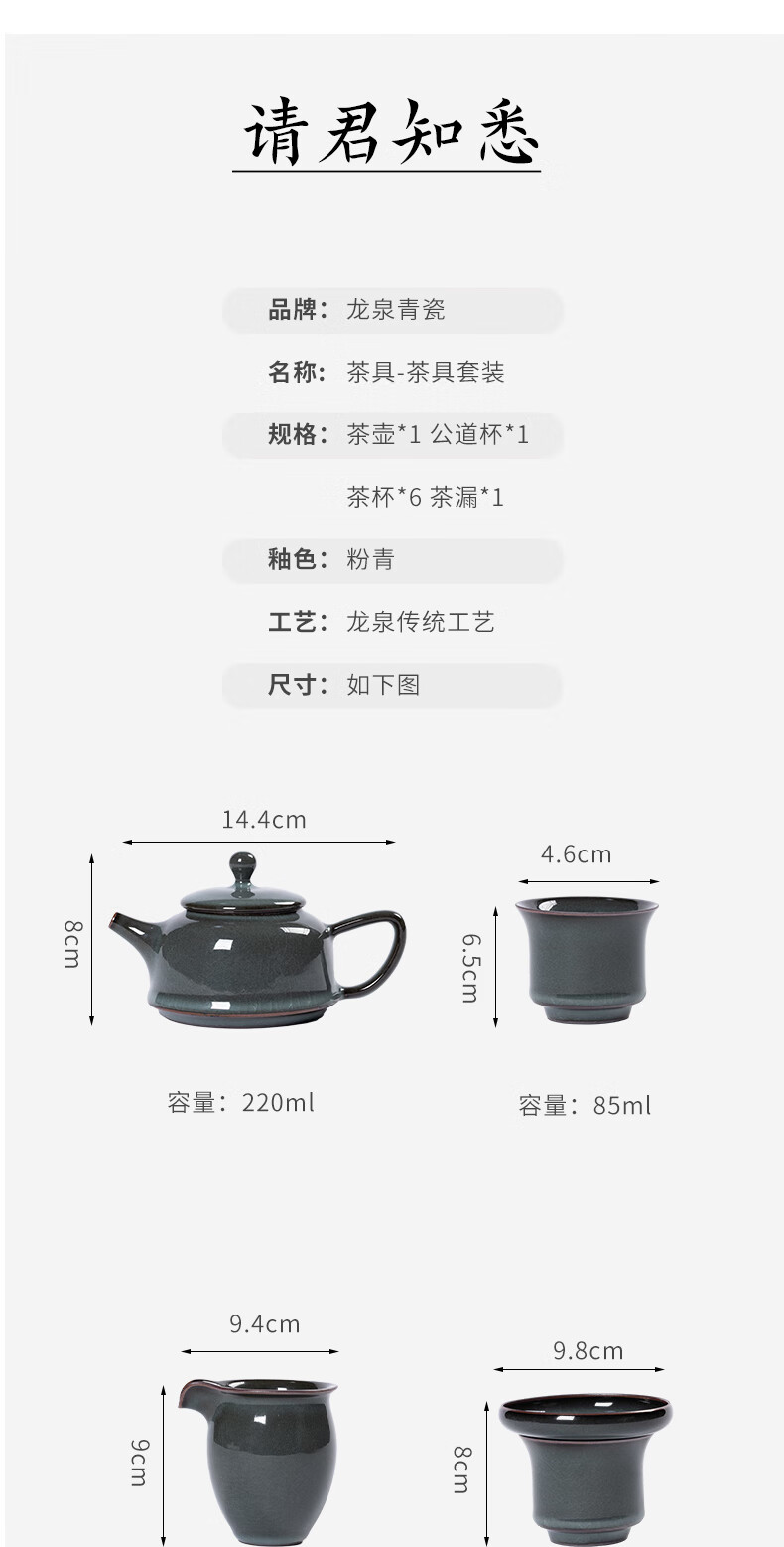 Longquan celadon high-end tea set Ge kiln iron tire ice crack open piece home reception tea pot tea cup set gift box iron tire fixed pot tea set 10 pieces gift box