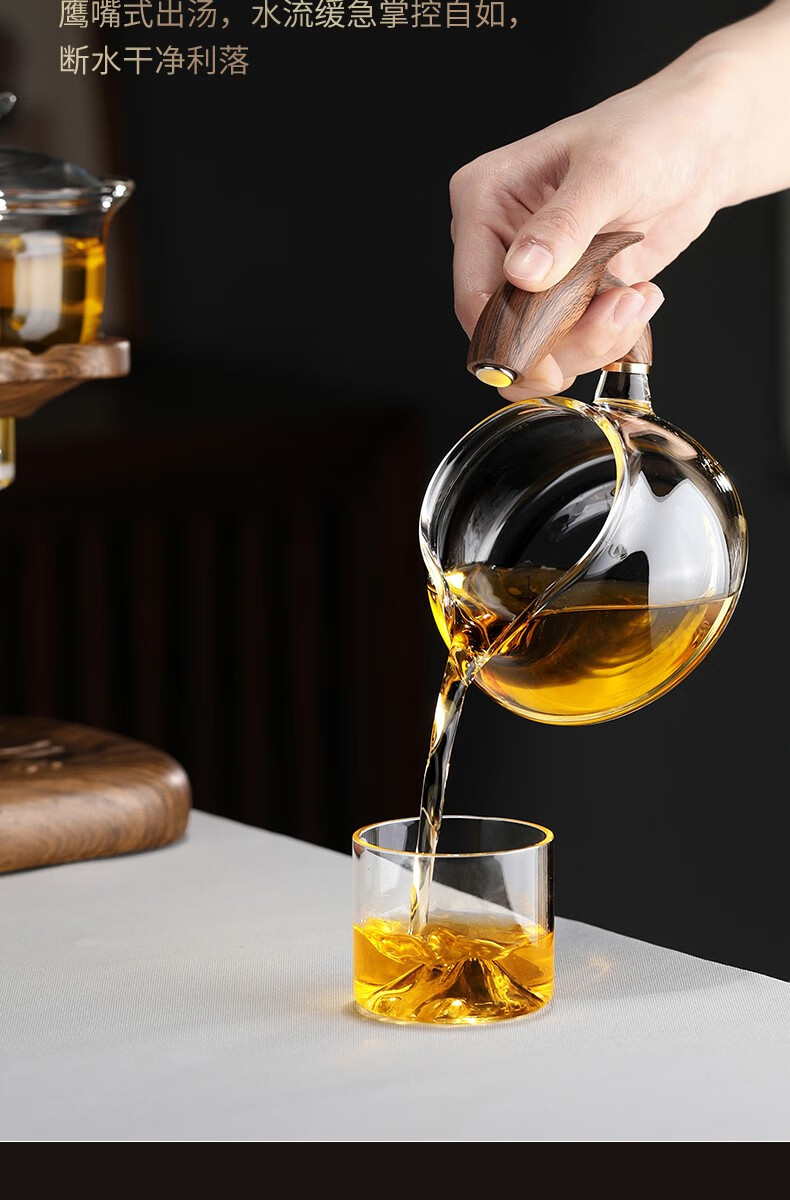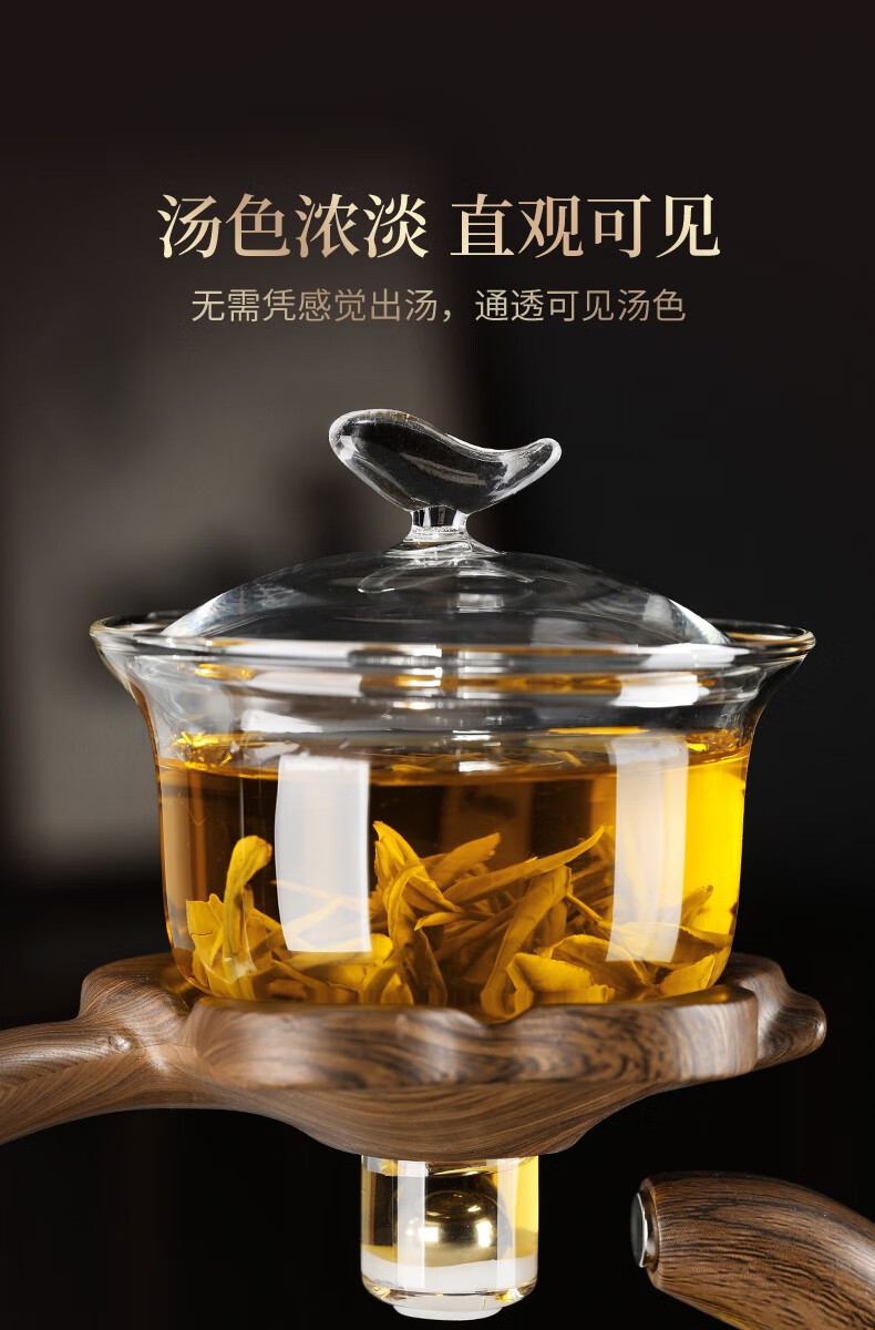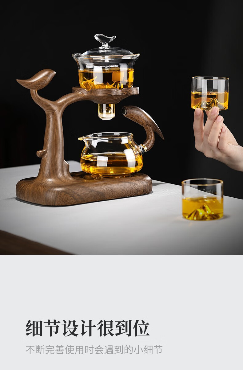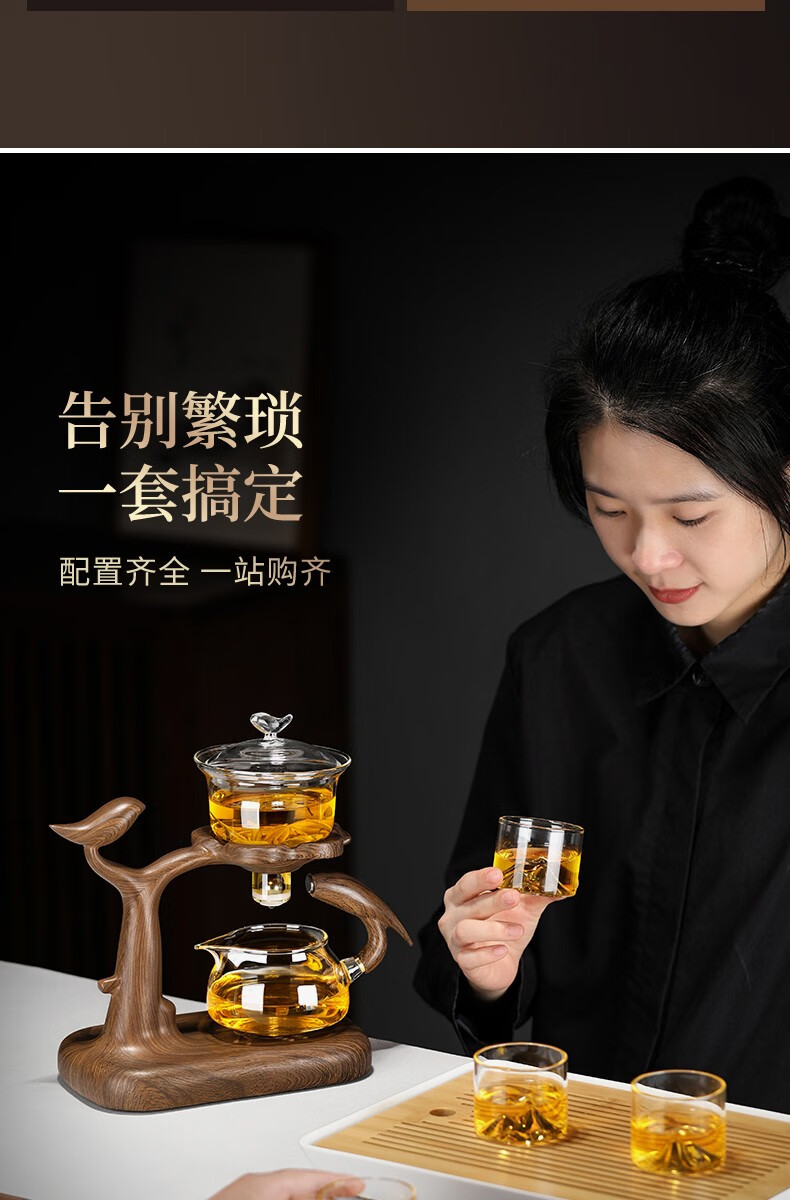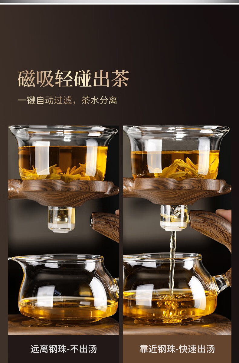 Shangyanfang glass tea set magnetic tea making home office fully automatic kung fu lazy tea making artifact tea set 1 basic model wood grain happy automatic tea set