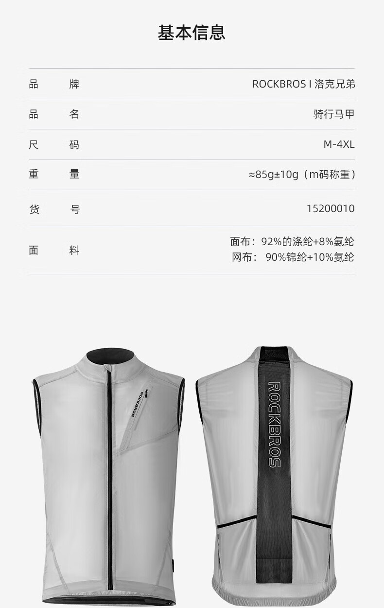 ROCKBROS Cycling Vest Men's and Women's Windproof Vest Breathable Mountain Road Bike Sleeveless Top Cycling Clothing Gray 3XL