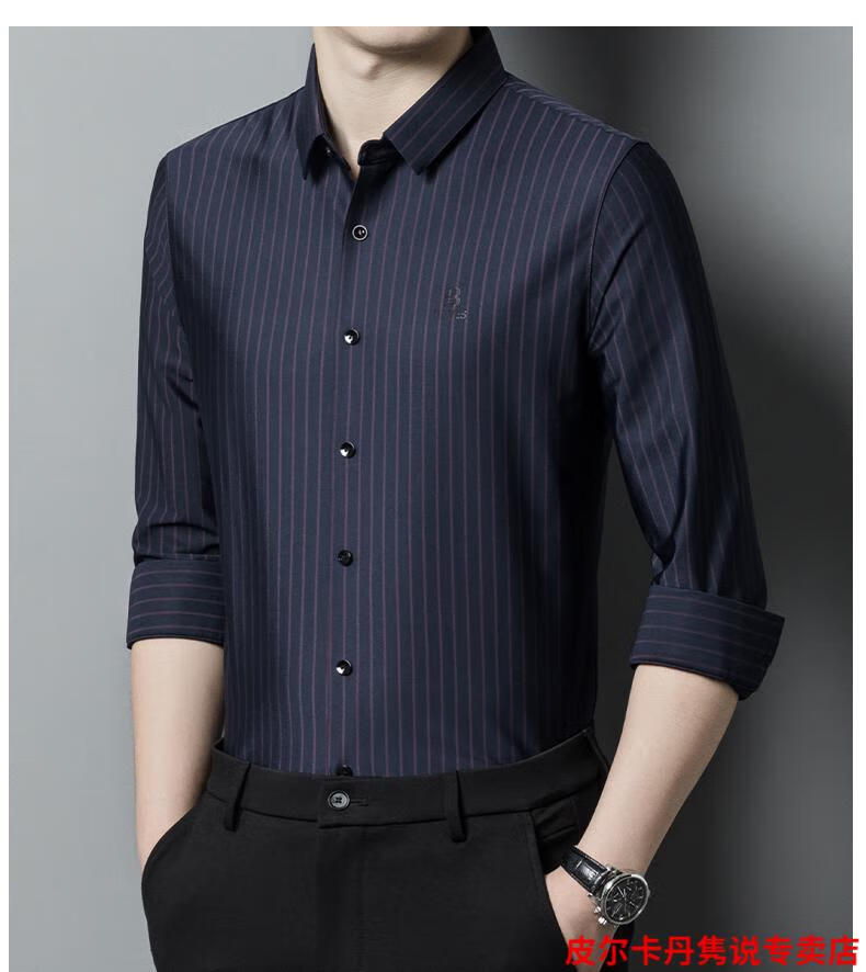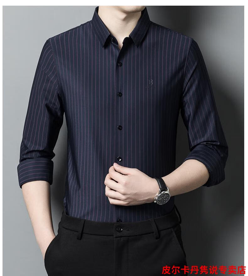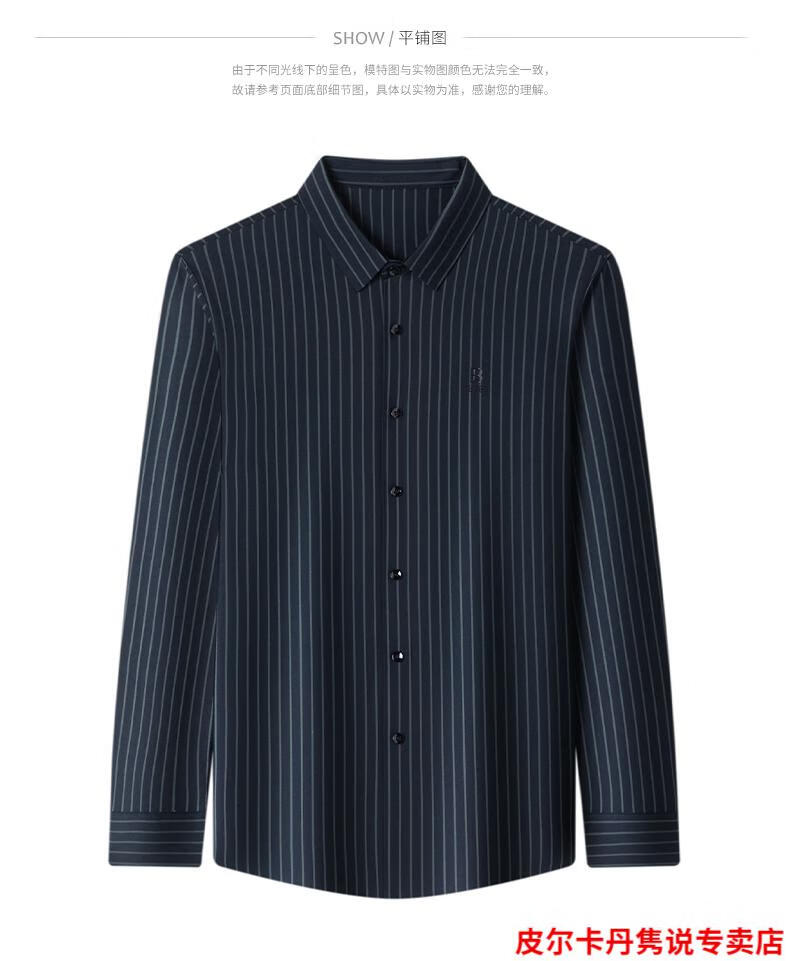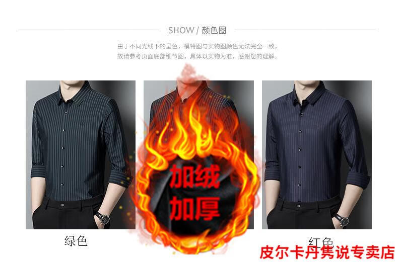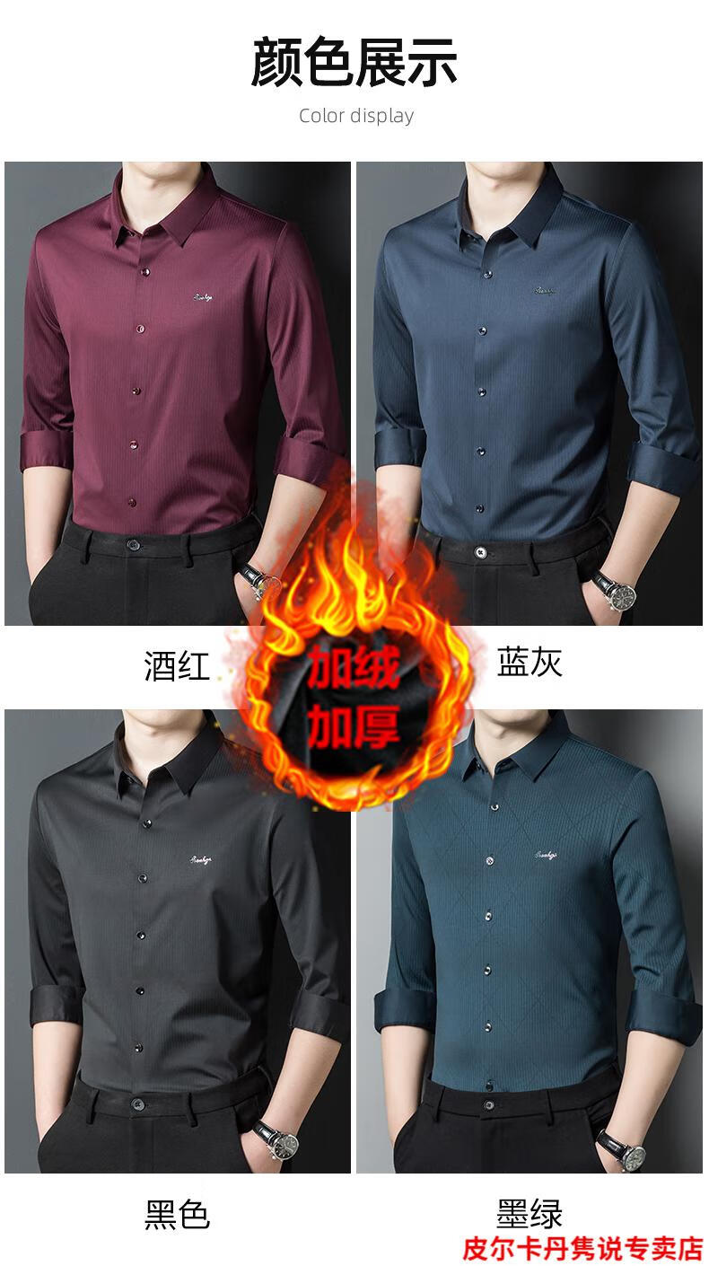 Pierre Cardin brand men's high-end mulberry silk shirt men's long-sleeved velvet thickened warm autumn and winter all-in-one velvet no-iron shirt blue velvet 6302 vertical grain velvet L 170 recommended 120-140 Jin Jin equals 0.5 kg