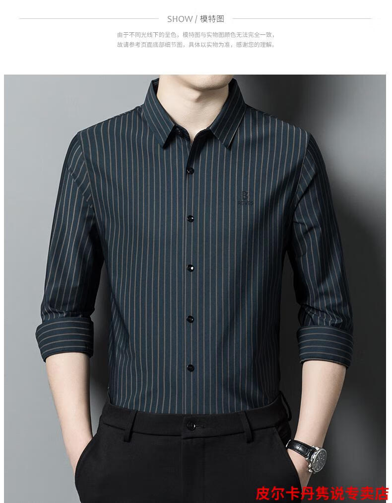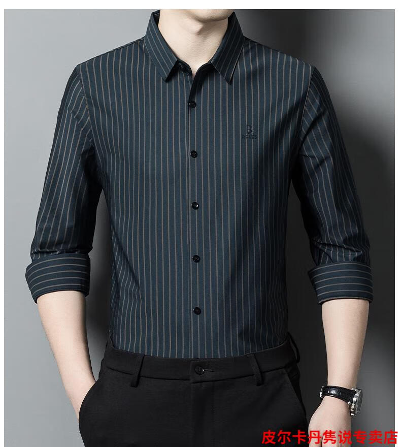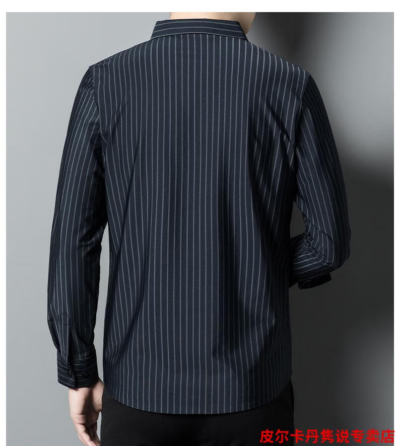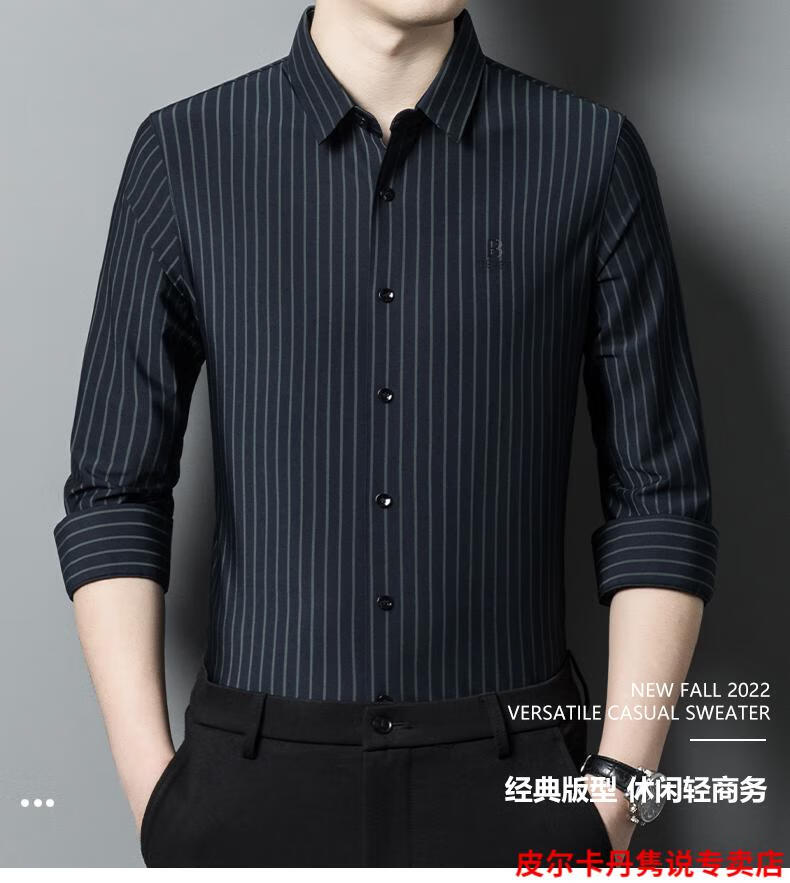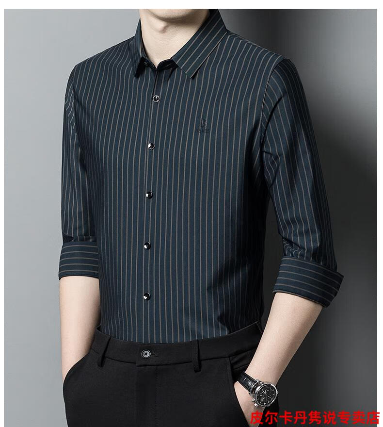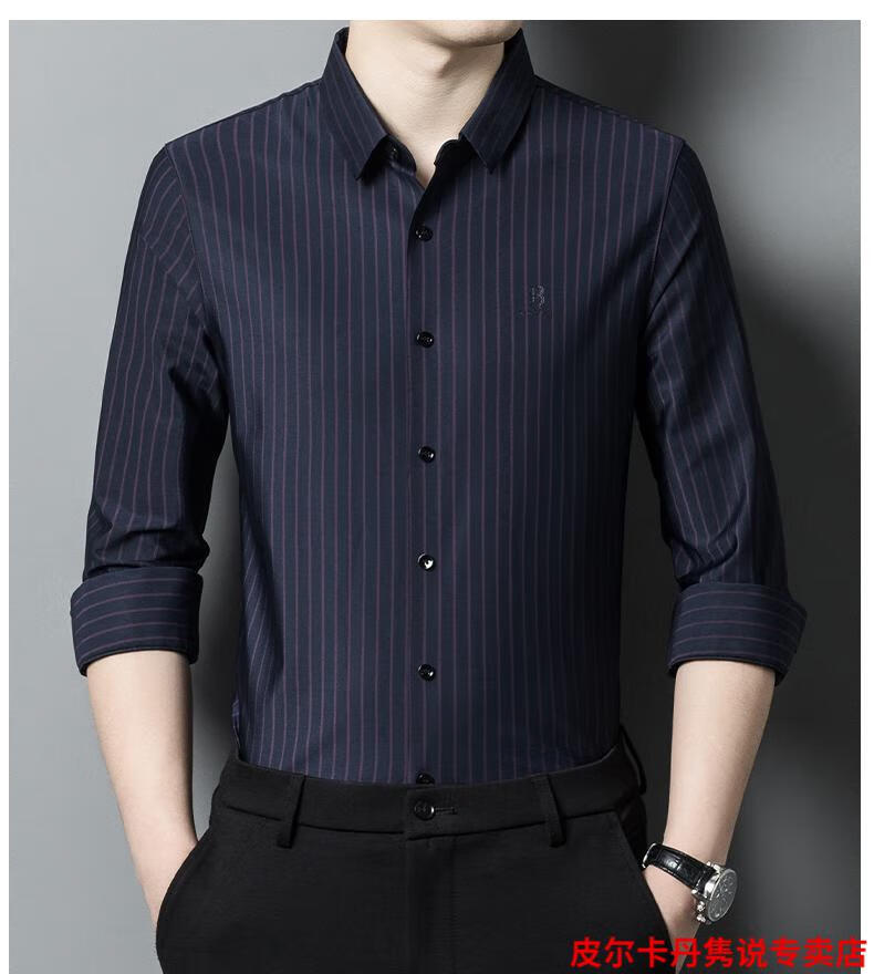 Pierre Cardin brand men's high-end mulberry silk shirt men's long-sleeved velvet thickened warm autumn and winter all-in-one velvet no-iron shirt blue velvet 6302 vertical grain velvet L 170 recommended 120-140 Jin Jin equals 0.5 kg