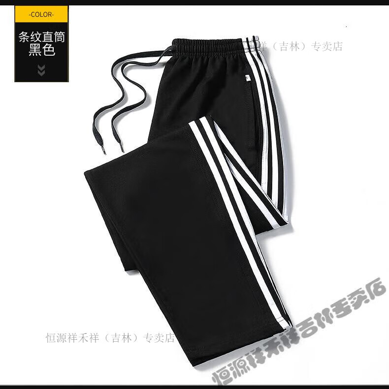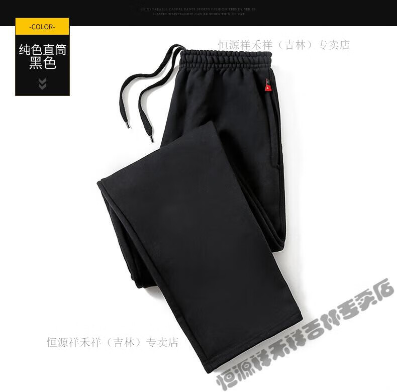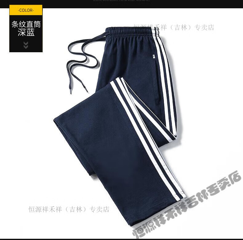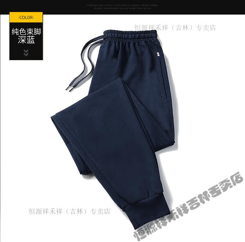 Hengyuanxiang men's pure cotton sports trousers men's autumn and winter plus velvet solid color loose straight elastic waist versatile casual pants summer straight dark blue XL spring and autumn 135-165Jin Jin equals 0.5 kg