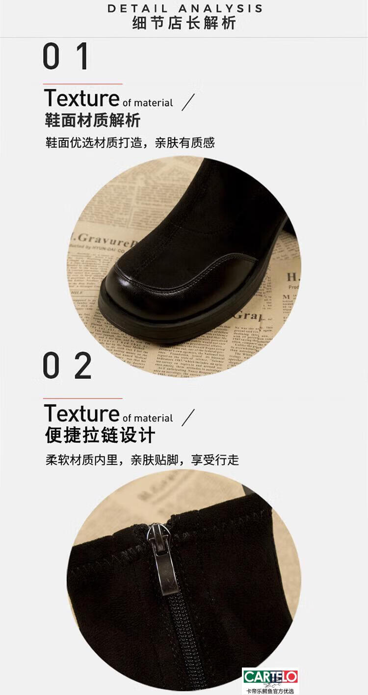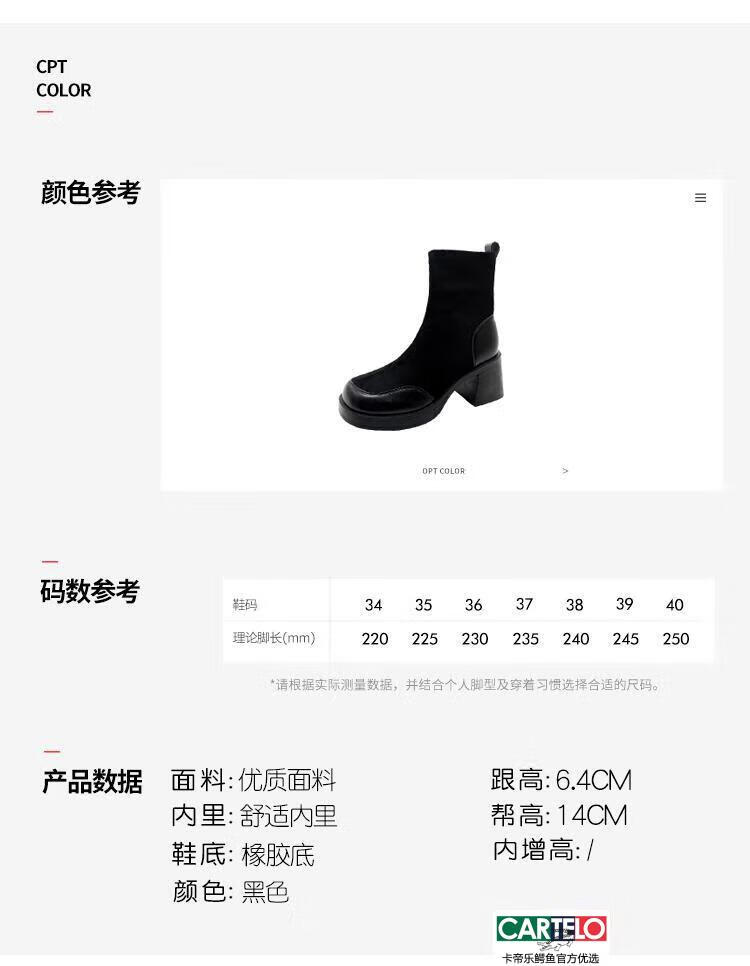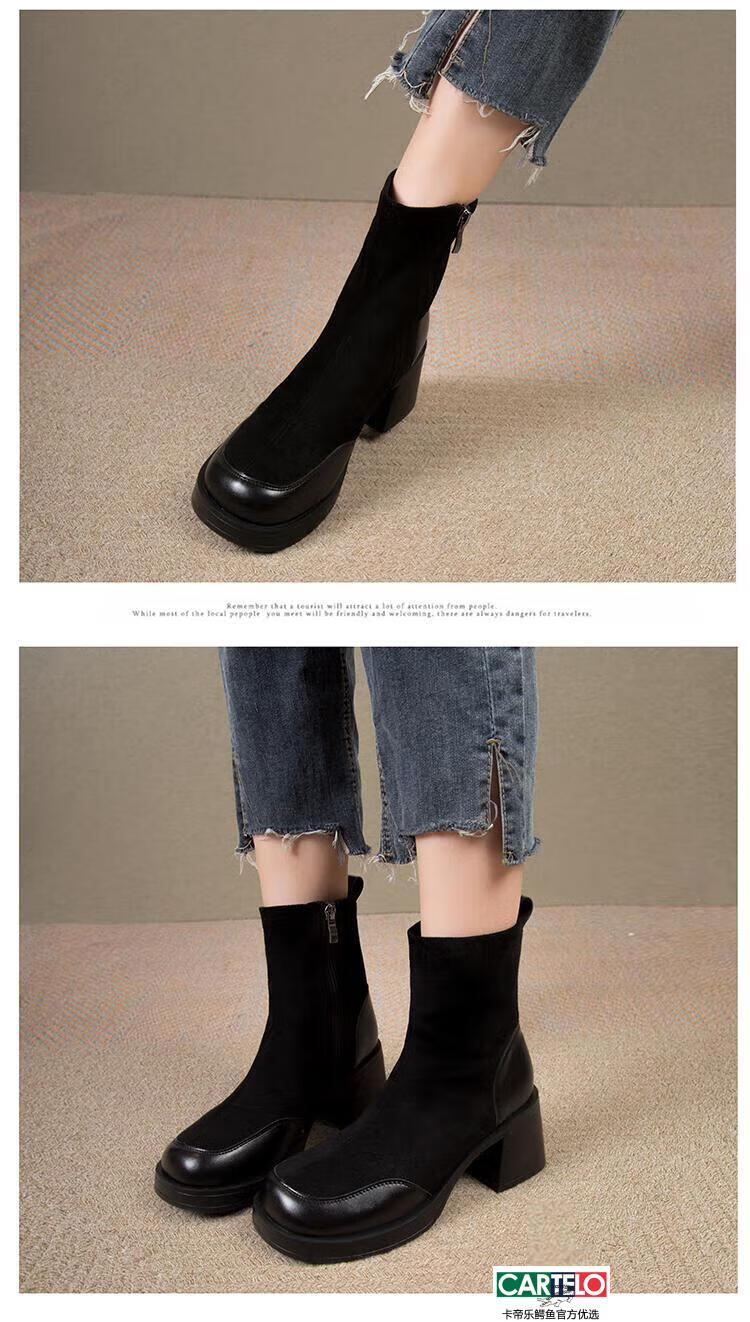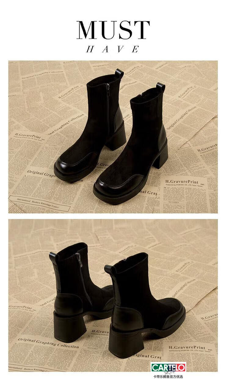 CARTELO genuine leather high-heeled boots for women 2025 autumn and winter new Korean style small ankle boots this year's popular small fragrant style thick heel short boots black upgraded version 36