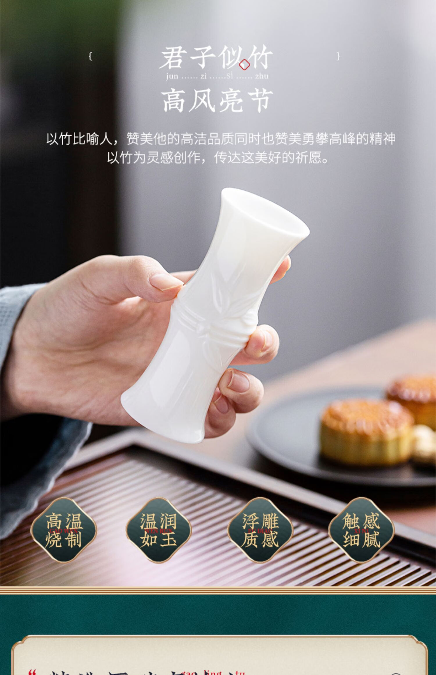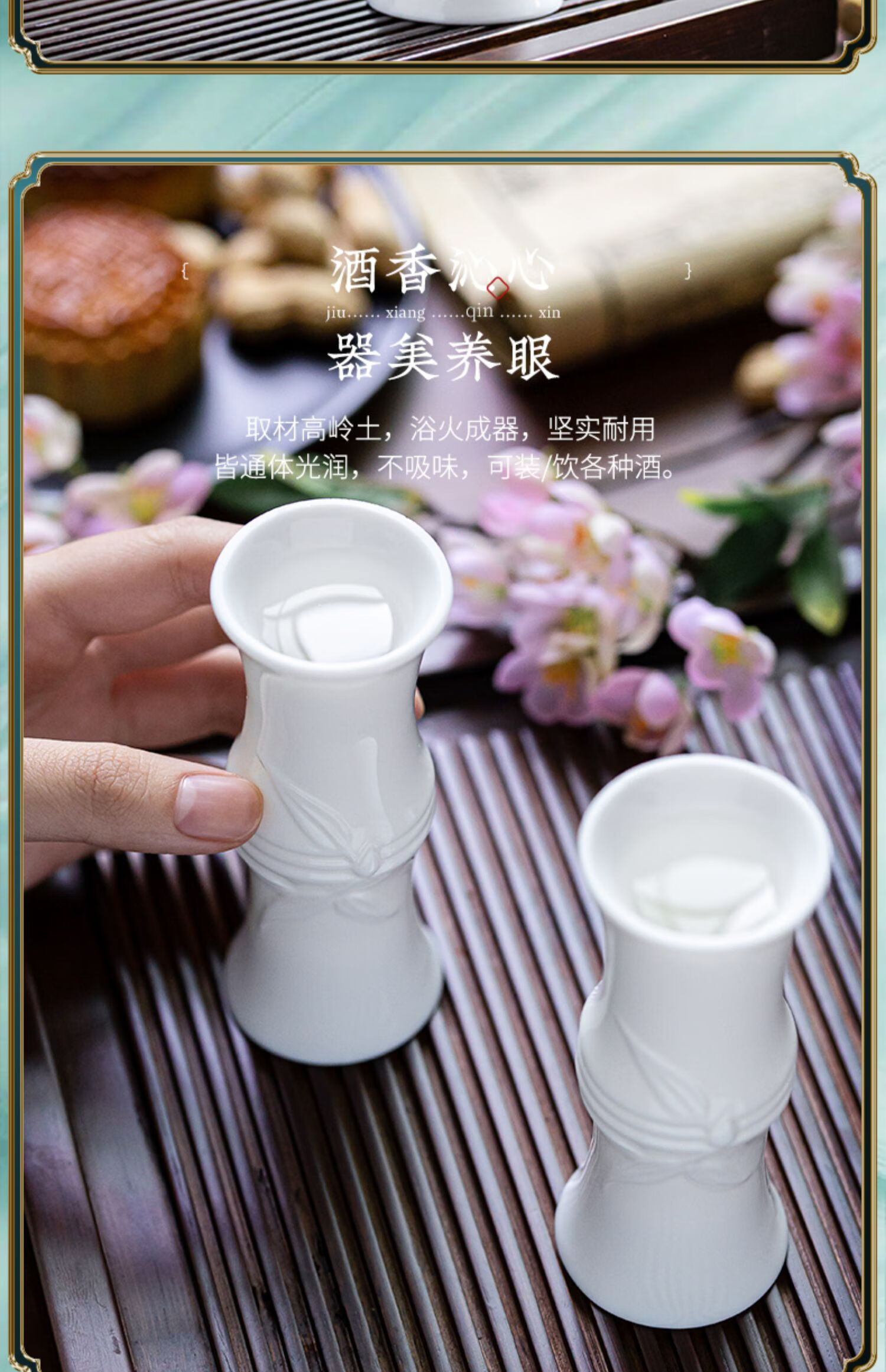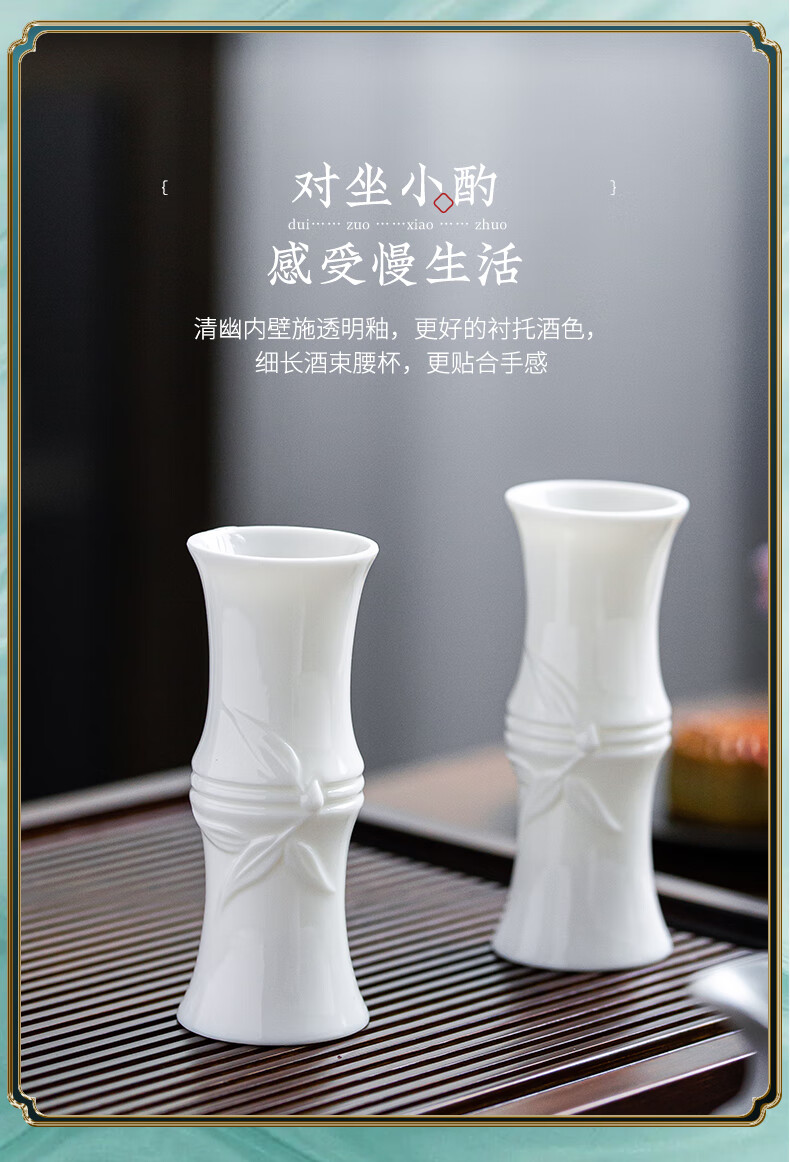 OQB Dehua white porcelain wine set infers other things wine glass mutton fat jade bamboo section one-cup ceramic creative white wine cup Fenjiu bamboo wine divider