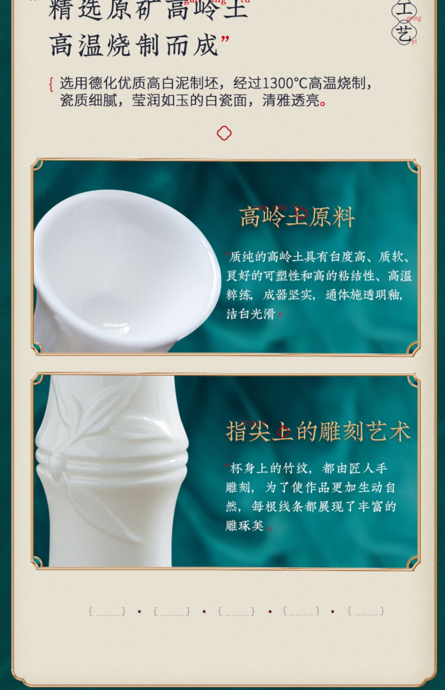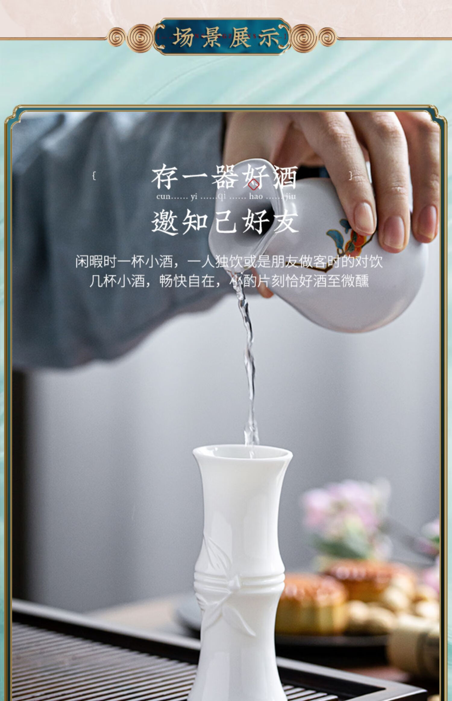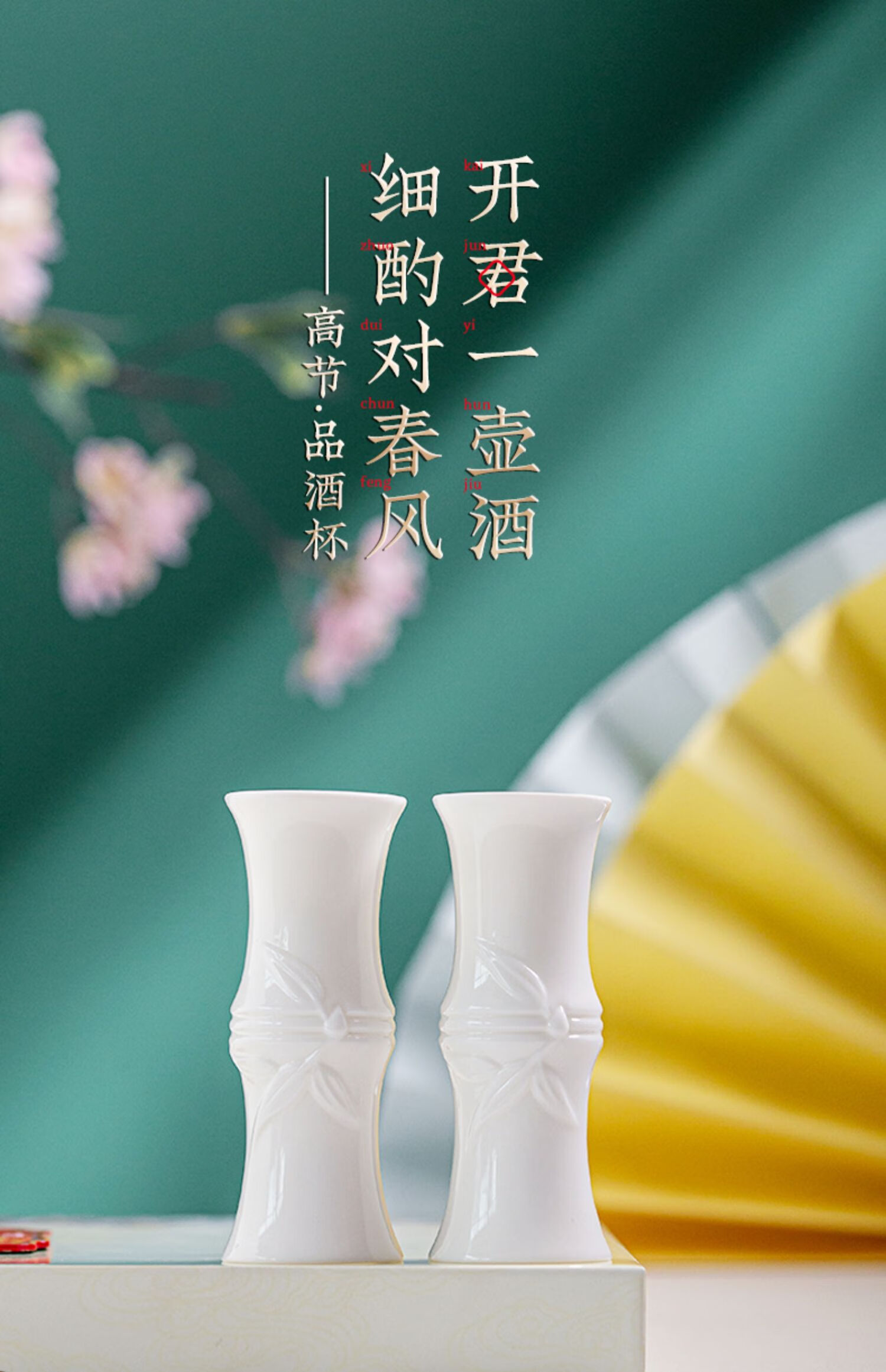 OQB Dehua white porcelain wine set infers other things wine glass mutton fat jade bamboo section one-cup ceramic creative white wine cup Fenjiu bamboo wine divider