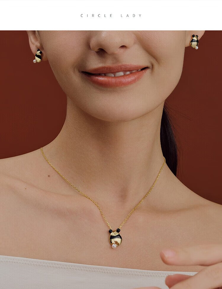 CIRCLE Jewelry Panda Series Black Onyx Akoya Saltwater Pearl Necklace Black and White Two-color Cute Pet Birthday Gift for Women Panda Necklace