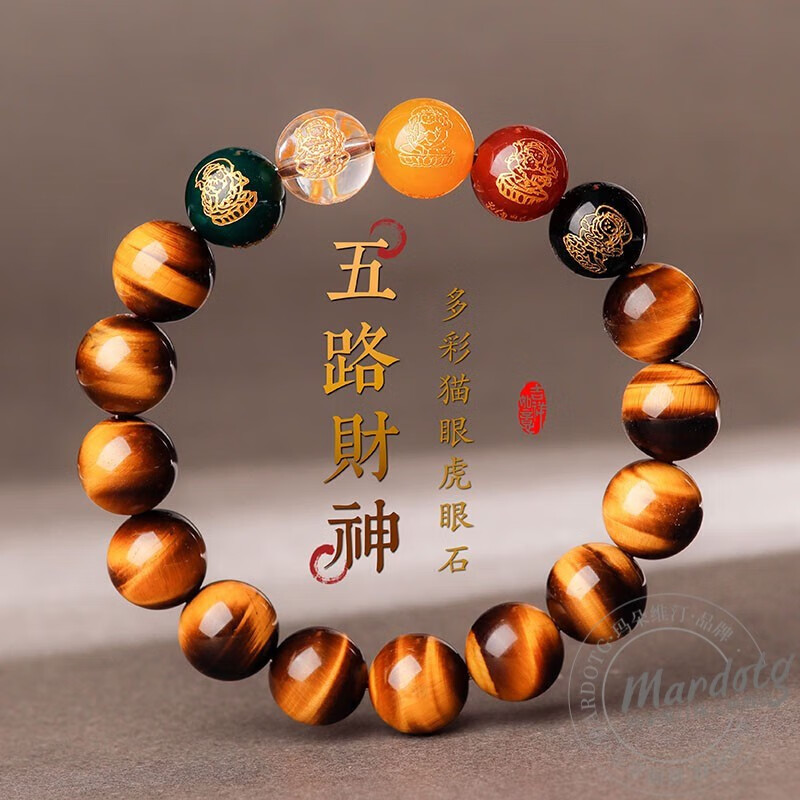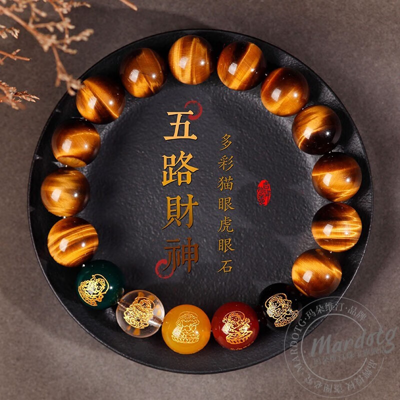 MARDOTG Tiger Eye Stone Bracelet Men's Five-Way God of Wealth Bracelet Life Year Amulet for Gift 12mm Bead Diameter-Five-Way God of Wealth Bracelet