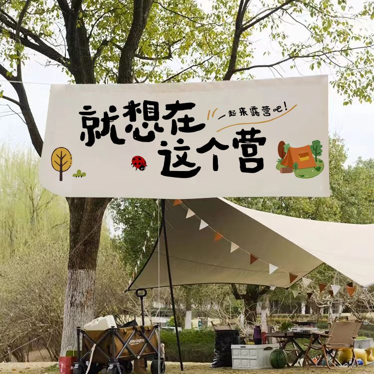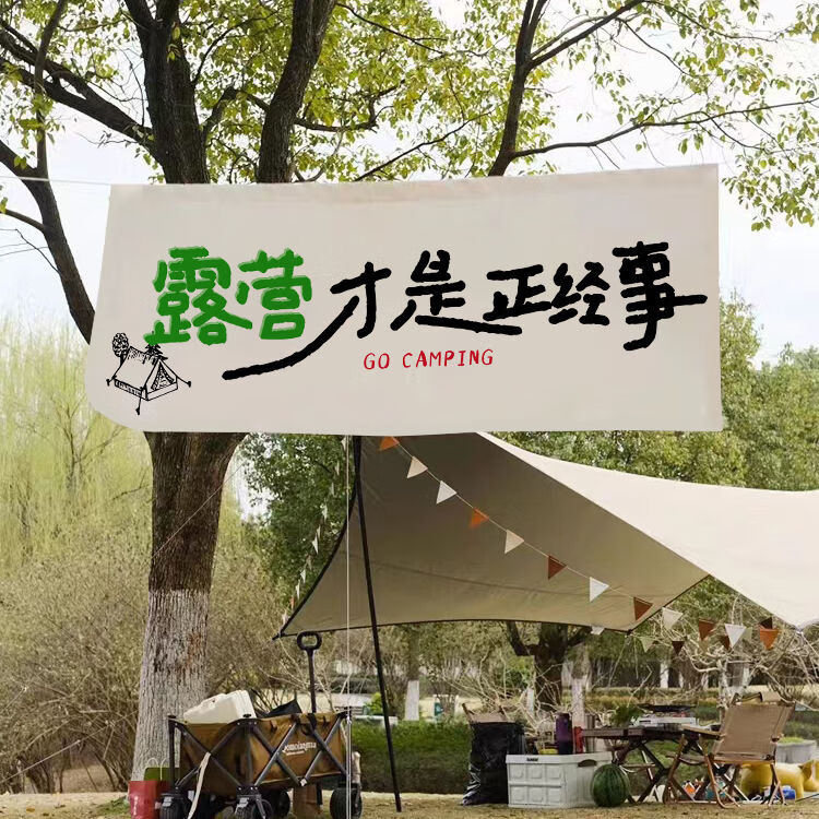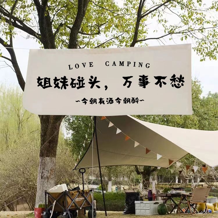 Feather pocket outdoor camping hanging cloth to go to the camping site for picnics and play text tapestry camping camp atmosphere decorative background cloth DZQ13 width 1.5 height 0.6 tool kit