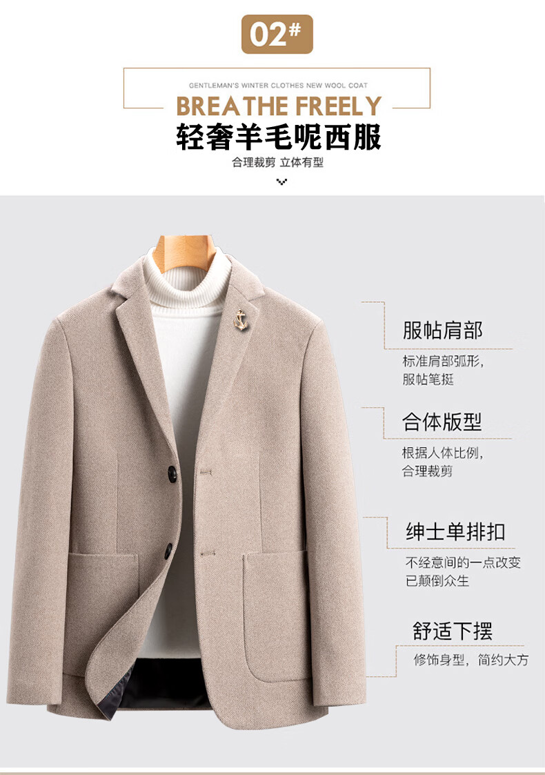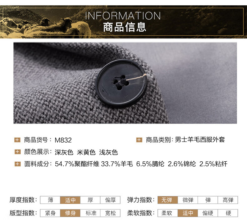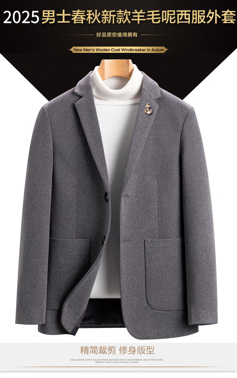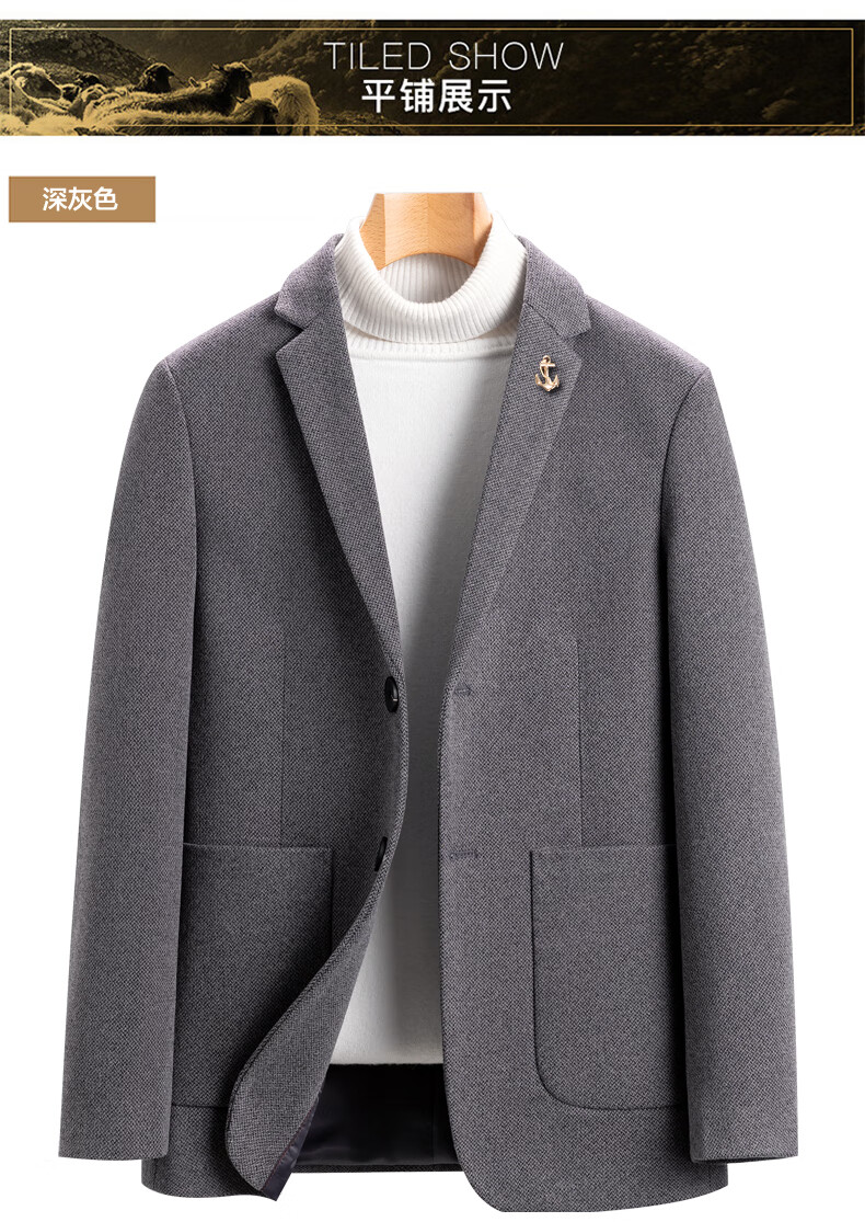 Pierre Cardin autumn and winter wool suit men's woolen coat short herringbone suit jacket business casual high-end single suit 6832 gray L 175 (115-130Jin Jin equals 0.5 kg)