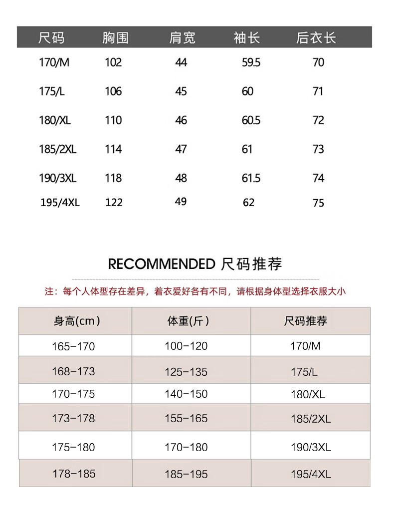 China (cm) 165 / 88-90 170 / 96-98 175 / 108-110 180 / 118-122 185 / 126-130