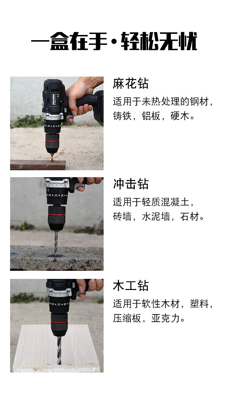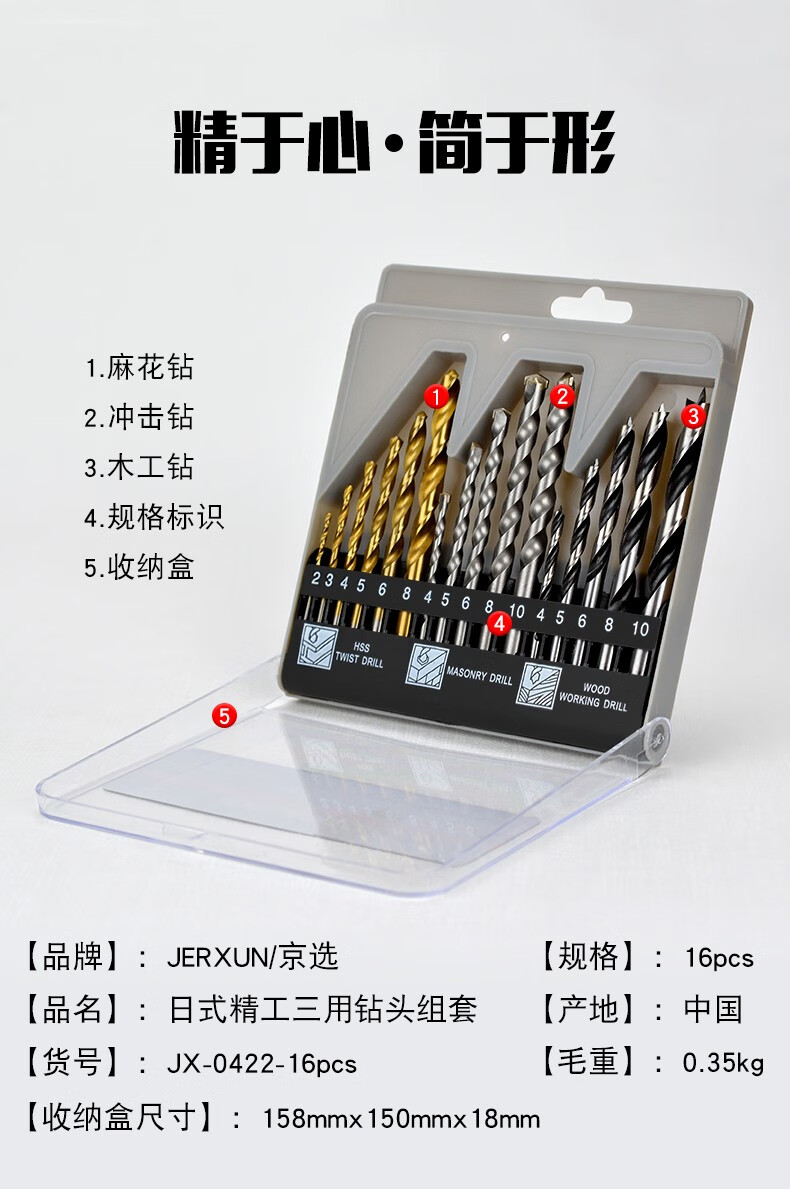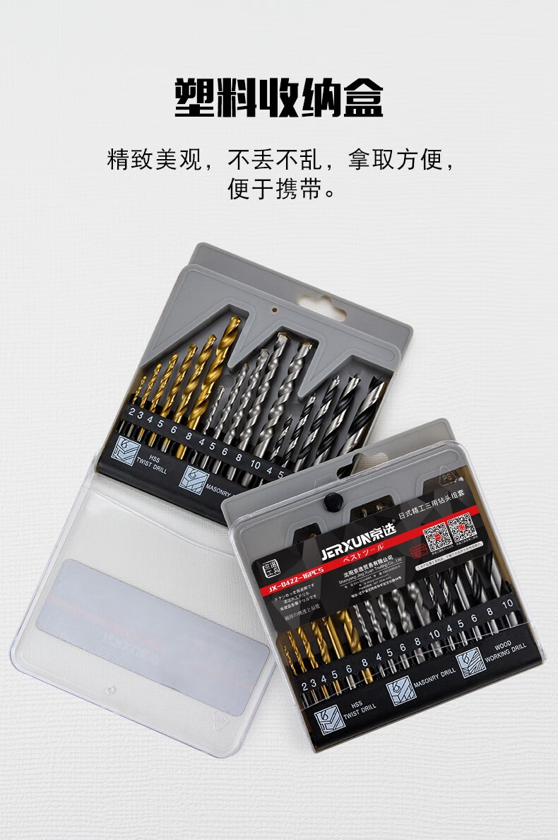 JERXUN impact drill bit twist metal drill bit concrete drilling through wall drilling tungsten steel alloy steel woodworking drill bit set three-purpose drill bit 16-piece set