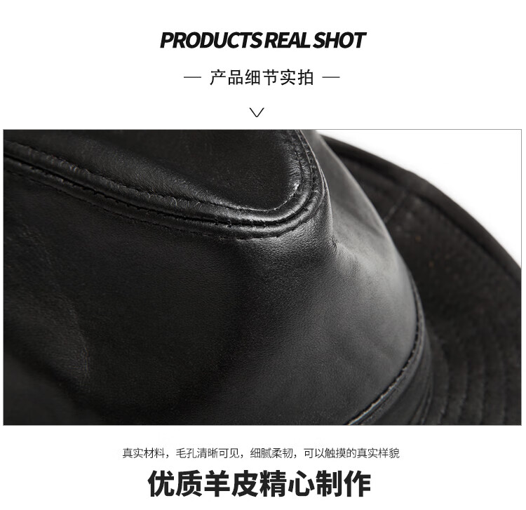 Trendy and charming spring and autumn PU leather hat for men, sheepskin and cowhide jazz hat, British wide-brimmed gentleman hat, winter middle-aged and elderly trendy hat, black-cowhide 56-58