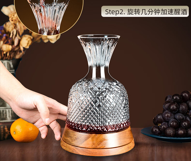 MARTIGUES crystal glass red wine decanter, high-end light luxury rotating wine dispenser, European household vortex decanter, wine dispenser, crystal vortex rotating decanter 1.1L