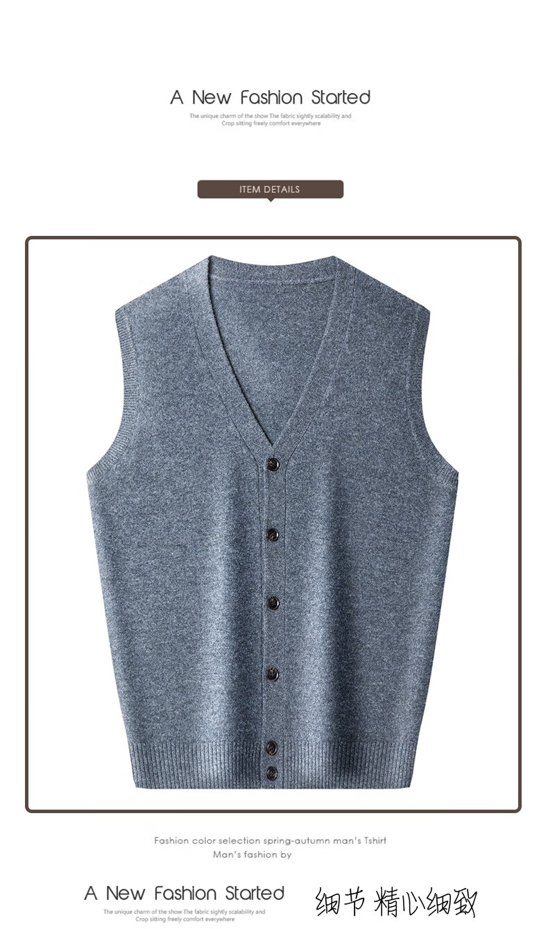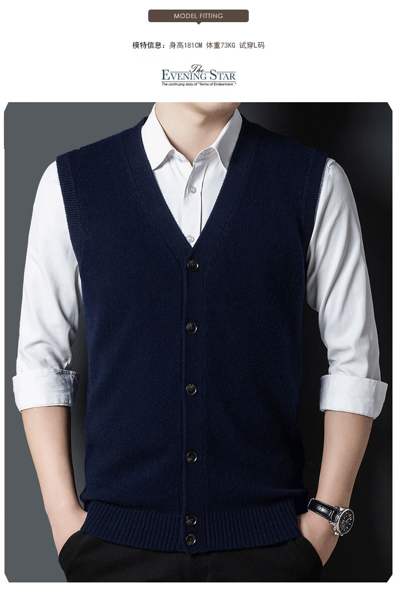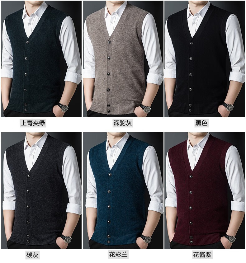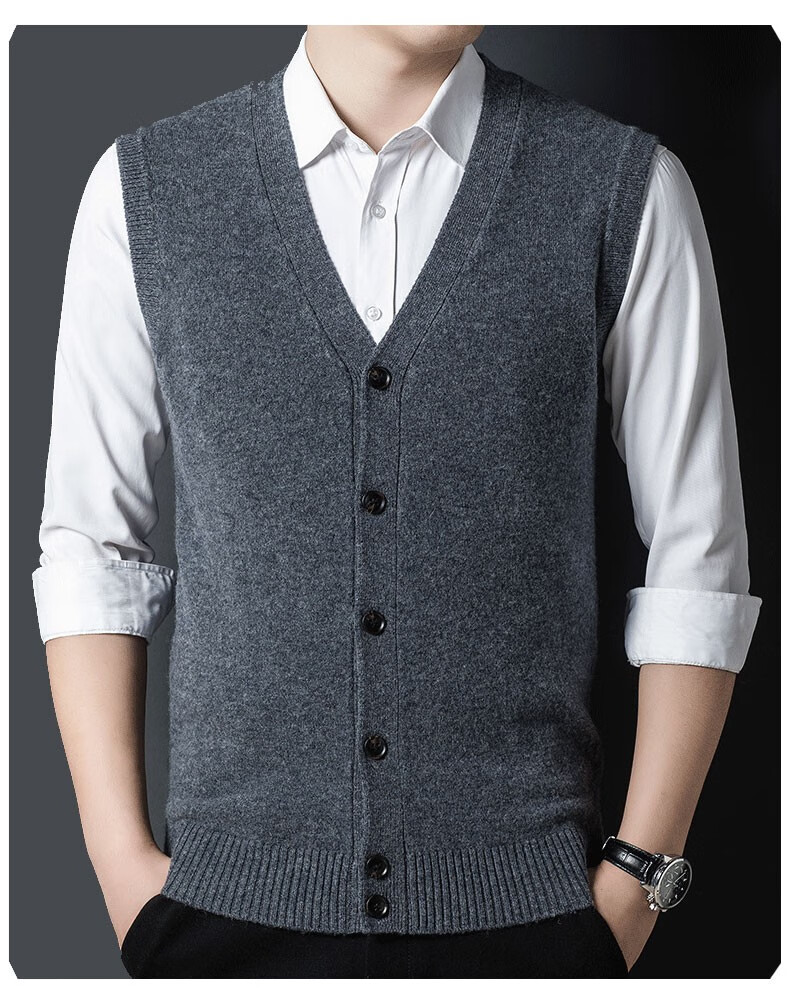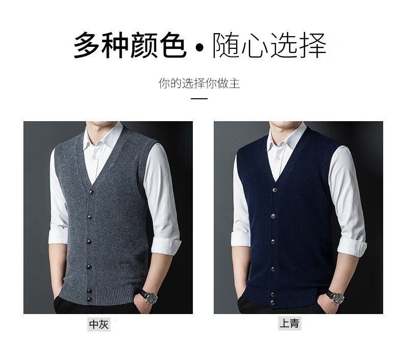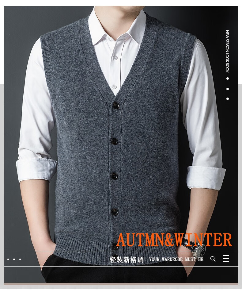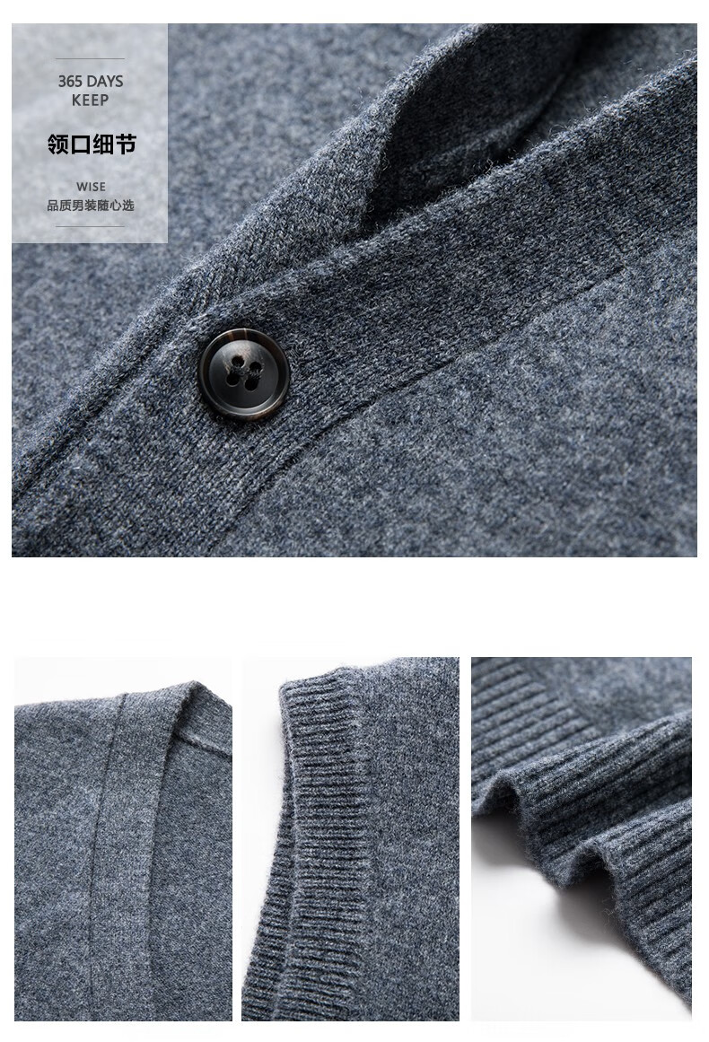 Hengyuanxiang Autumn and Winter Men's 100% Pure Wool Vest Winter V-neck Wool Sweater Sleeveless Knitted Sweater Cardigan DNDS-55607 Minghua Gray XL (175)