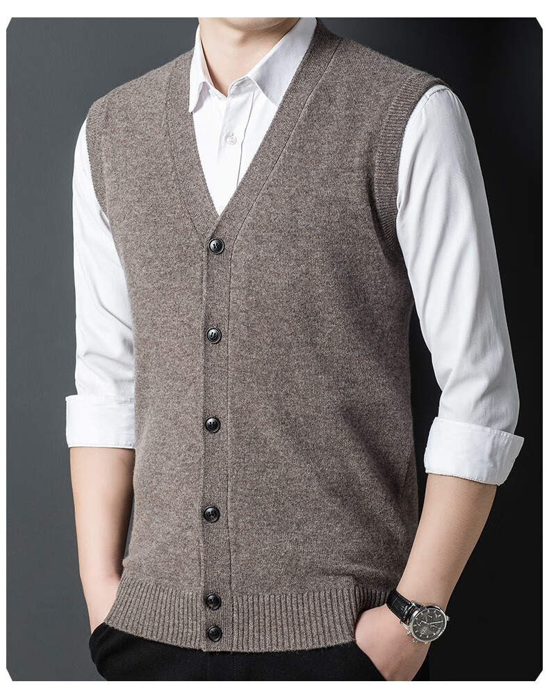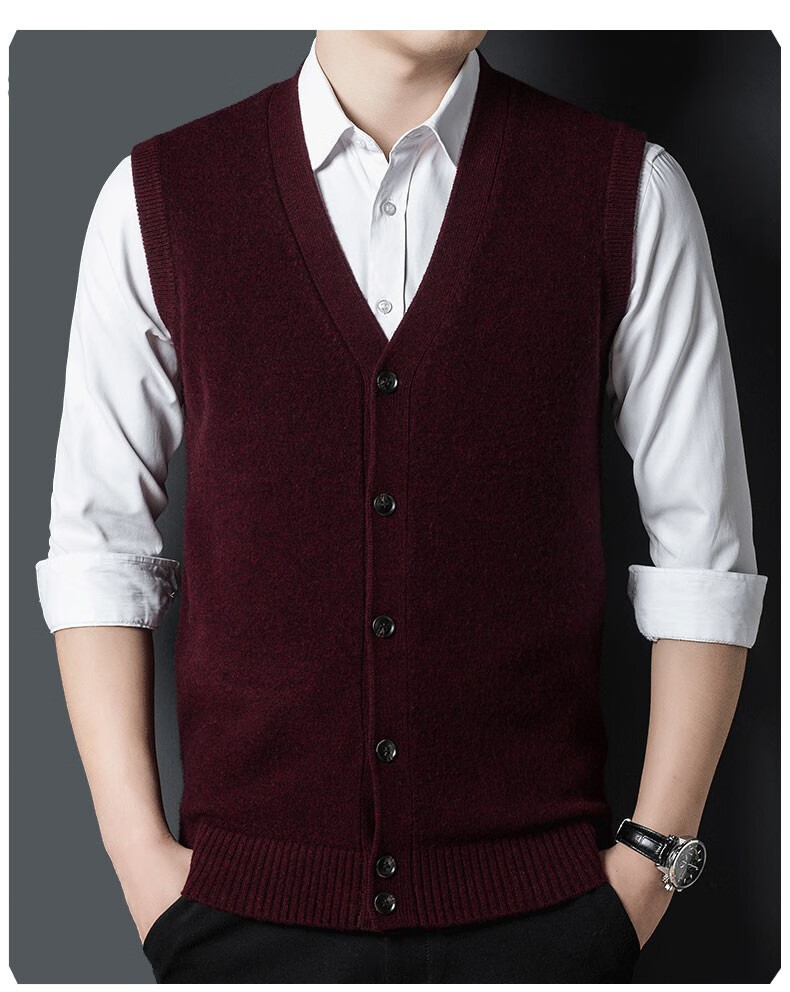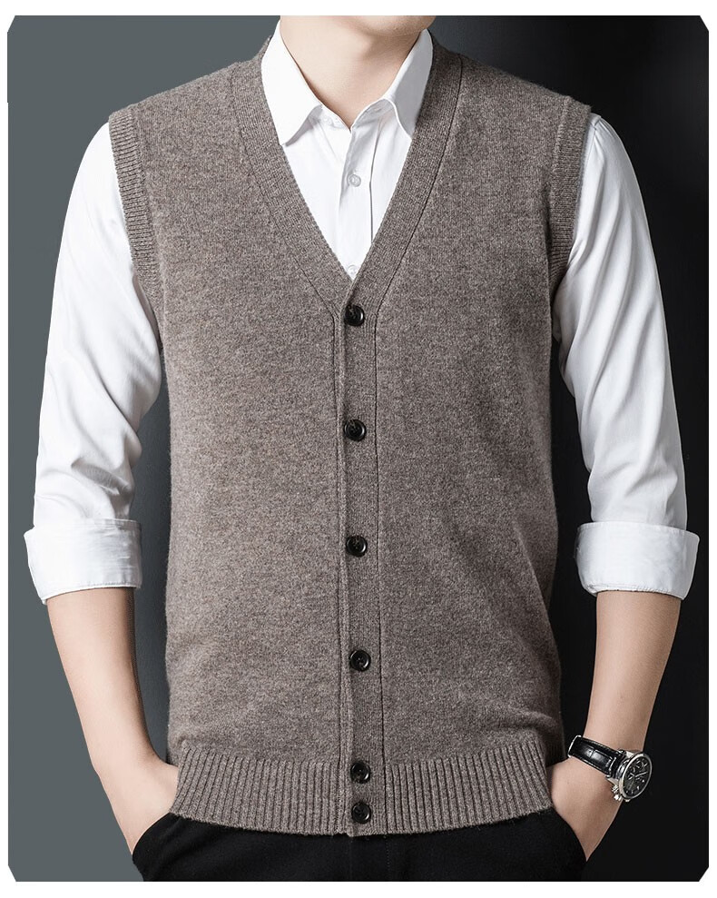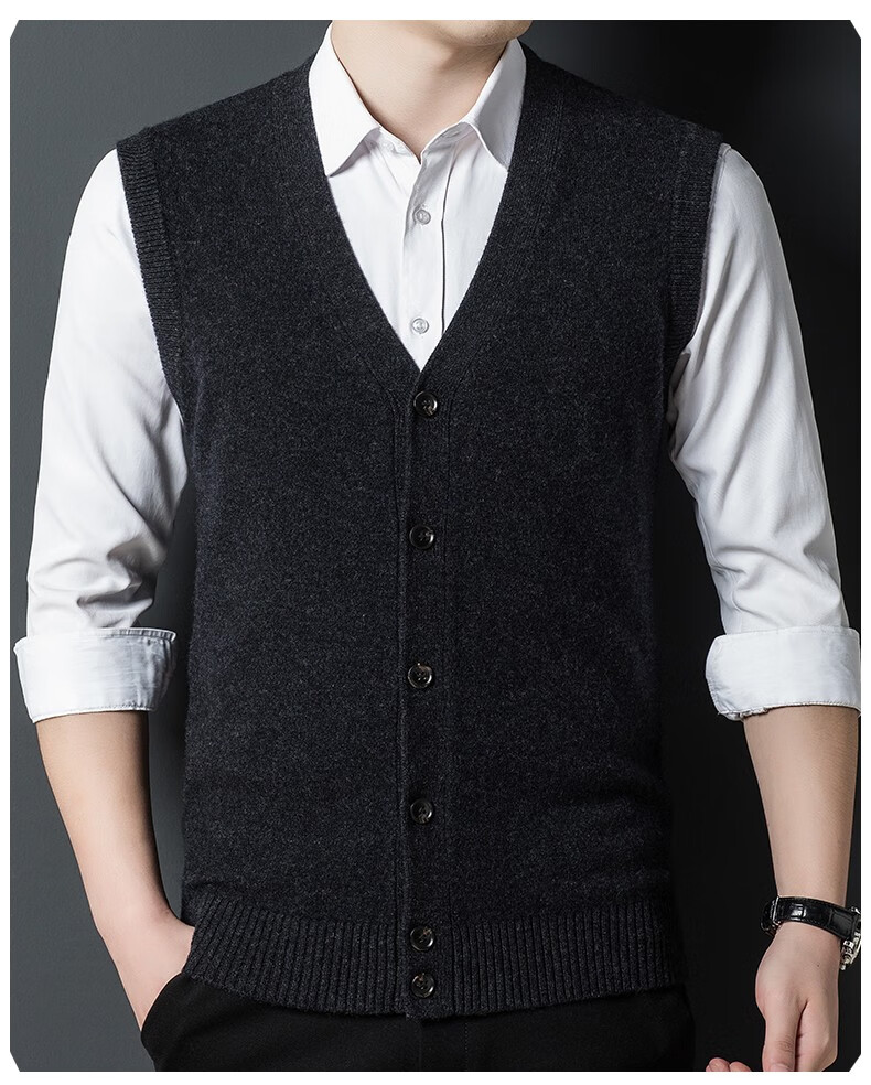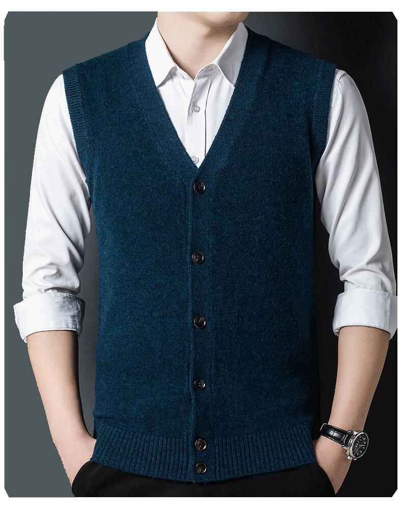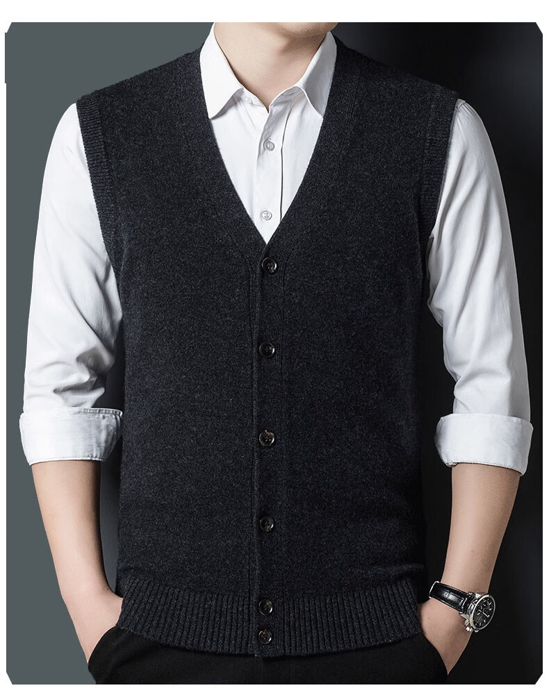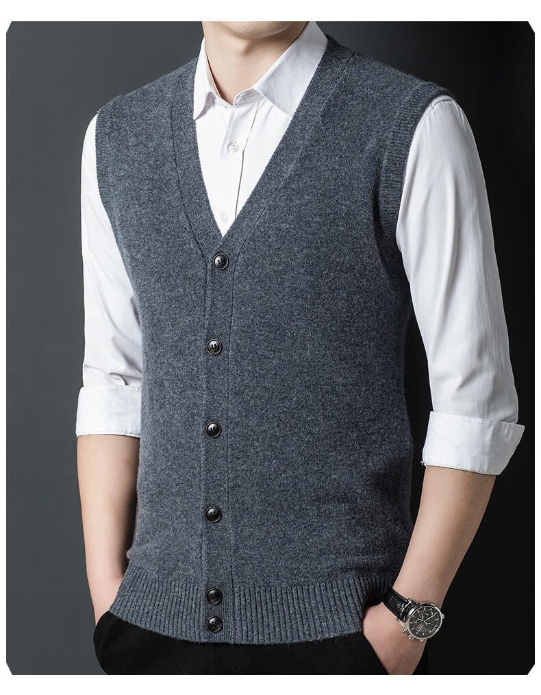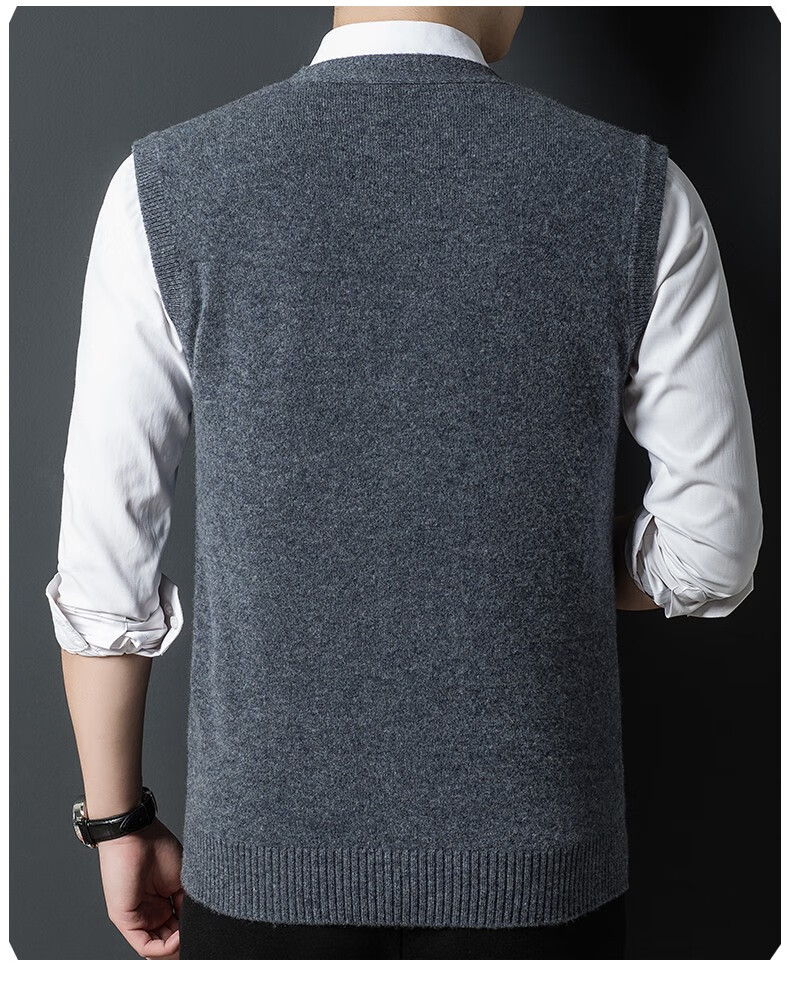 Hengyuanxiang Autumn and Winter Men's 100% Pure Wool Vest Winter V-neck Wool Sweater Sleeveless Knitted Sweater Cardigan DNDS-55607 Minghua Gray XL (175)