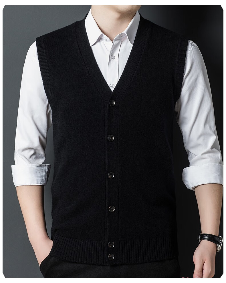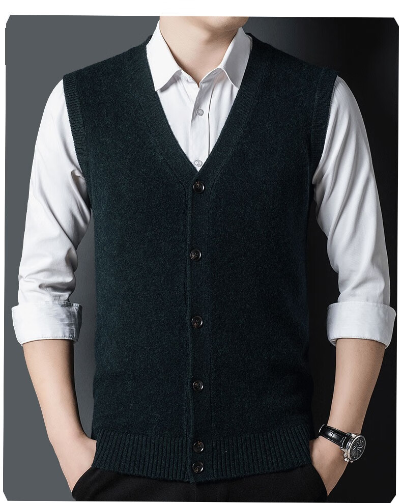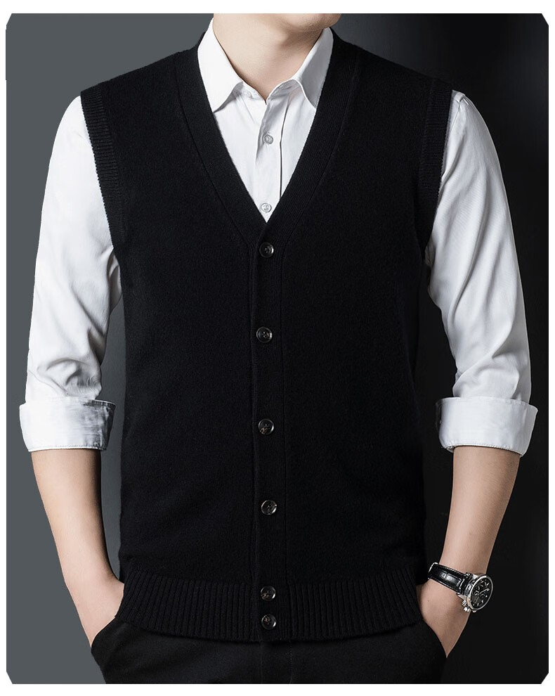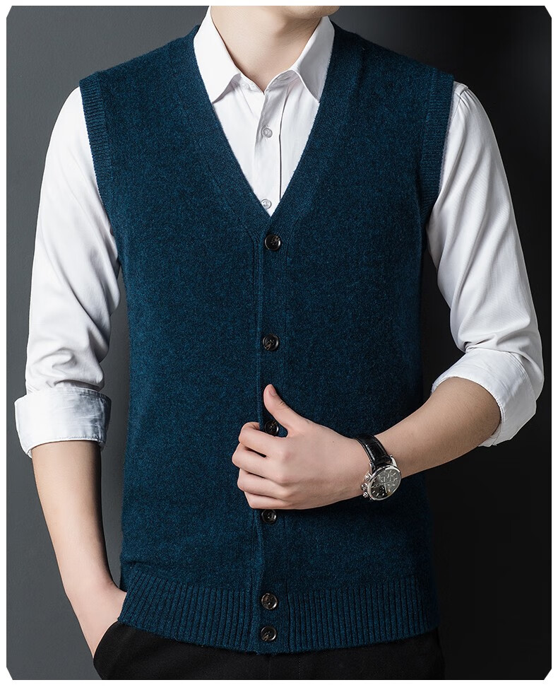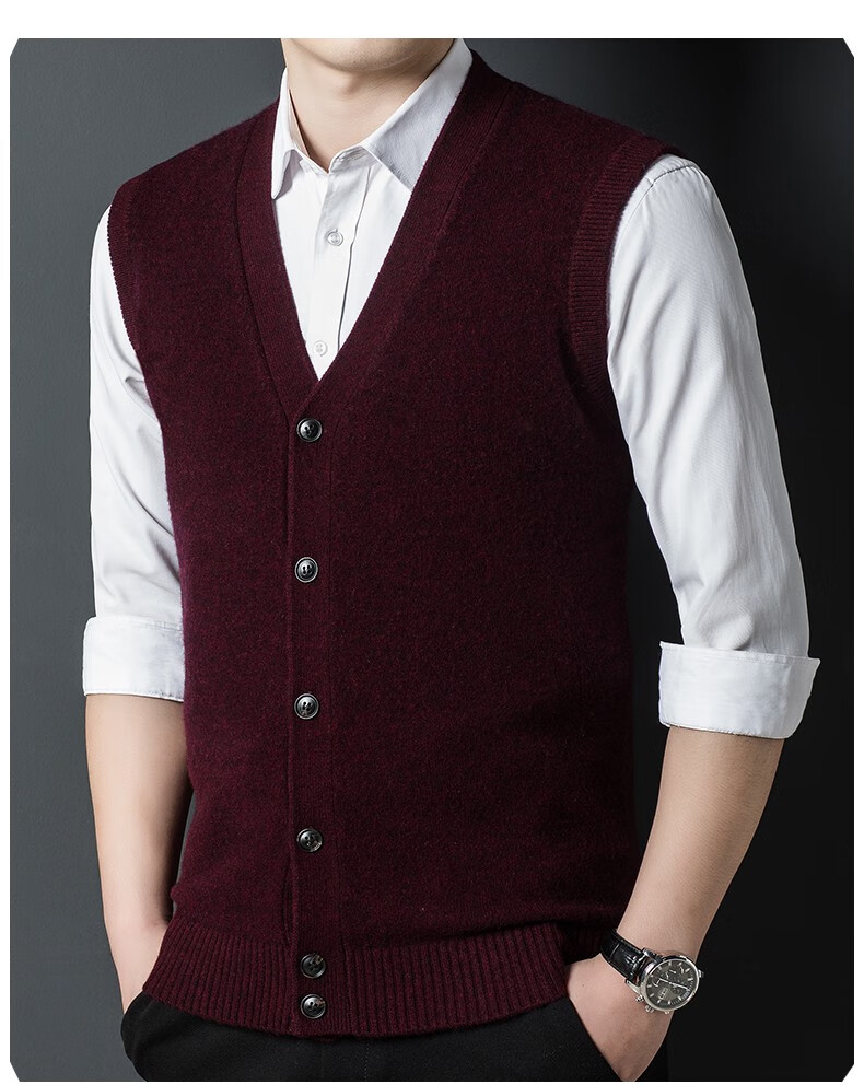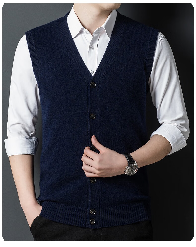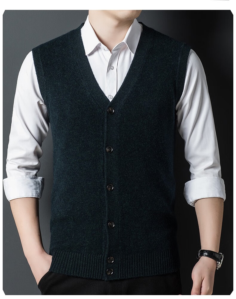 Hengyuanxiang Autumn and Winter Men's 100% Pure Wool Vest Winter V-neck Wool Sweater Sleeveless Knitted Sweater Cardigan DNDS-55607 Minghua Gray XL (175)
