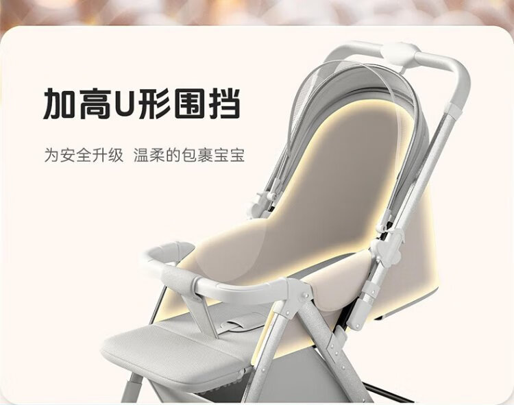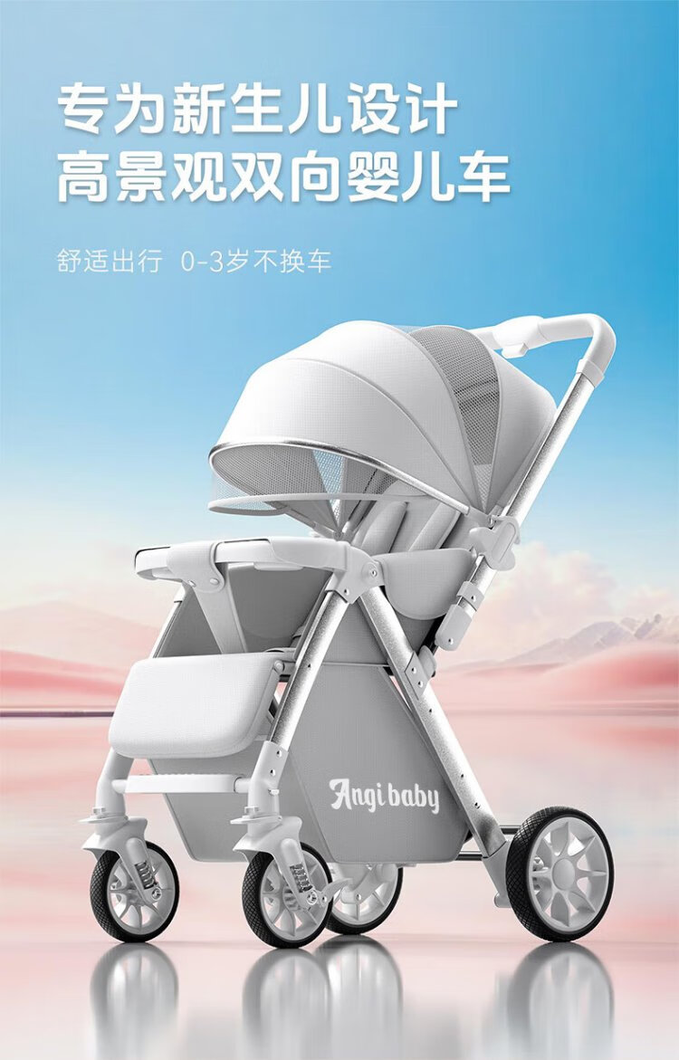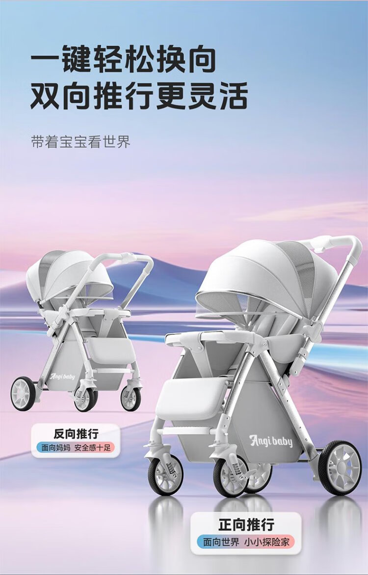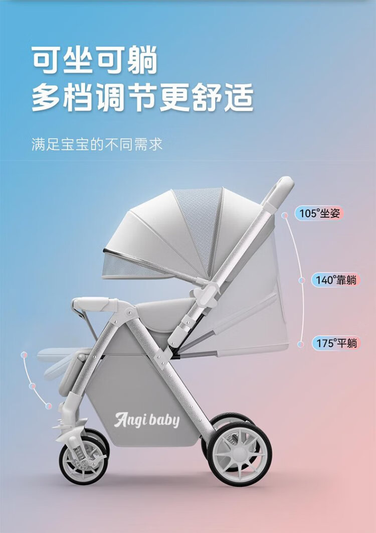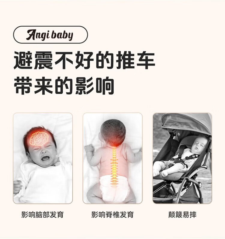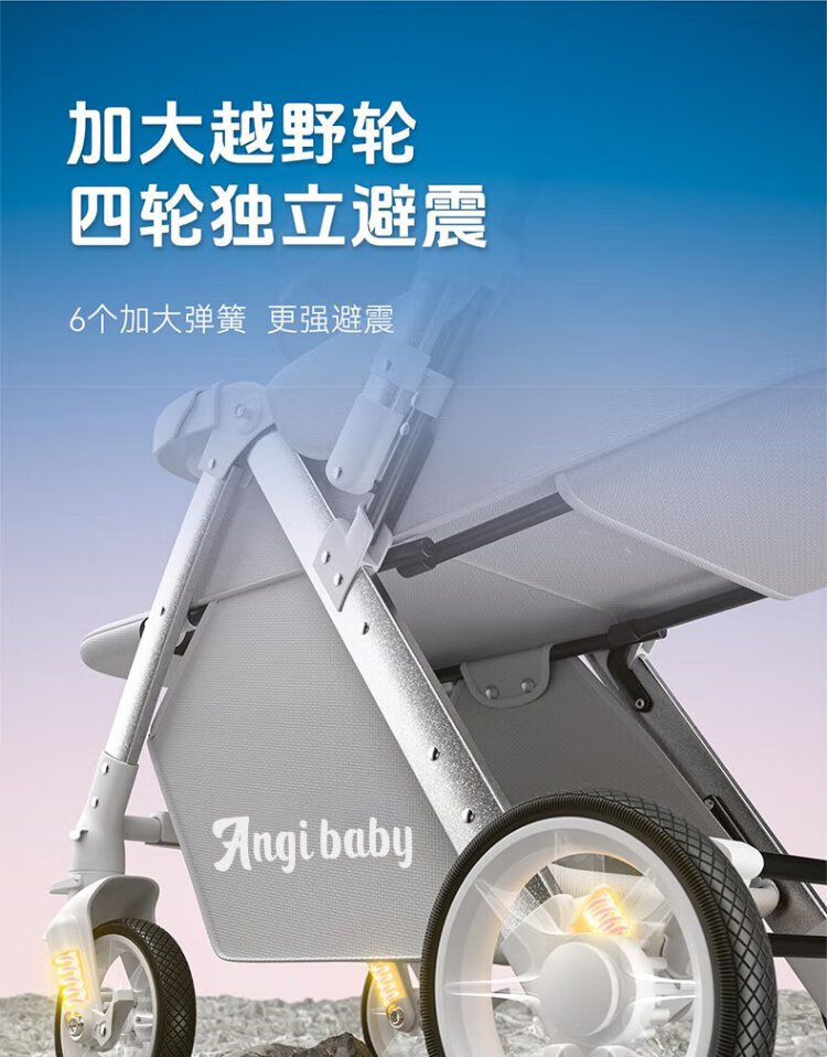 ANGI BABY stroller, high view, can sit and lie down, lightweight foldable, two-way push stroller, baby stroller, khaki color, can sit and lie down + four-wheel shock absorber, stroller can sit and lie down, one-button closing, four-wheel shock absorber