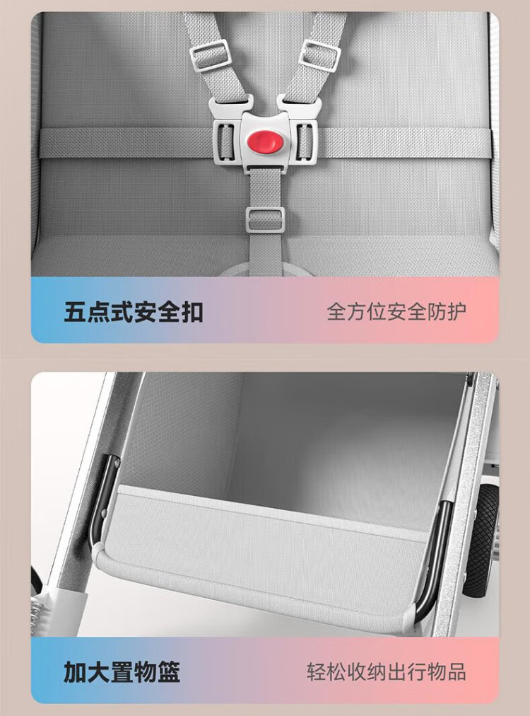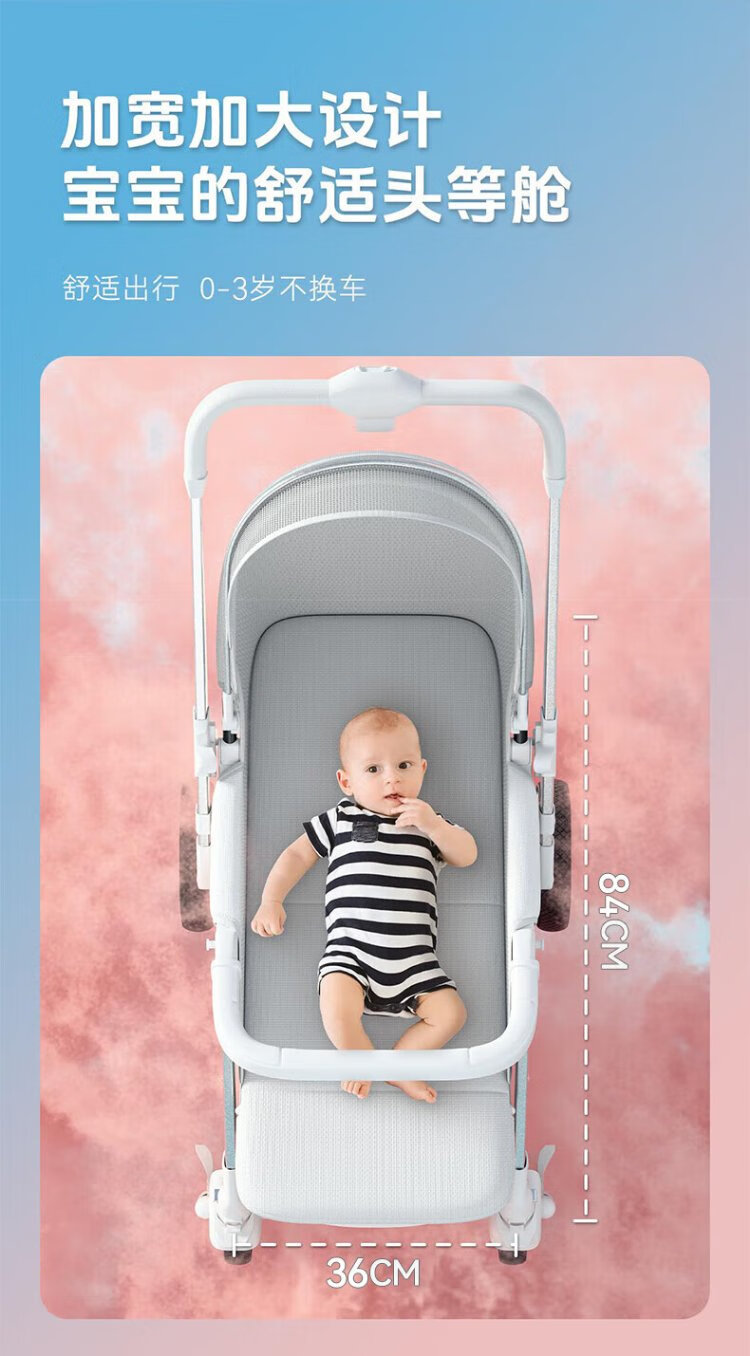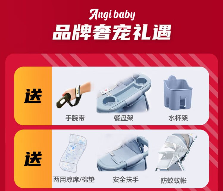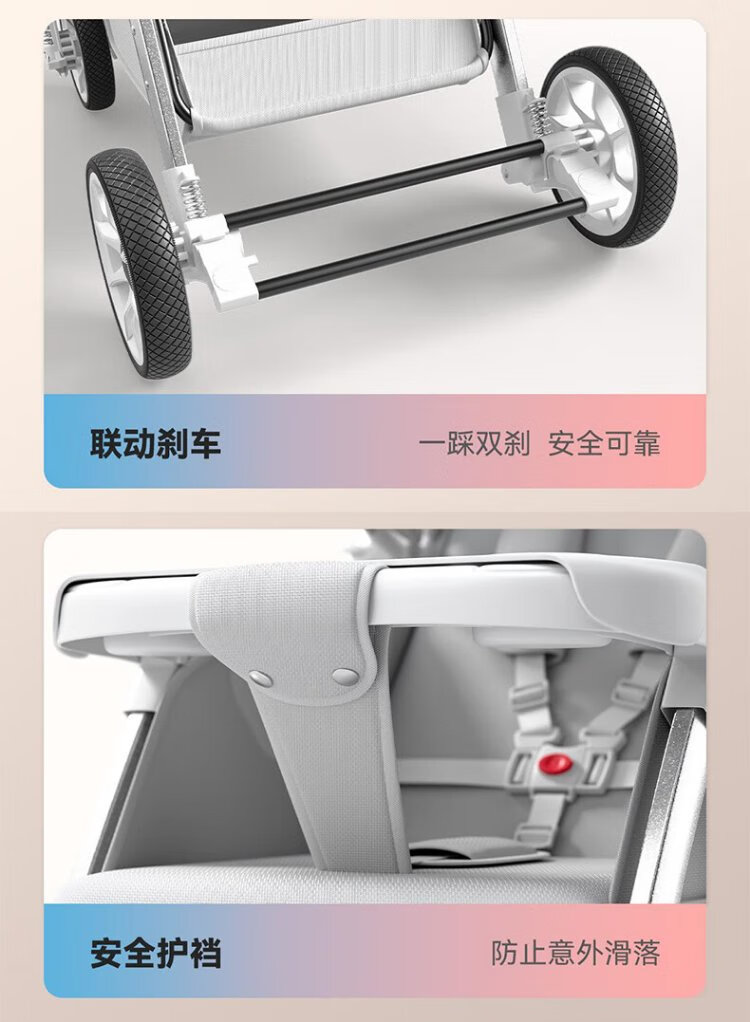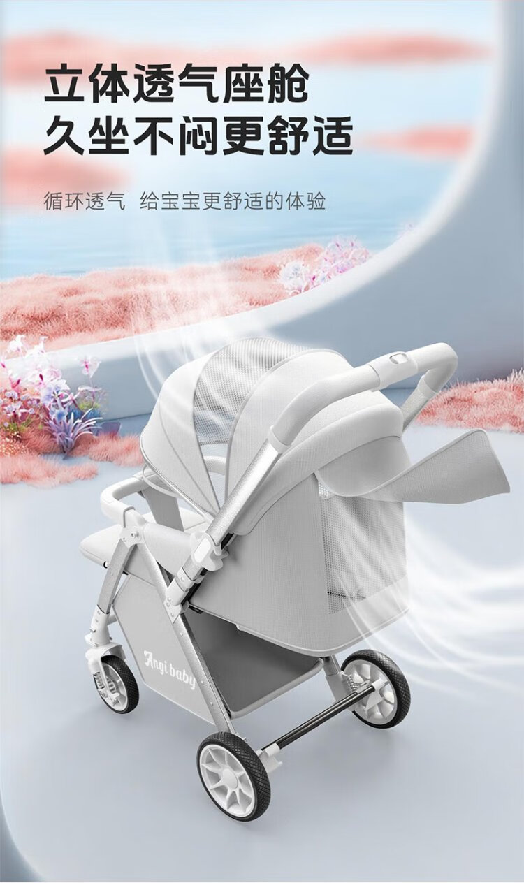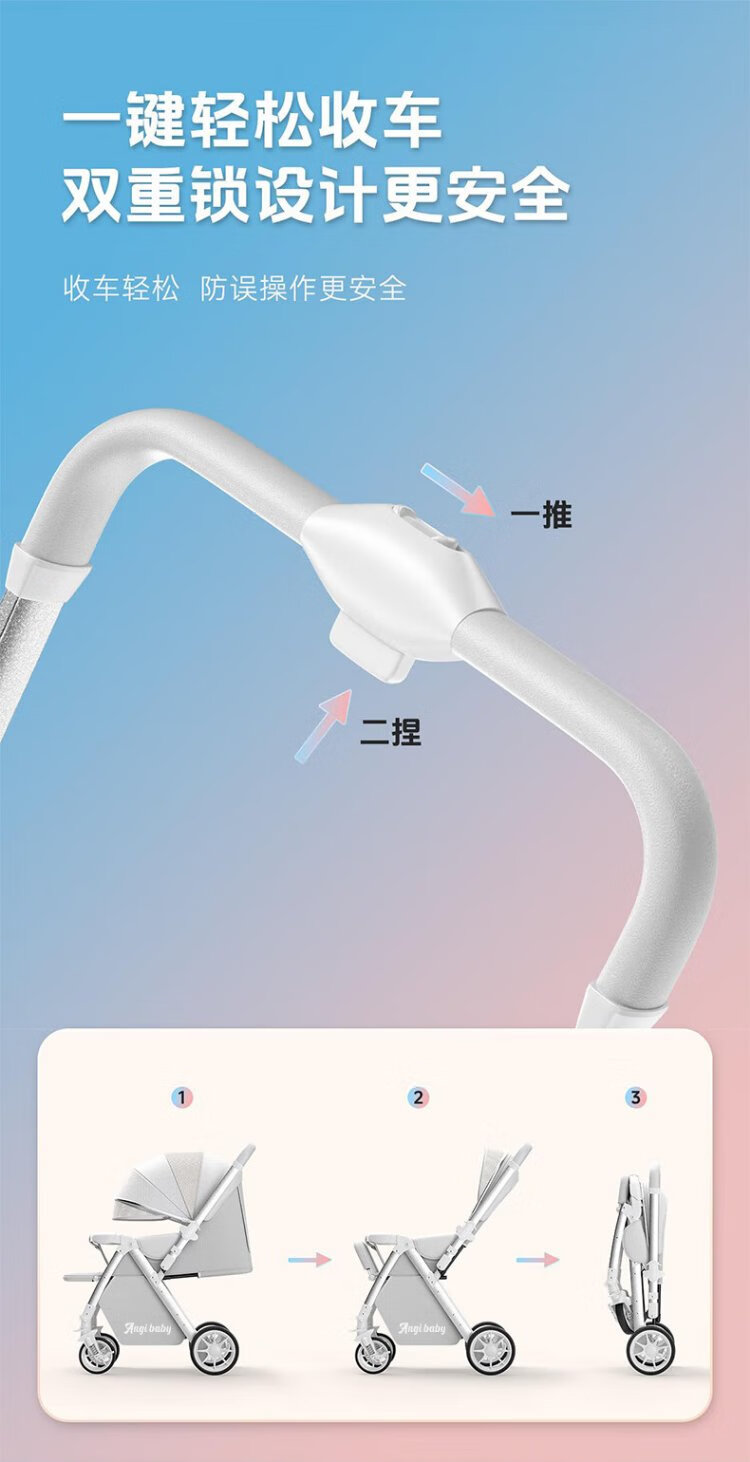 ANGI BABY stroller, high view, can sit and lie down, lightweight foldable, two-way push stroller, baby stroller, khaki color, can sit and lie down + four-wheel shock absorber, stroller can sit and lie down, one-button closing, four-wheel shock absorber