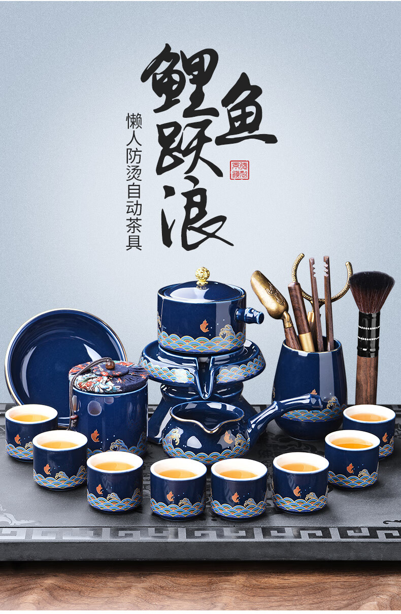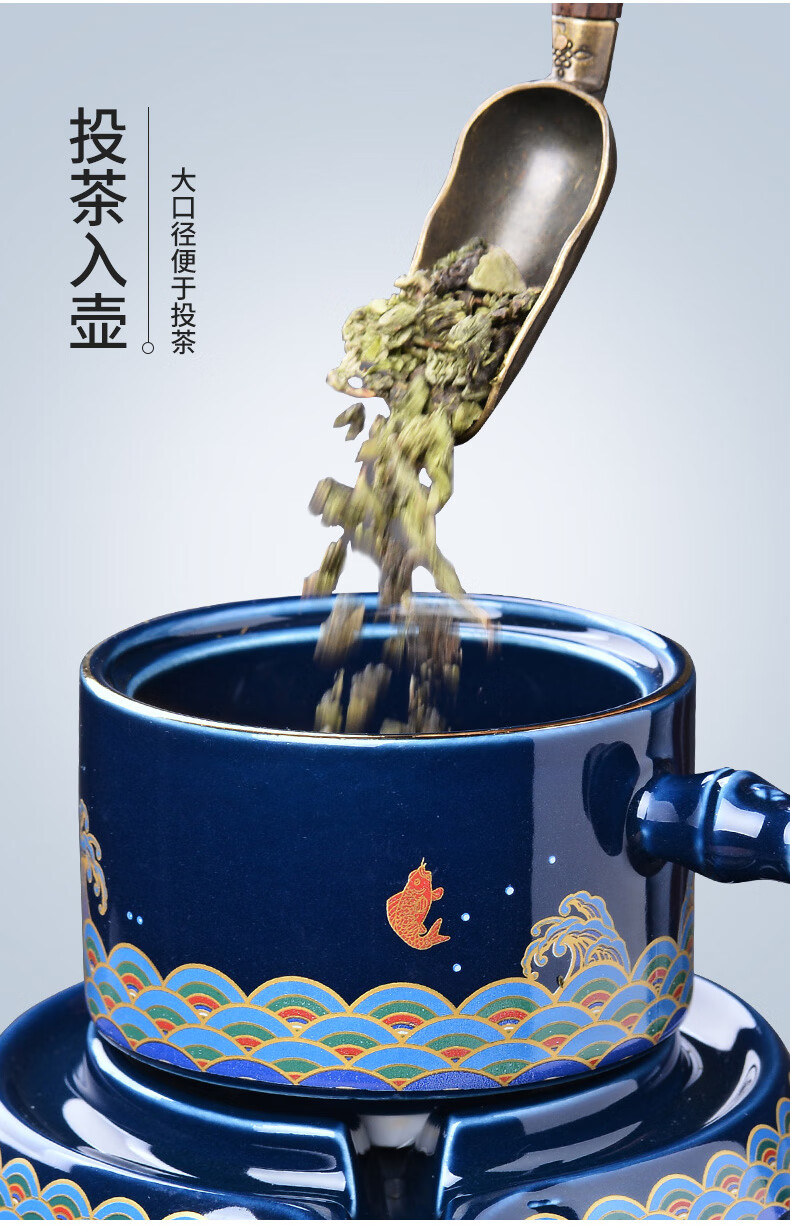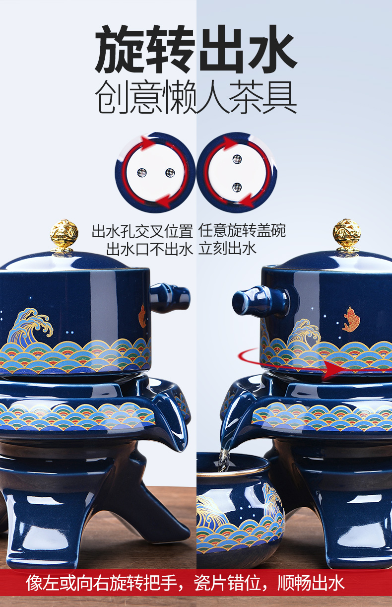 Shangyanfang Lazy Stone Mill Tea Set Single Household Tea Maker Rotating Water Automatic Kung Fu Teapot Tea Cup Tea Set Three-piece Set 4 Ru Kiln Automatic Tea Set 3 Heads