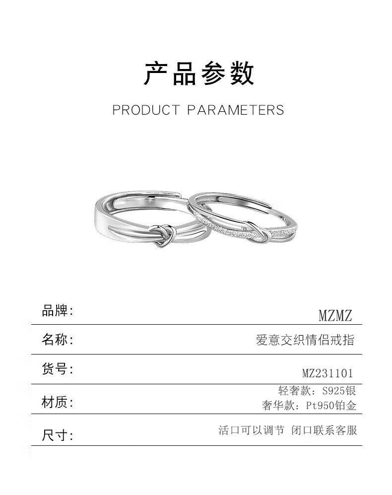 MZMZ platinum ring love intertwined pt950 platinum couple ring men's and women's ring engagement wedding birthday anniversary gift light luxury couple ring