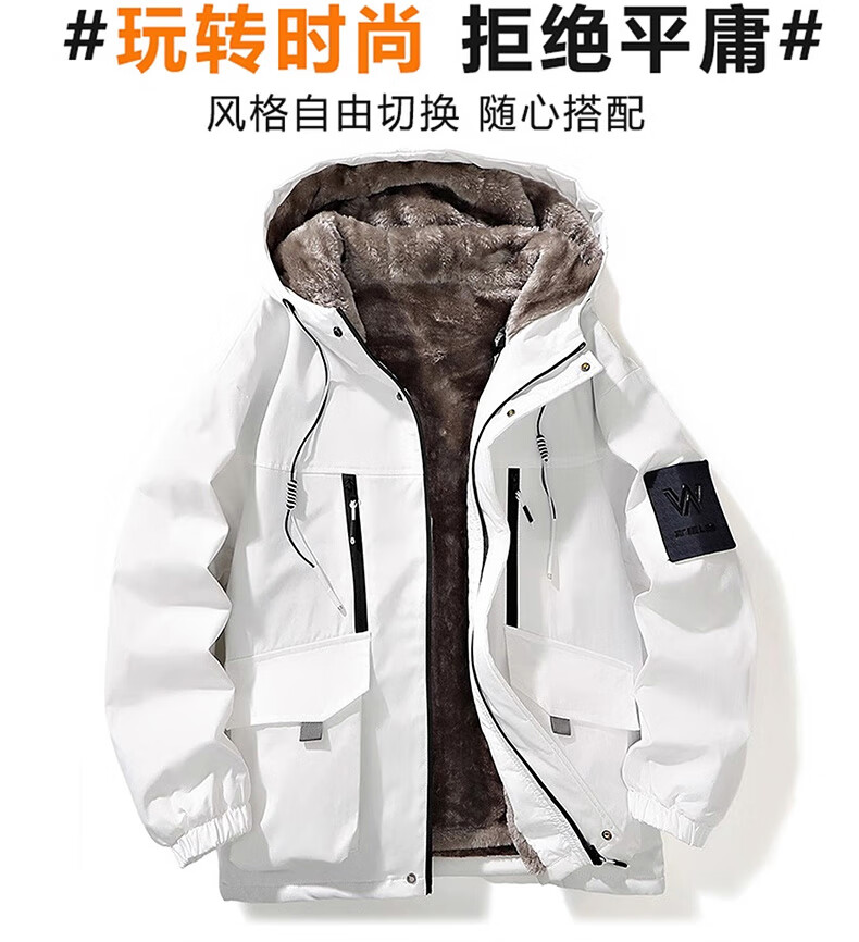 Woodpecker velvet thickened cotton jacket for men in autumn and winter 2025 new men's cotton jacket casual cold-proof feather bread down jacket 09 white plus velvet (warm and not bulky) XL (recommended 140-160 Jin Jin equals 0.5 kg)