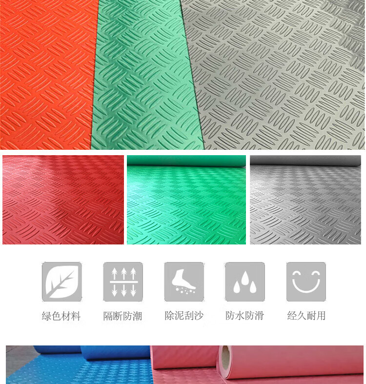 Junliu beef tendon floor mat pvc waterproof anti-slip mat thickened door mat rubber plastic corridor kitchen stair workshop warehouse red herringbone 0.6 meters width 2 meters length