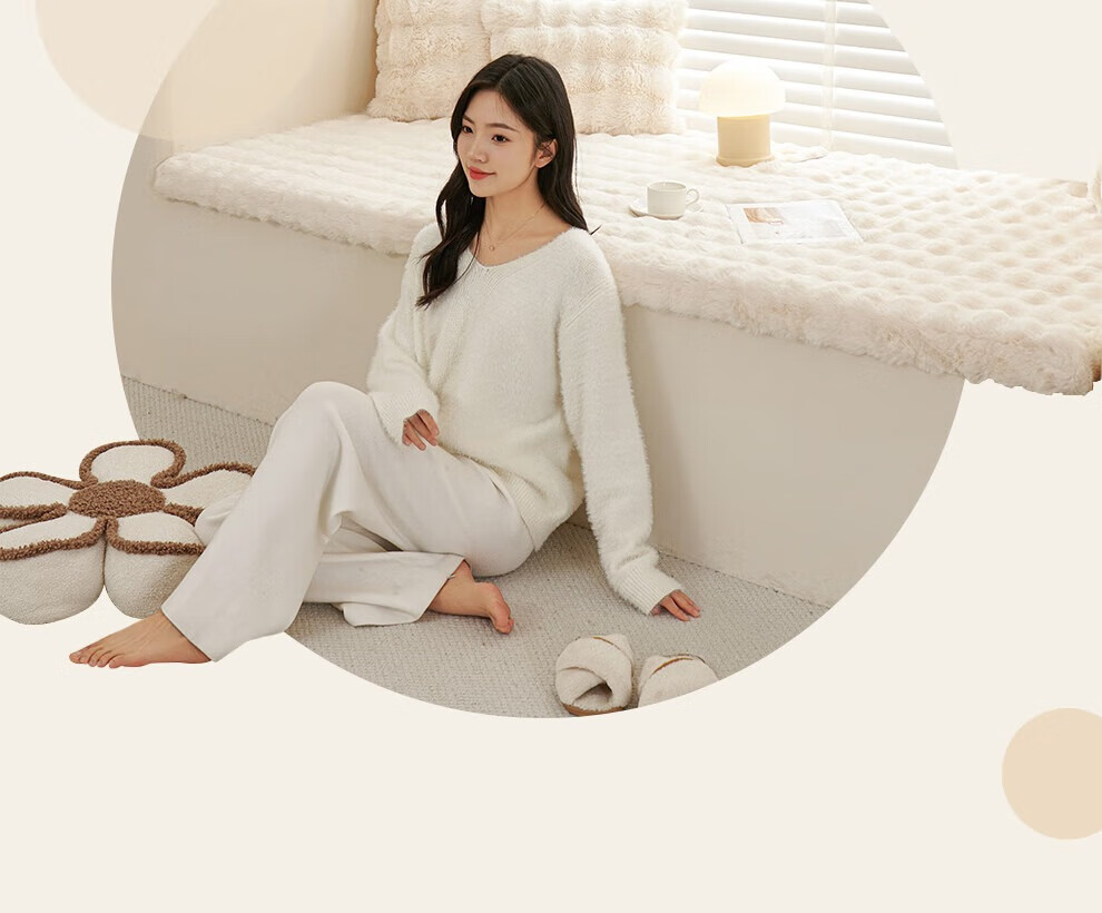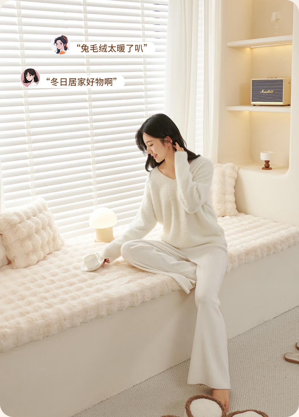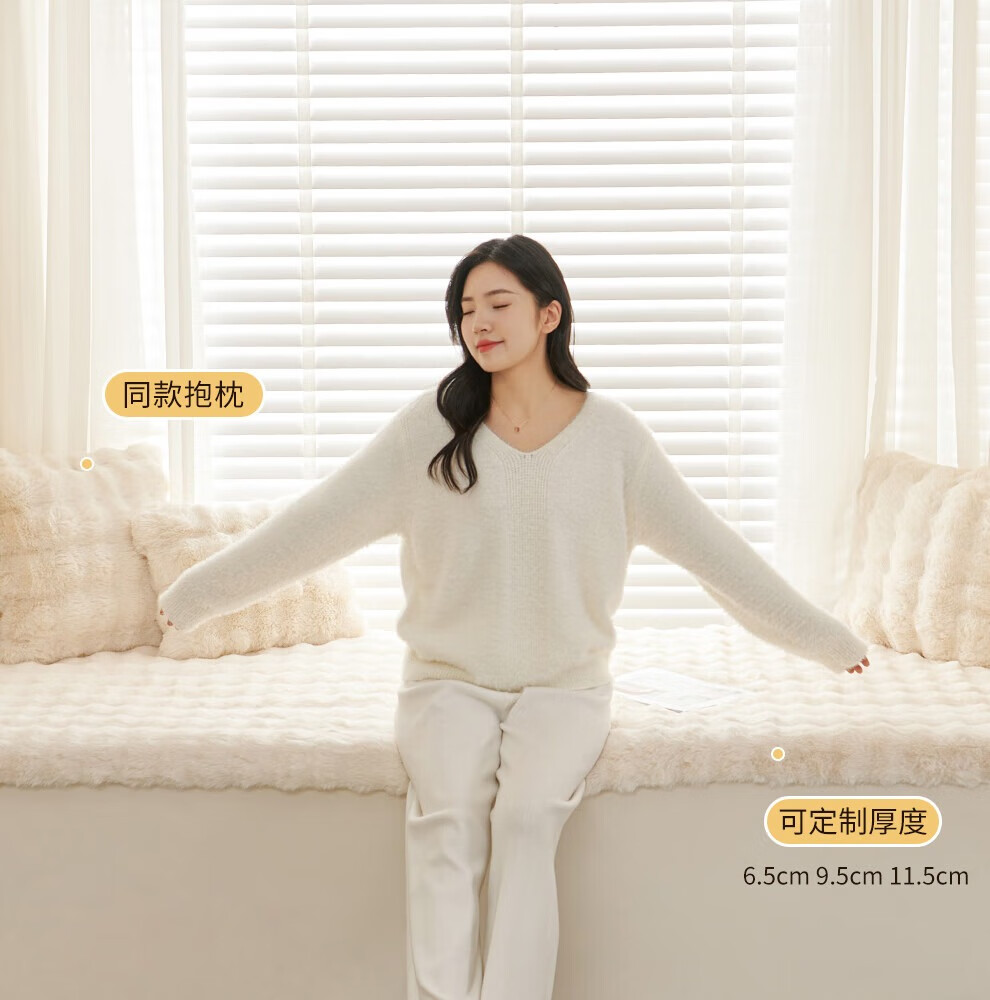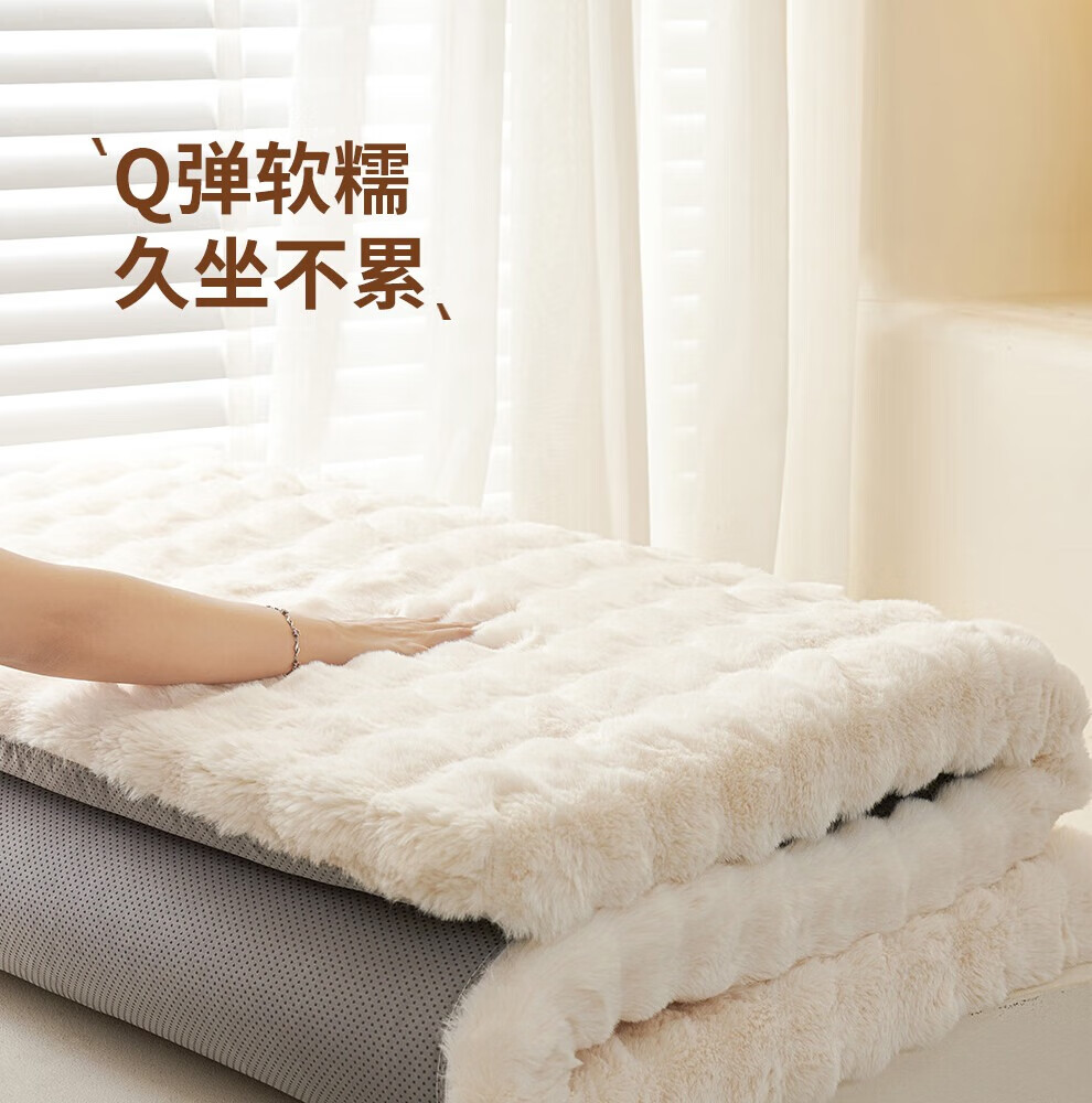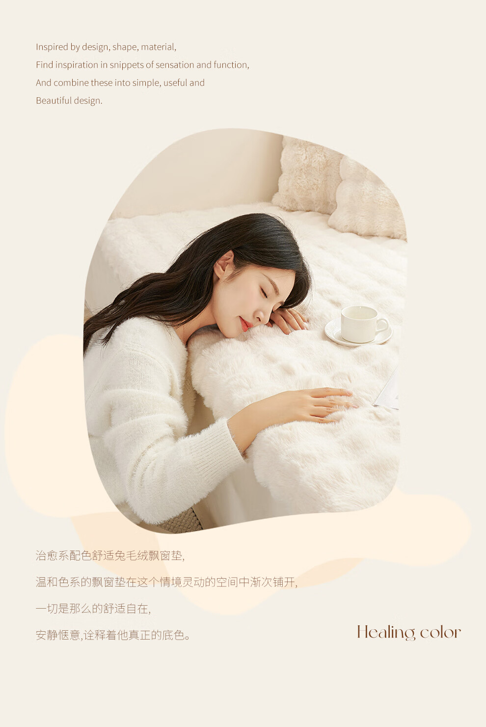 JIANSHANGRIJI rabbit plush thickened bay window cushion window sill cushion 2024 new winter balcony cushion cushion sofa master bedroom removable and washable milky white high elastic sponge massage rabbit velvet sponge thick 8cm fabric thick 1.5cm removable and washable