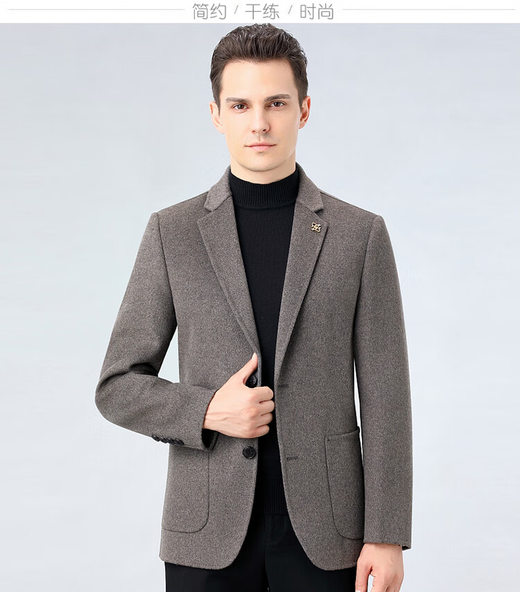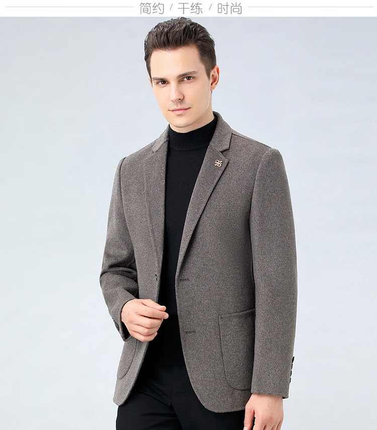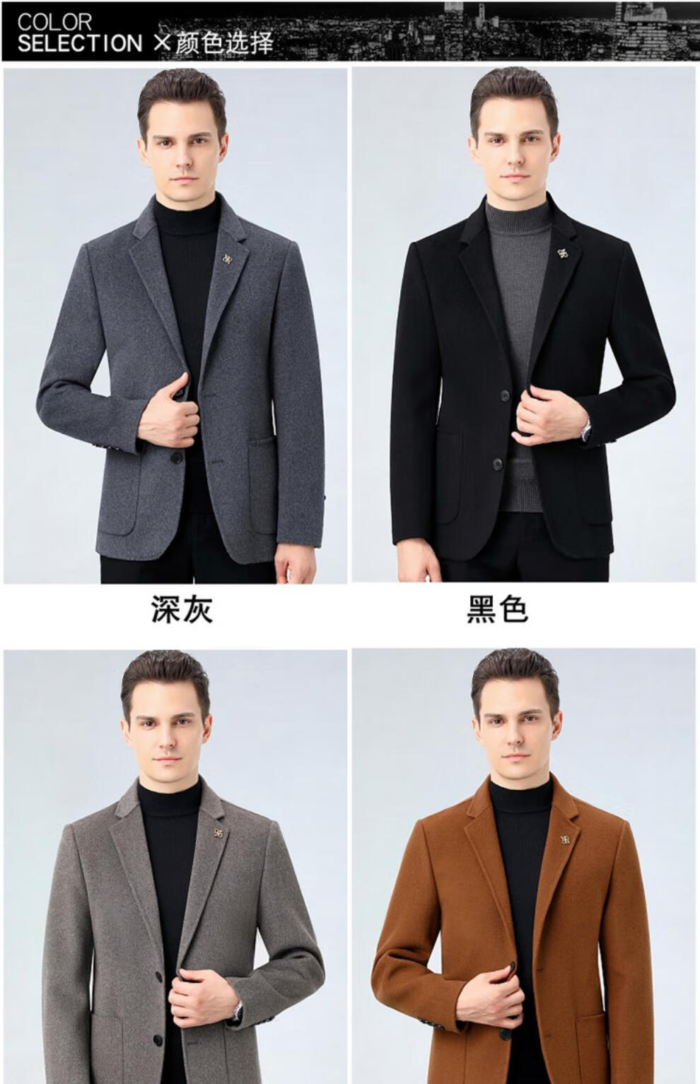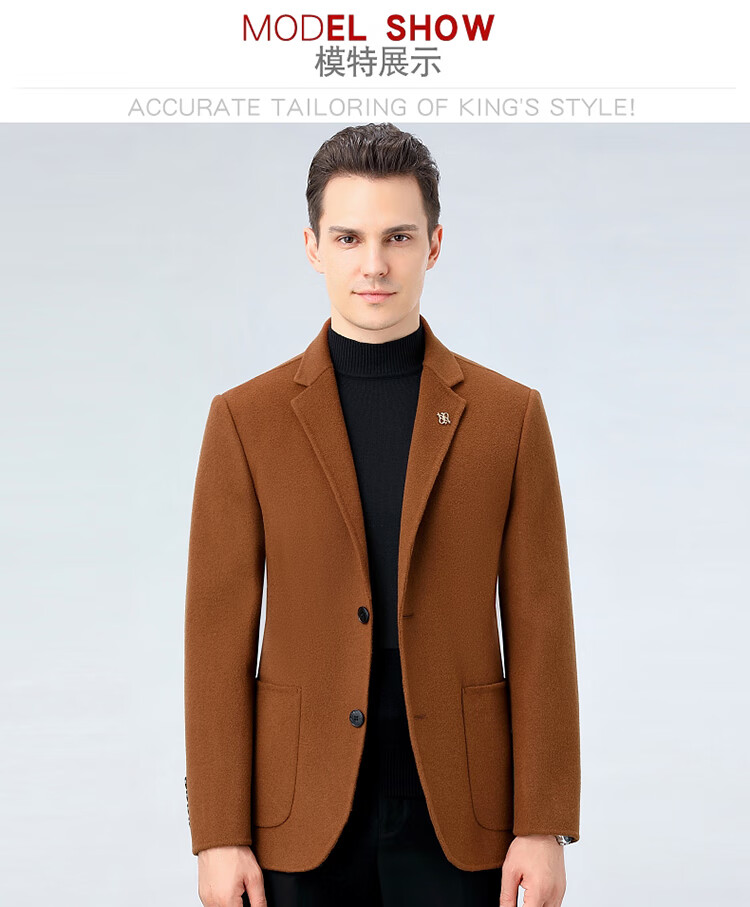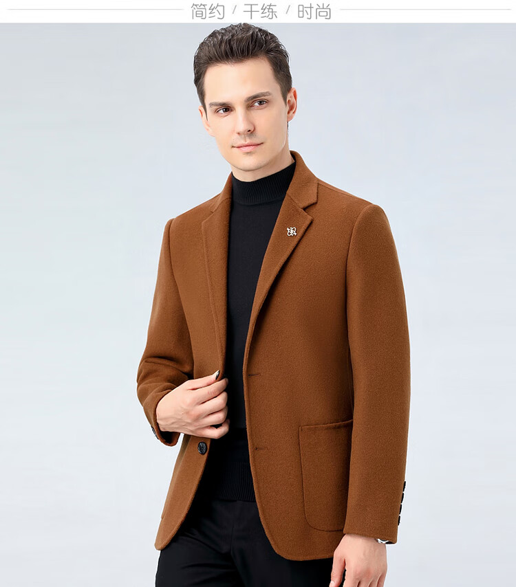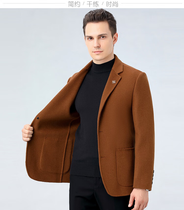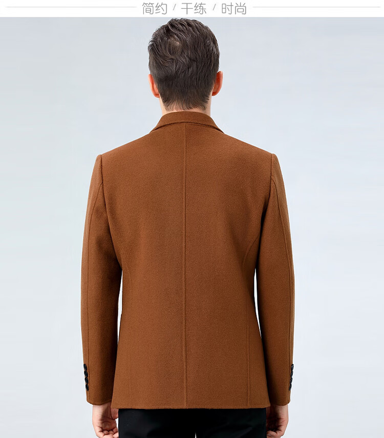 ROMON high-end men's woolen jacket spring and autumn wool double-sided woolen men's suit middle-aged business casual cashmere jacket new product camel 170/M (recommended 100-124Jin Jin equals 0.5 kg)